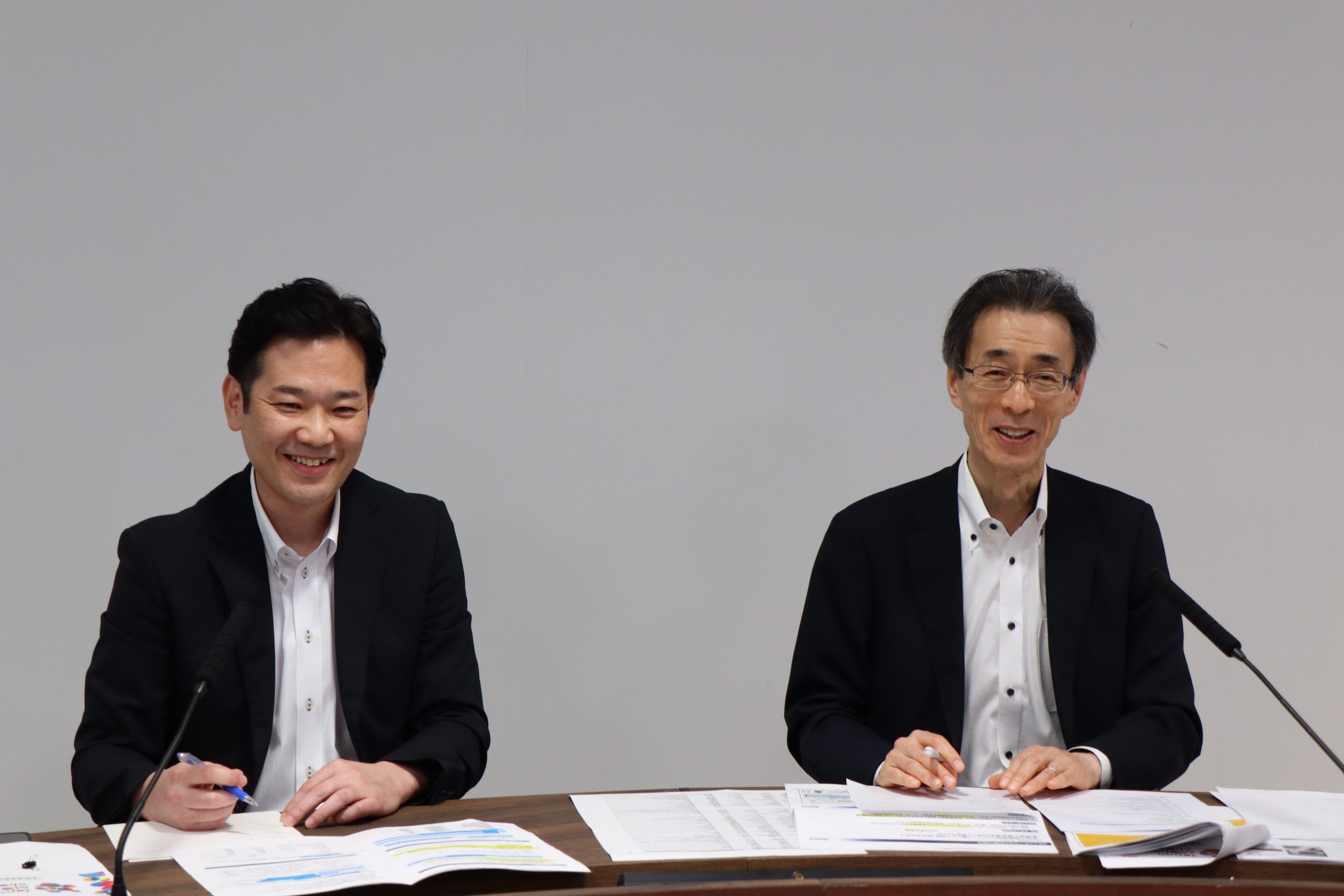 - モビリティショー委員長 貝原 典也(本田技研工業 代表執行役副社長)と自工会次世代モビリティ領域長 田中正実(左)