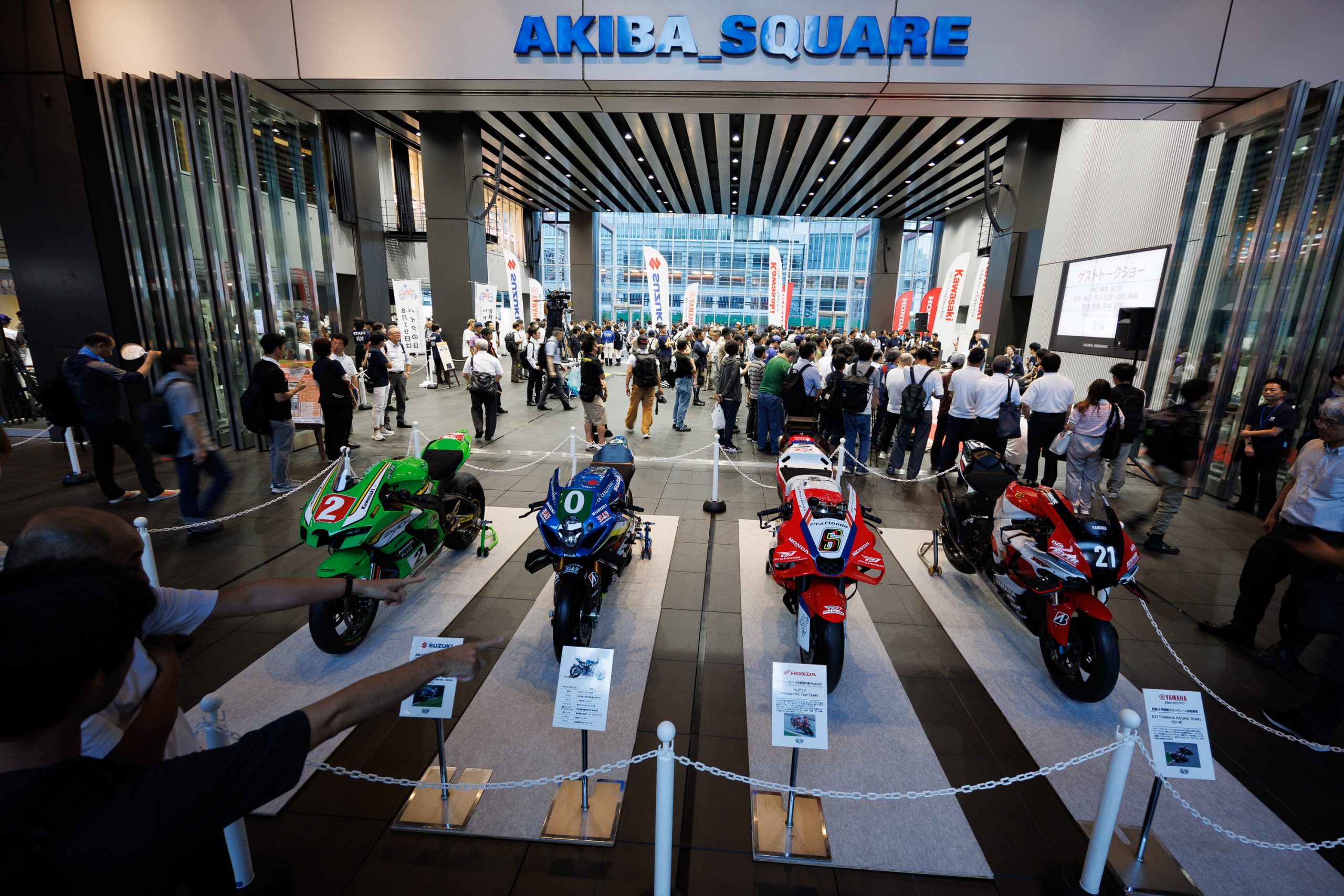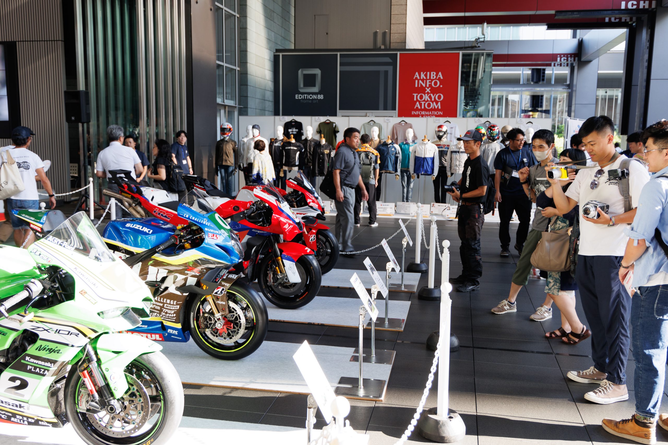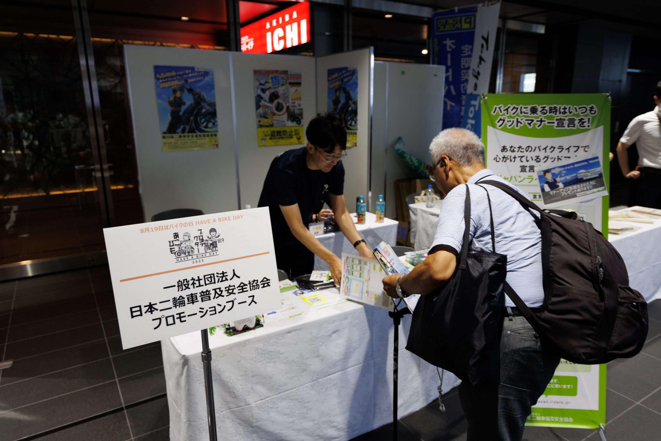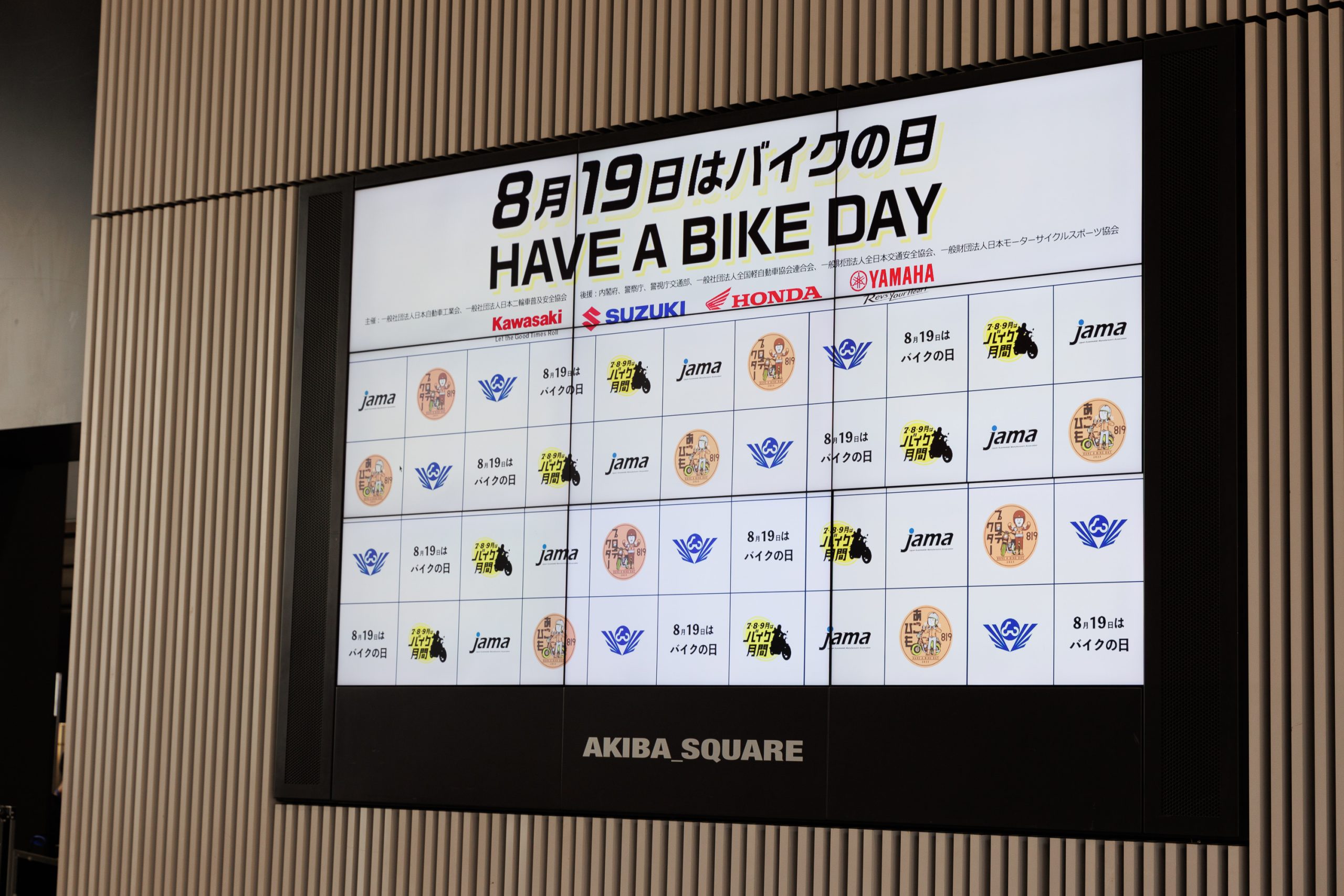 自工会と日本二輪車普及安全協会(日本二普協)は8月19日、「バイクの日」にちなんで東京・秋葉原駅前の「UDX AKIBA SQUARE」(東京都千代田区)で二輪車普及・安全啓発イベント「8月19日はバイクの日 HAVE A BIKE DAY」を開催しました。今年も若者が多く行きかう繁華街での特設会場にはカワサキ、スズキ、ホンダ、ヤマハの最新モデルをはじめ、レースマシン、電動バイク、警視庁による「白バイ」を展示。またバイクツーリズムを通じて地域活性化を図る「バイク応援自治体」(埼玉県小鹿野町、静岡県浜松市、愛知県豊根村)を紹介するブースや、ヘルメット、プロテクターの展示、また国内4メーカーが展開する商品をはじめとするアパレルも展示されました。
