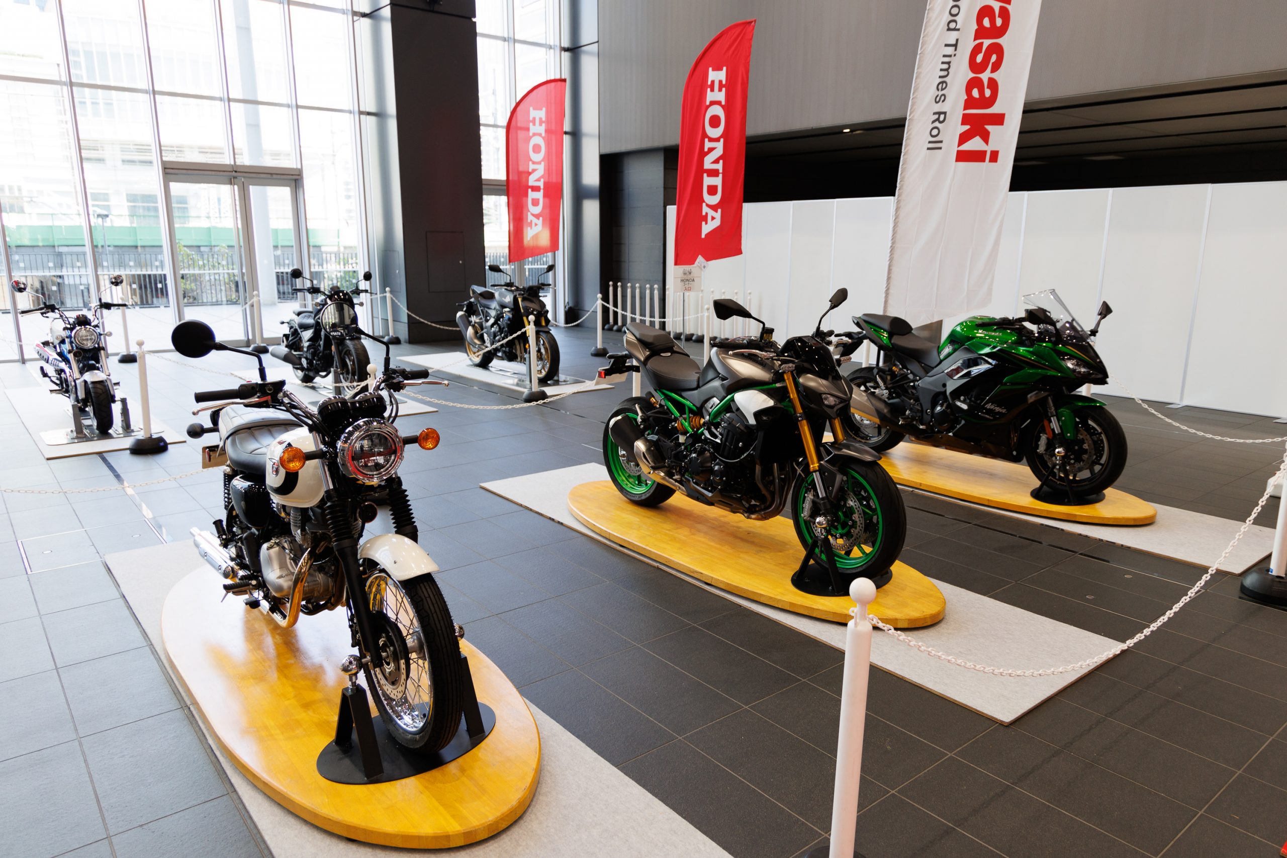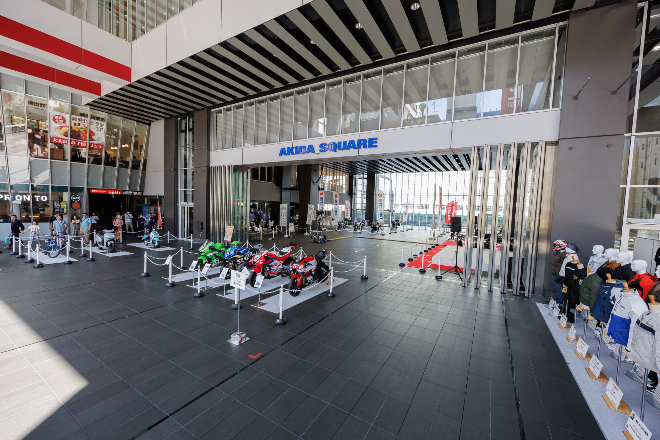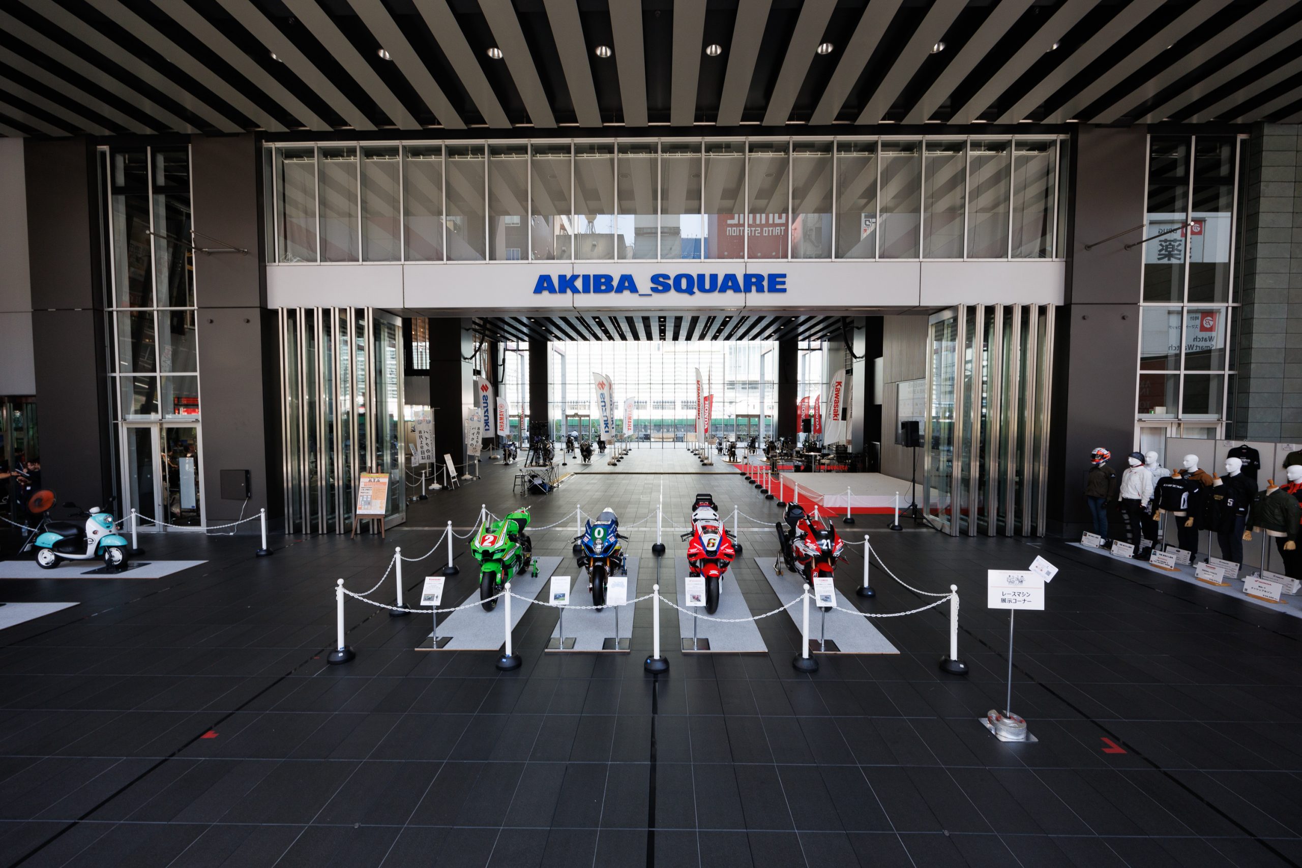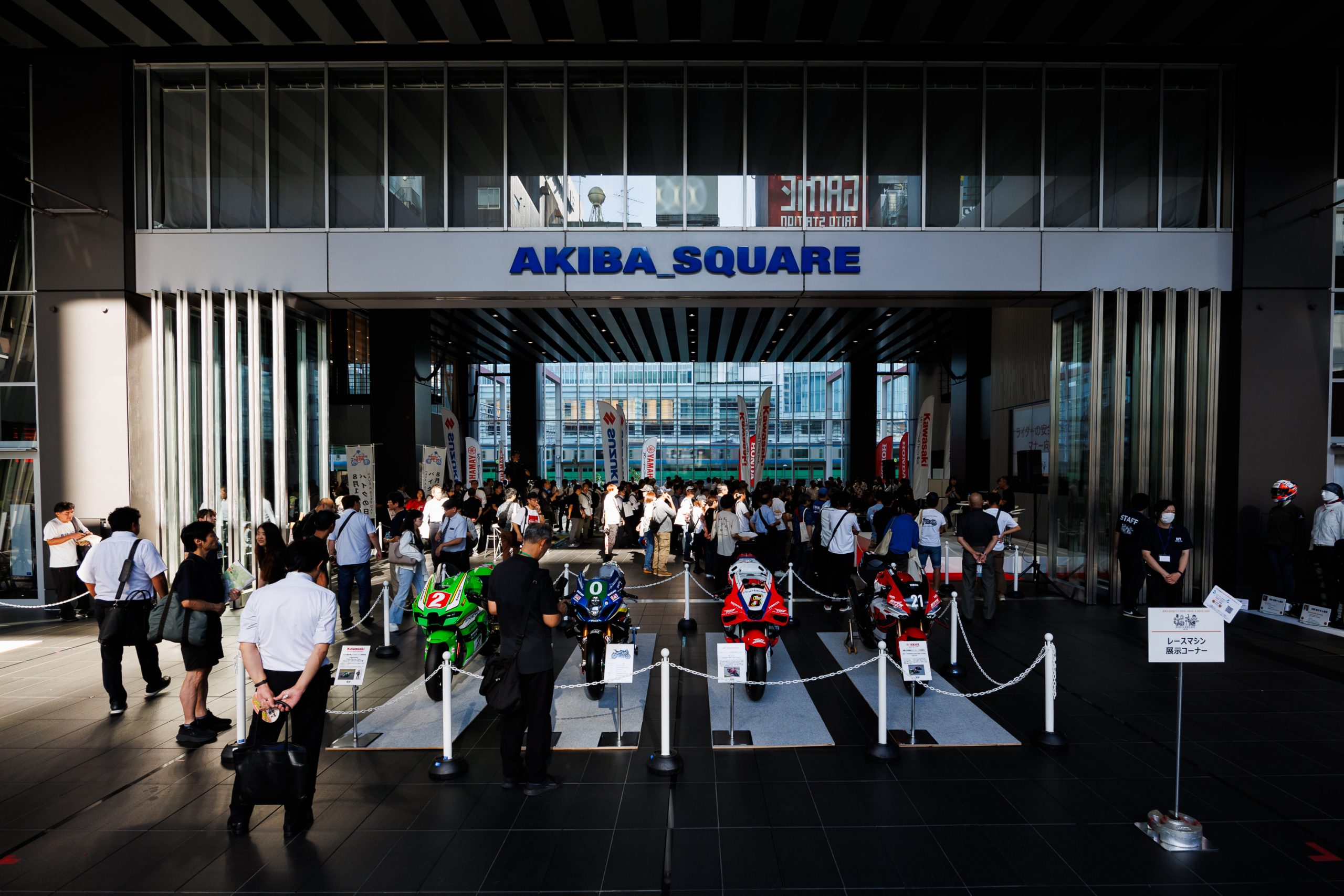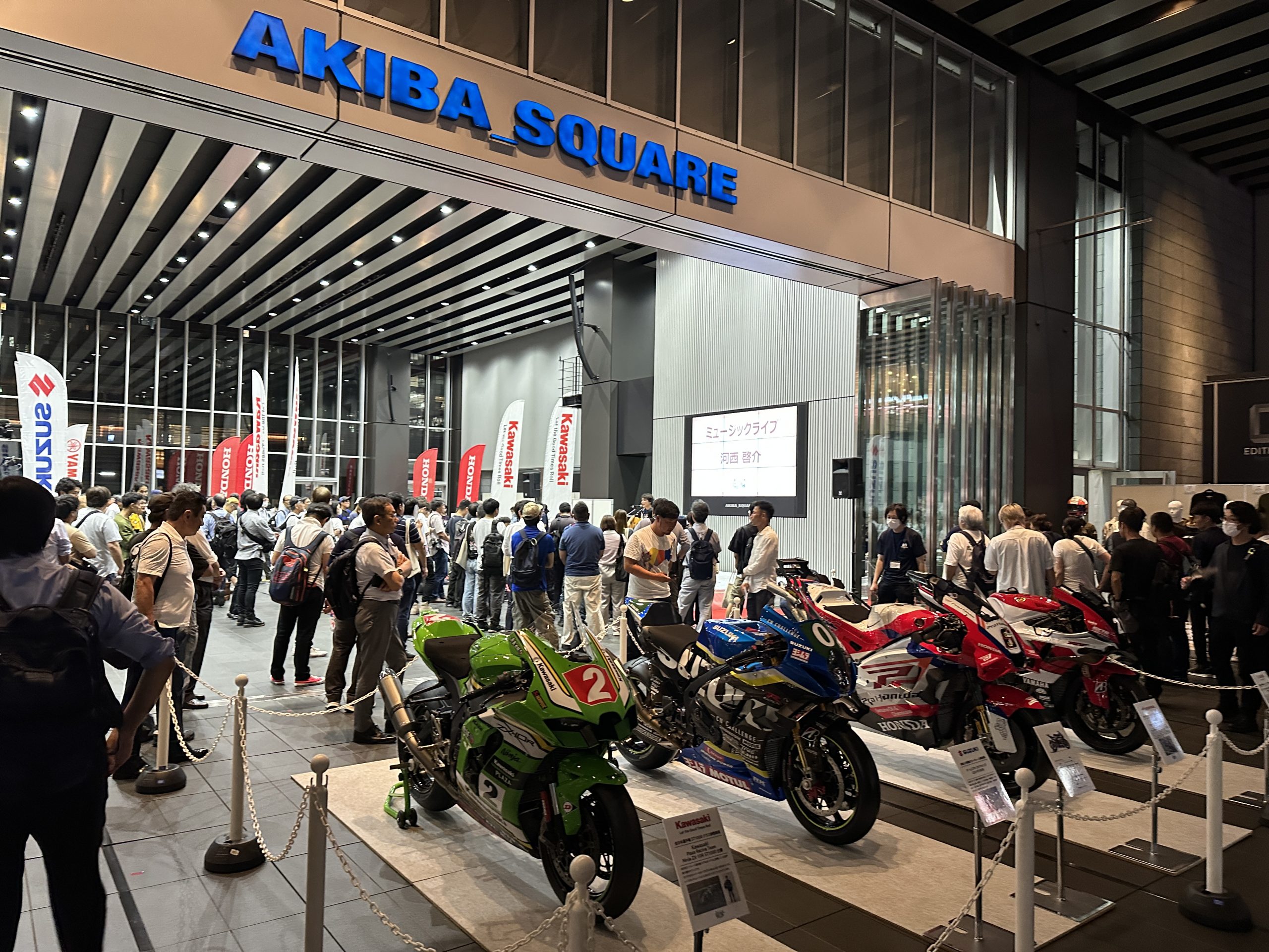 自工会と日本二輪車普及安全協会(日本二普協)は8月19日、「バイクの日」にちなんで東京・秋葉原駅前の「UDX AKIBA SQUARE」(東京都千代田区)で二輪車普及・安全啓発イベント「8月19日はバイクの日 HAVE A BIKE DAY」を開催しました。今年も若者が多く行きかう繁華街での特設会場にはカワサキ、スズキ、ホンダ、ヤマハの最新モデルをはじめ、レースマシン、電動バイク、警視庁による「白バイ」を展示。またバイクツーリズムを通じて地域活性化を図る「バイク応援自治体」(埼玉県小鹿野町、静岡県浜松市、愛知県豊根村)を紹介するブースや、ヘルメット、プロテクターの展示、また国内4メーカーが展開する商品をはじめとするアパレルも展示されました。