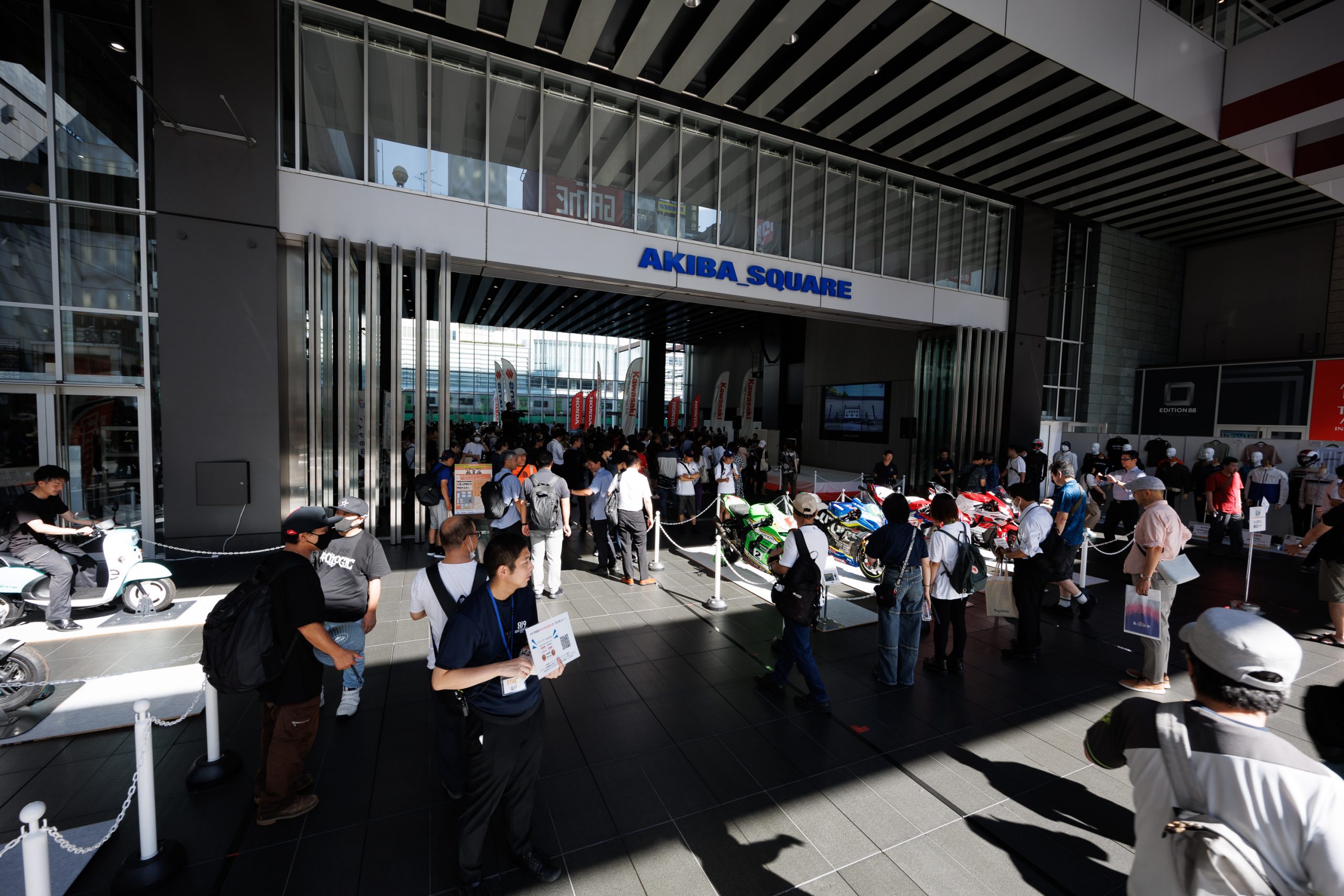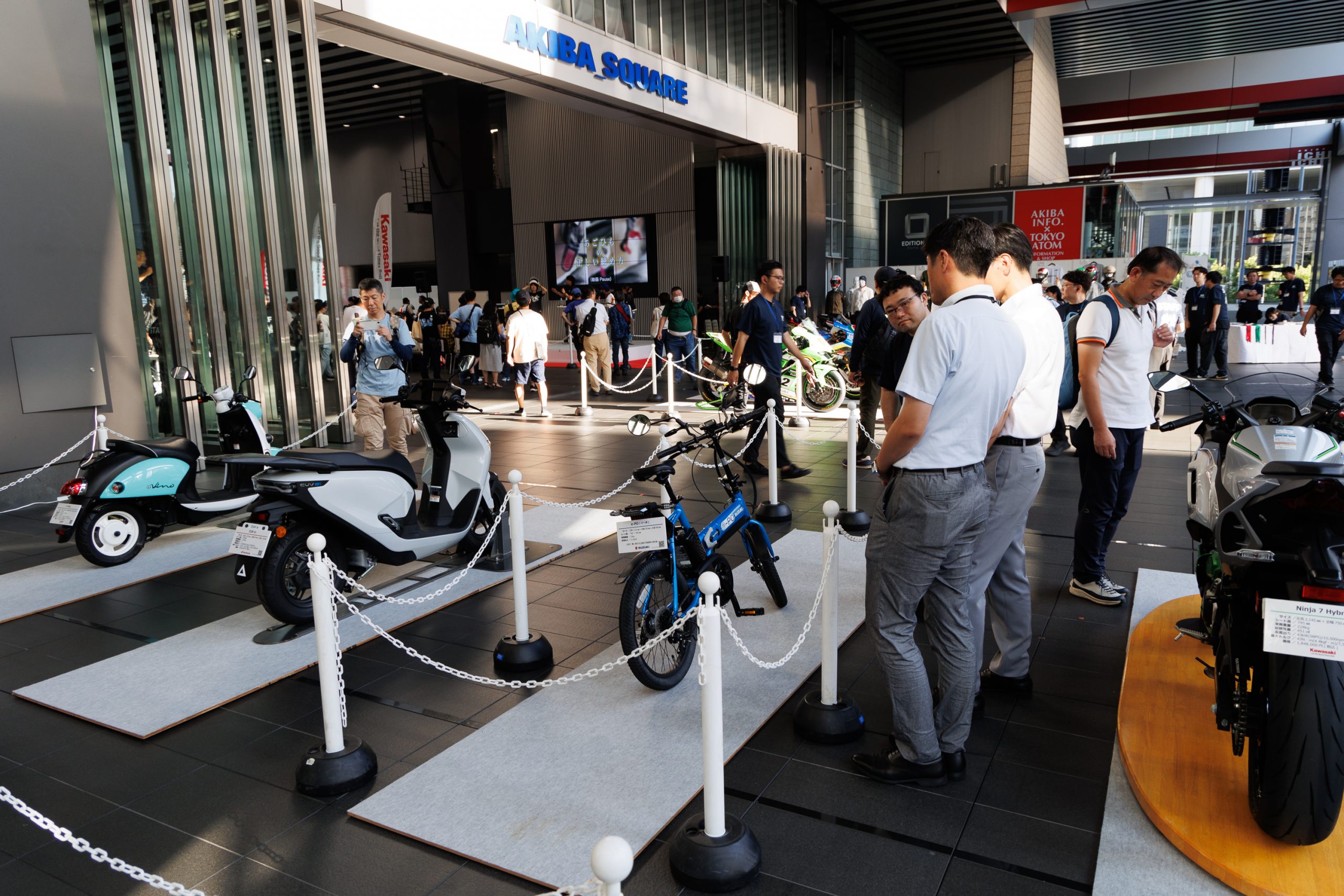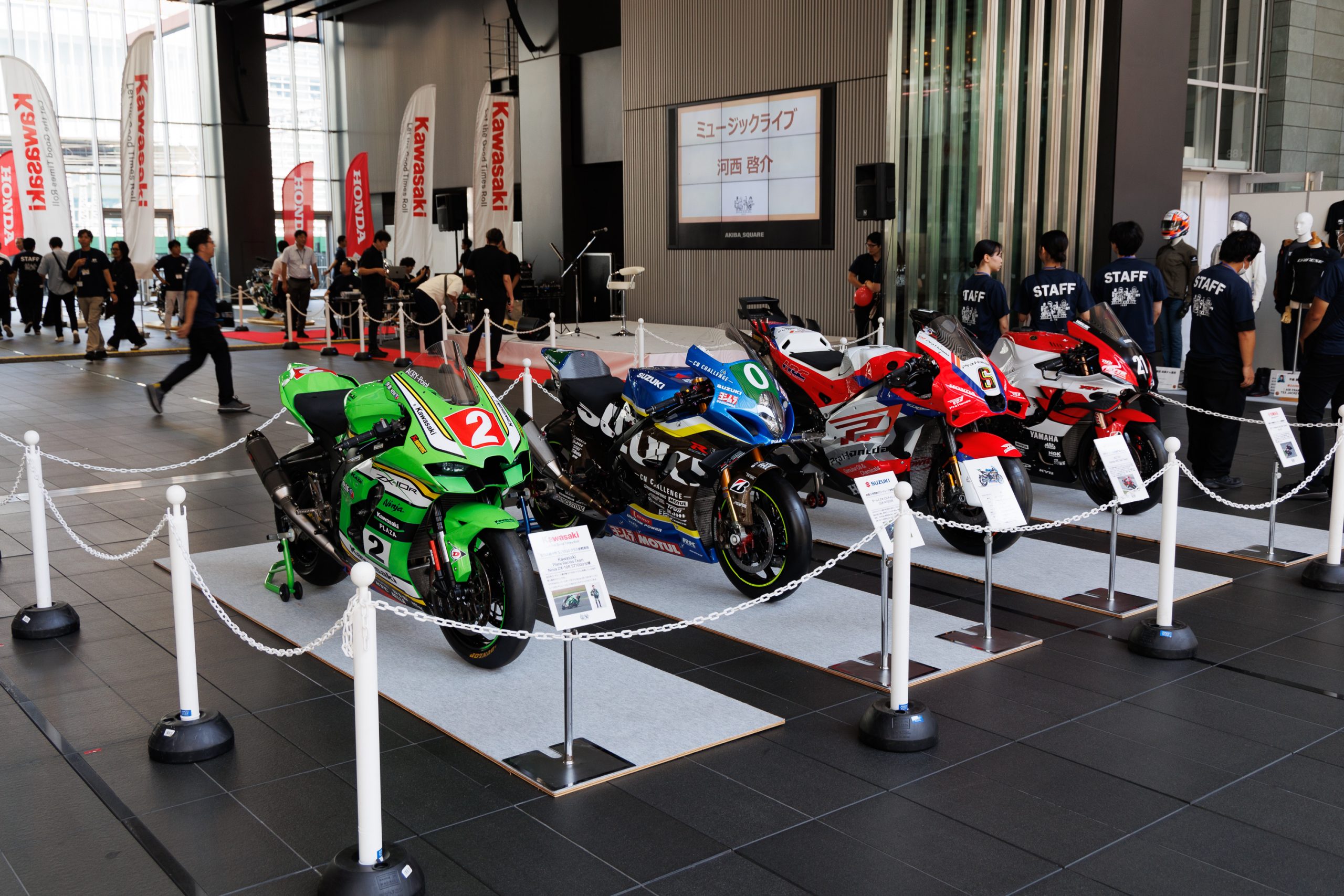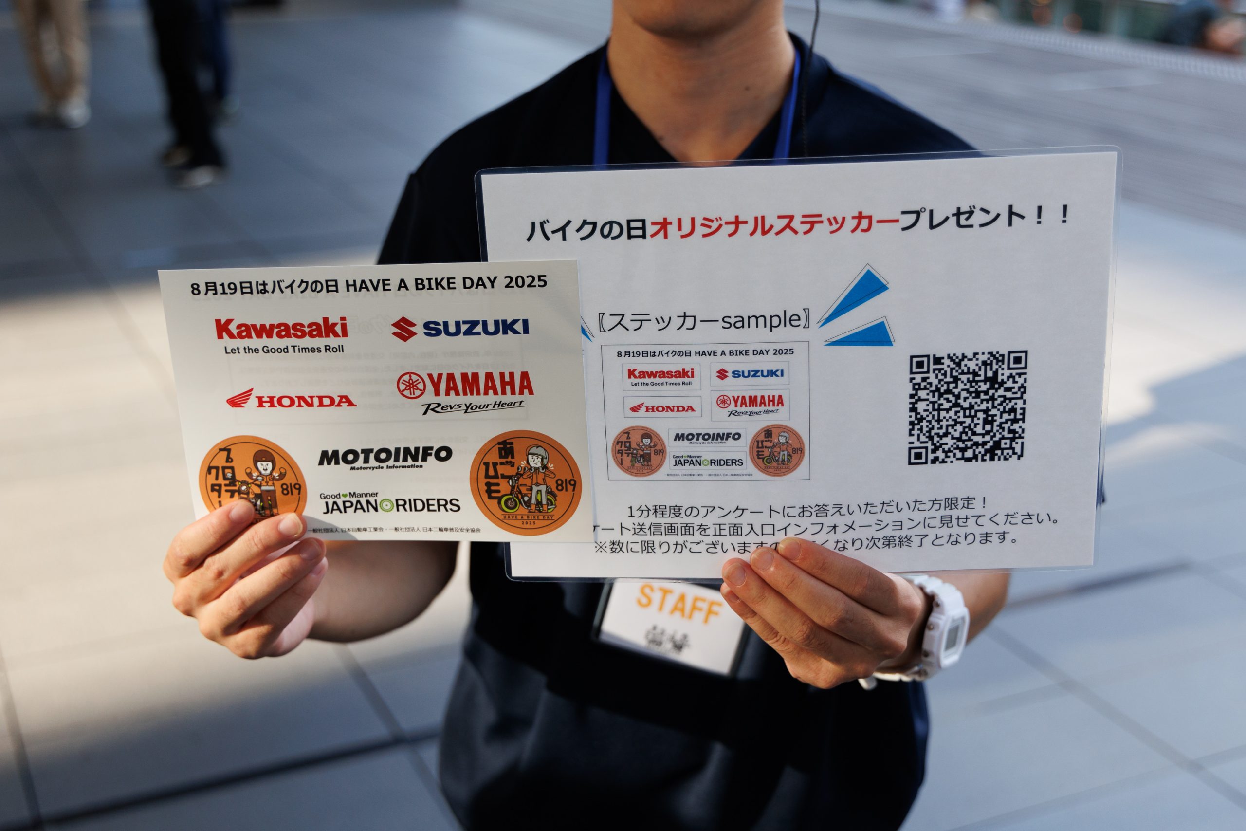 自工会と日本二輪車普及安全協会(日本二普協)は8月19日、「バイクの日」にちなんで東京・秋葉原駅前の「UDX AKIBA SQUARE」(東京都千代田区)で二輪車普及・安全啓発イベント「8月19日はバイクの日 HAVE A BIKE DAY」を開催しました。今年も若者が多く行きかう繁華街での特設会場にはカワサキ、スズキ、ホンダ、ヤマハの最新モデルをはじめ、レースマシン、電動バイク、警視庁による「白バイ」を展示。またバイクツーリズムを通じて地域活性化を図る「バイク応援自治体」(埼玉県小鹿野町、静岡県浜松市、愛知県豊根村)を紹介するブースや、ヘルメット、プロテクターの展示、また国内4メーカーが展開する商品をはじめとするアパレルも展示されました。