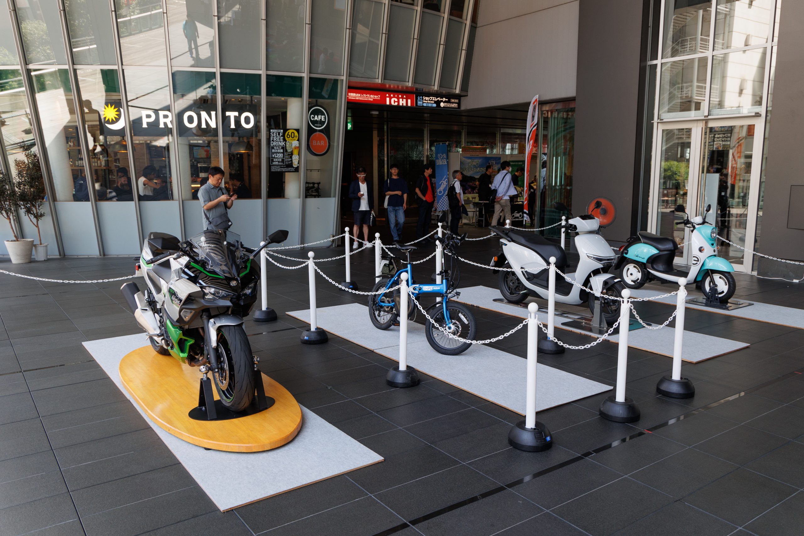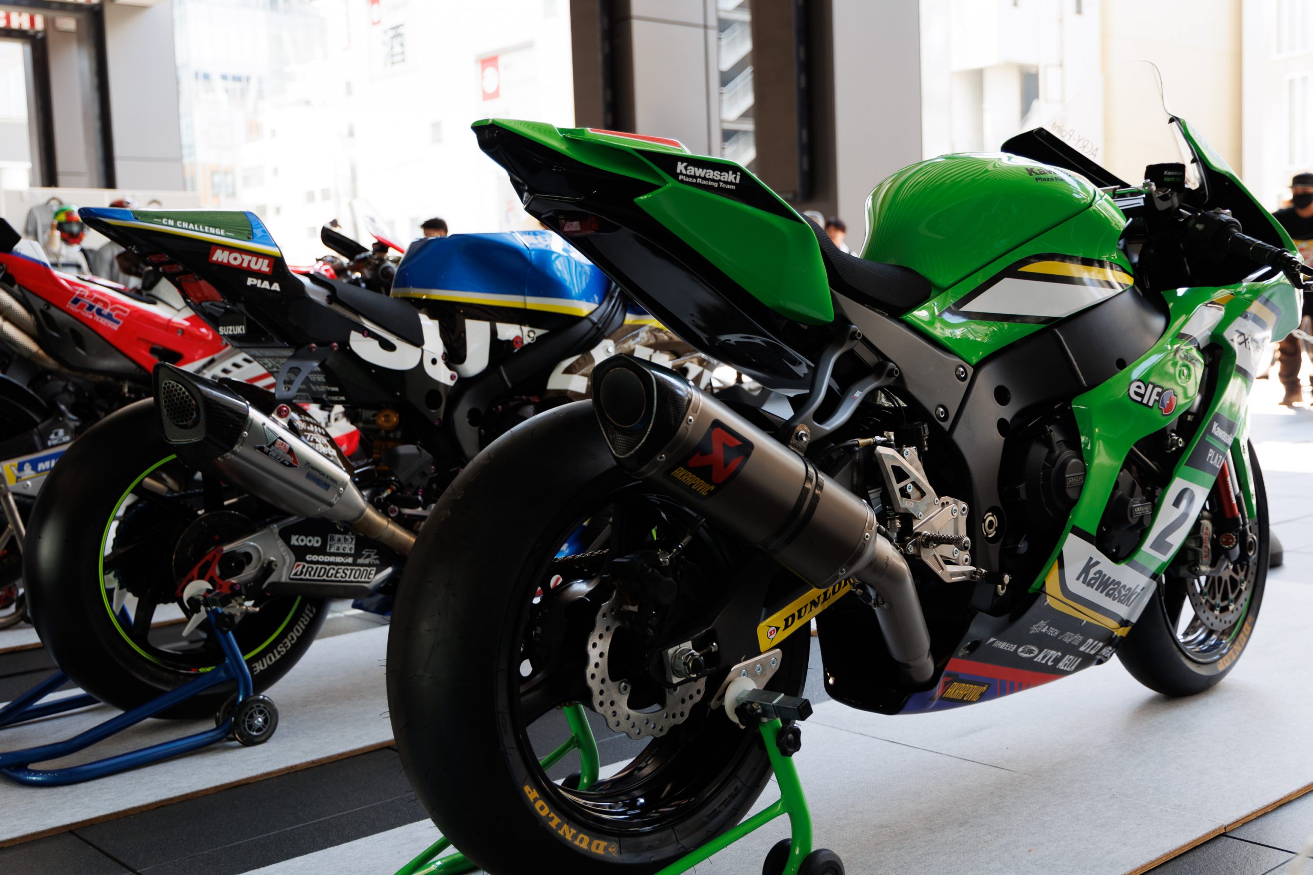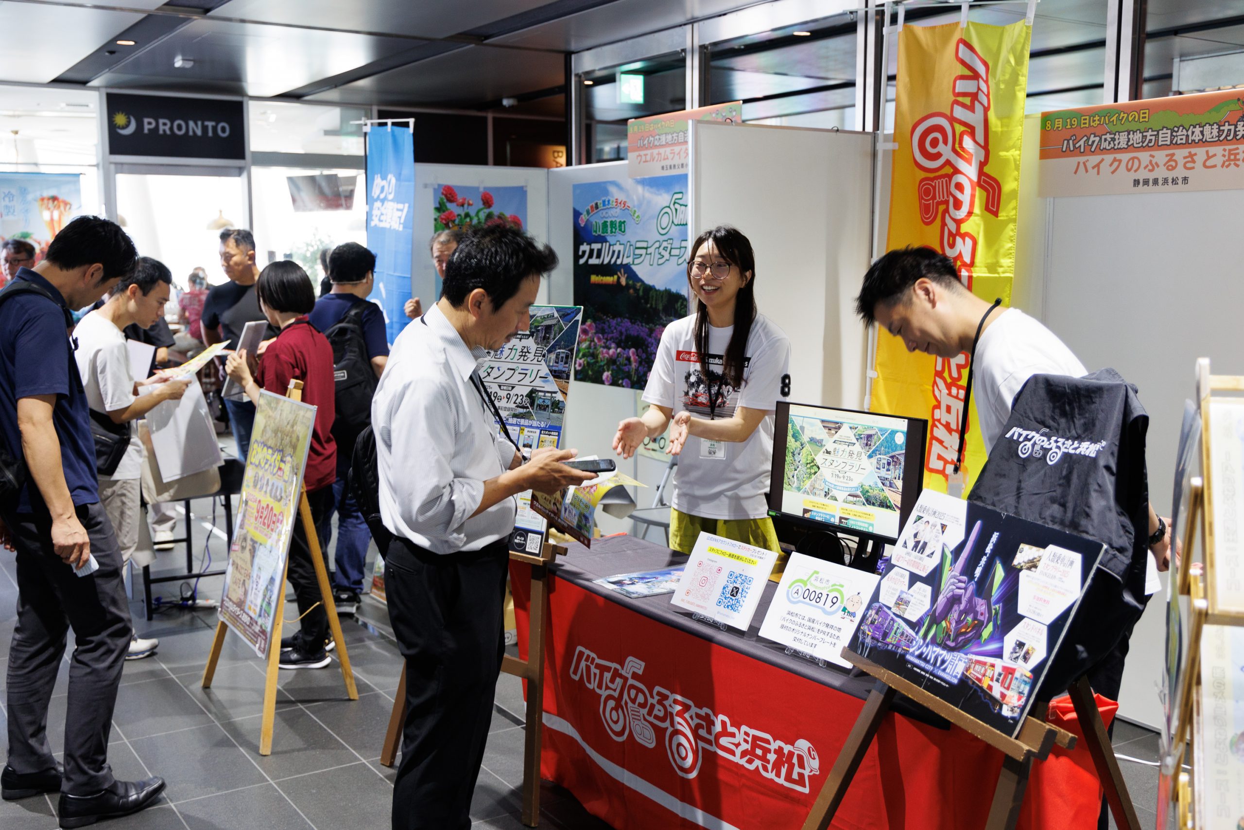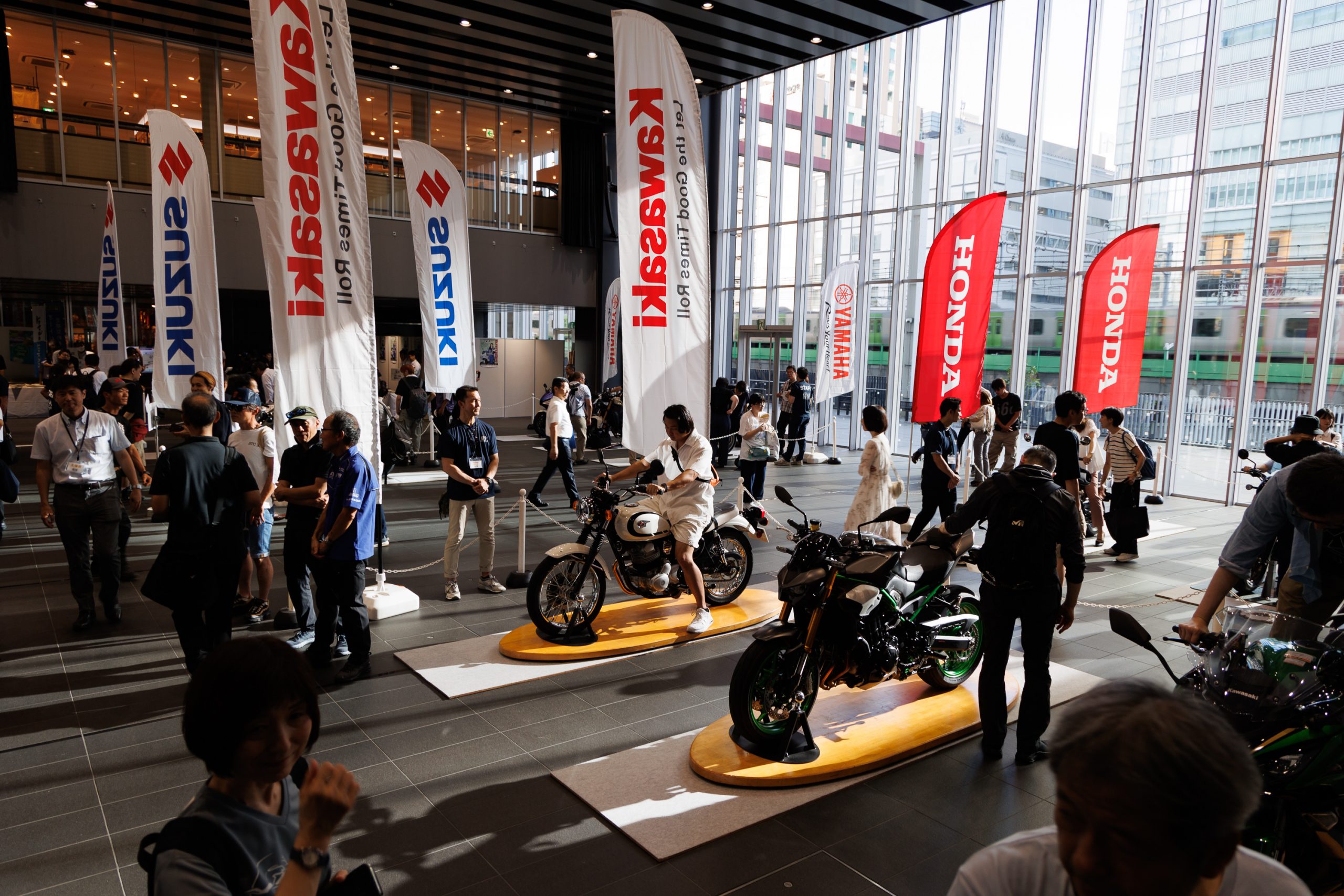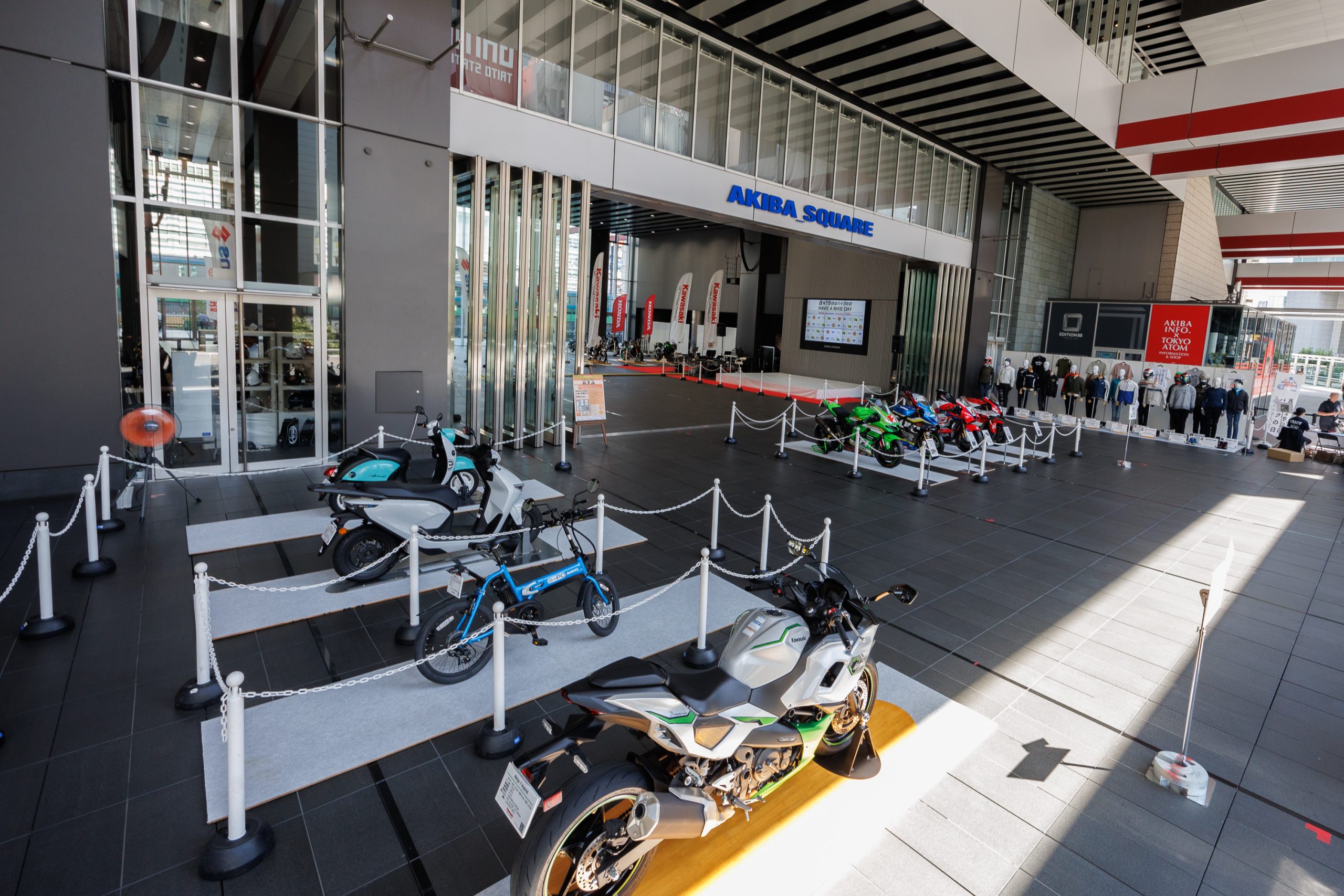 自工会と日本二輪車普及安全協会(日本二普協)は8月19日、「バイクの日」にちなんで東京・秋葉原駅前の「UDX AKIBA SQUARE」(東京都千代田区)で二輪車普及・安全啓発イベント「8月19日はバイクの日 HAVE A BIKE DAY」を開催しました。今年も若者が多く行きかう繁華街での特設会場にはカワサキ、スズキ、ホンダ、ヤマハの最新モデルをはじめ、レースマシン、電動バイク、警視庁による「白バイ」を展示。またバイクツーリズムを通じて地域活性化を図る「バイク応援自治体」(埼玉県小鹿野町、静岡県浜松市、愛知県豊根村)を紹介するブースや、ヘルメット、プロテクターの展示、また国内4メーカーが展開する商品をはじめとするアパレルも展示されました。