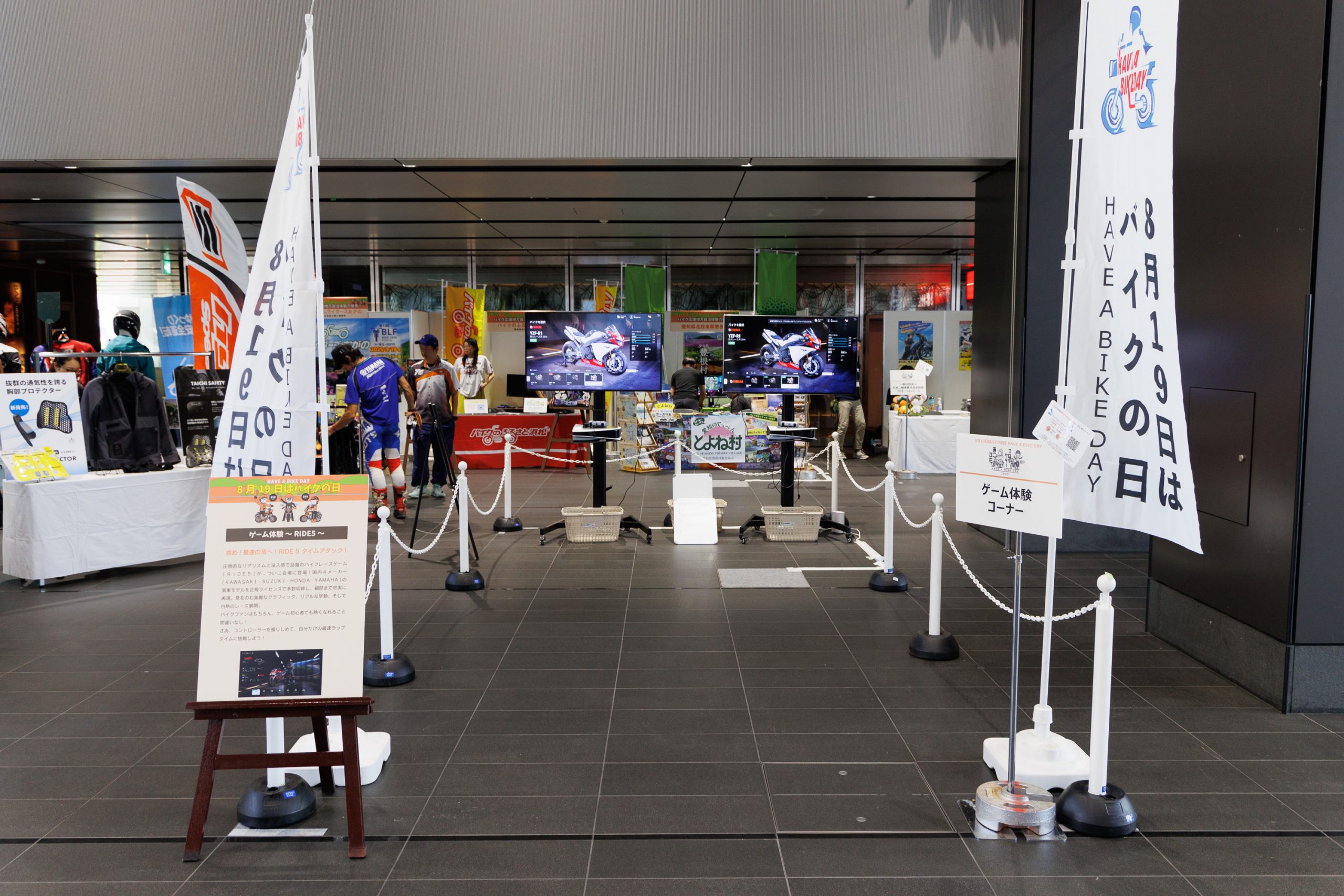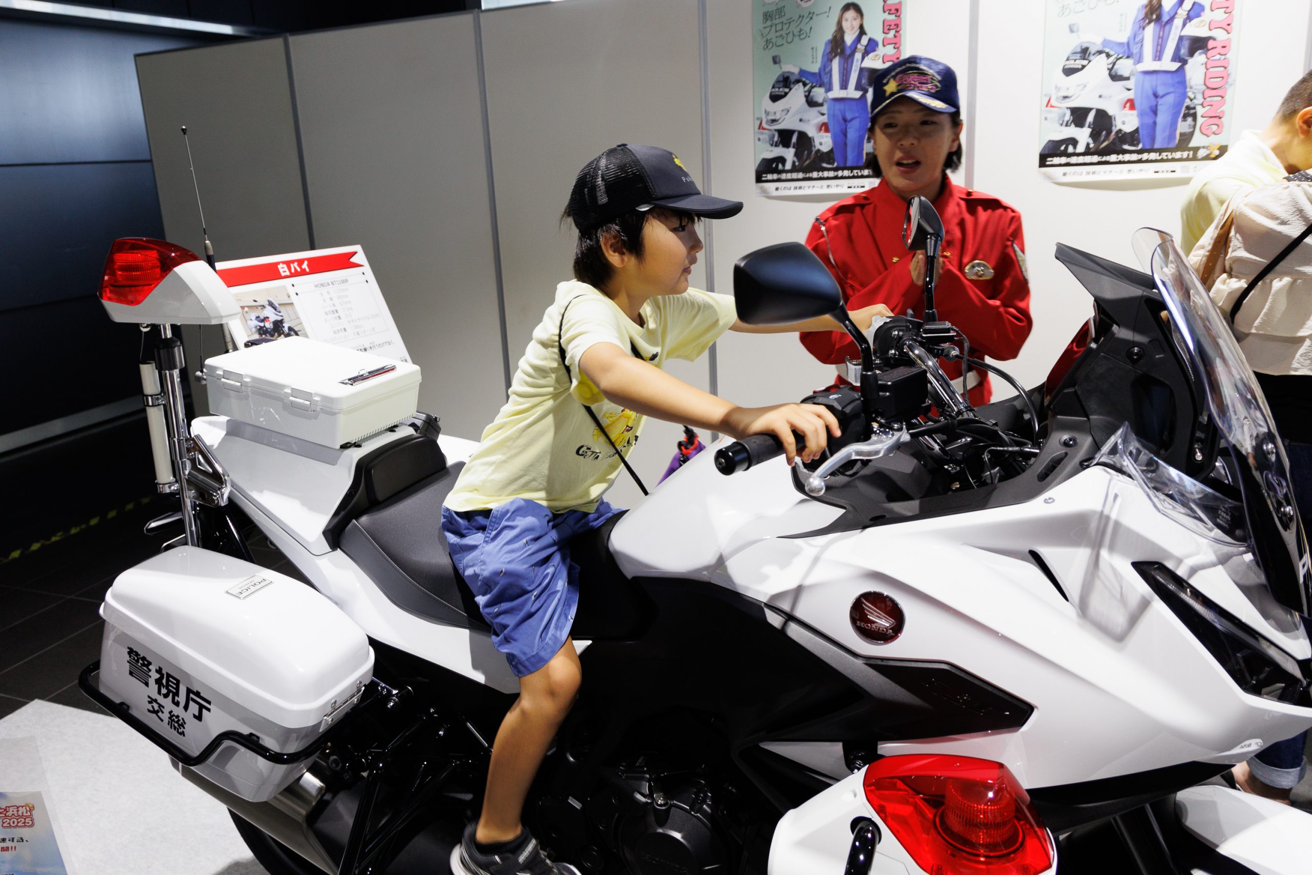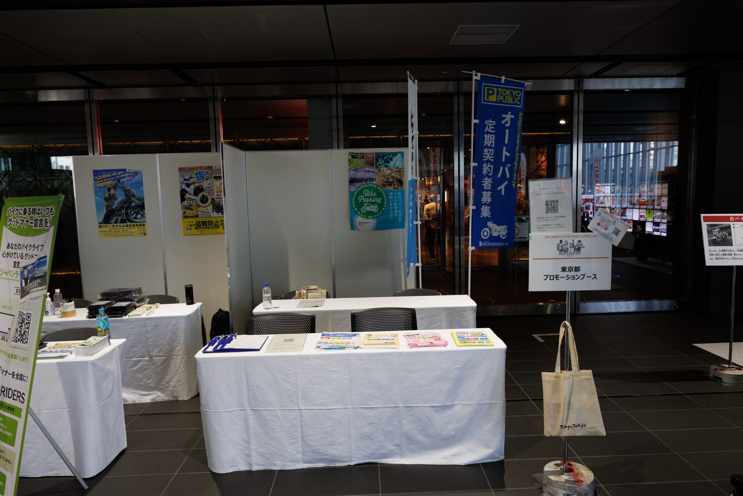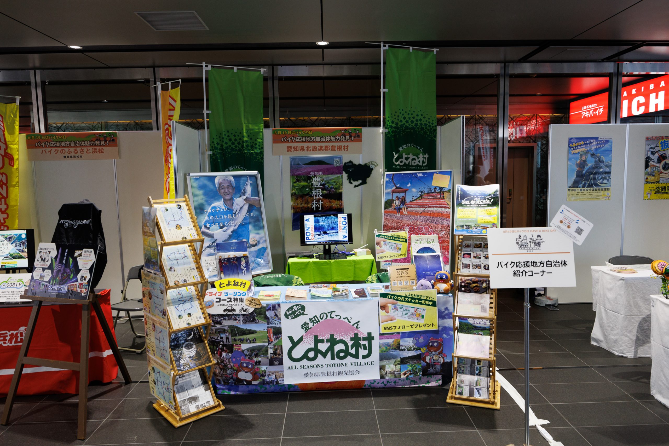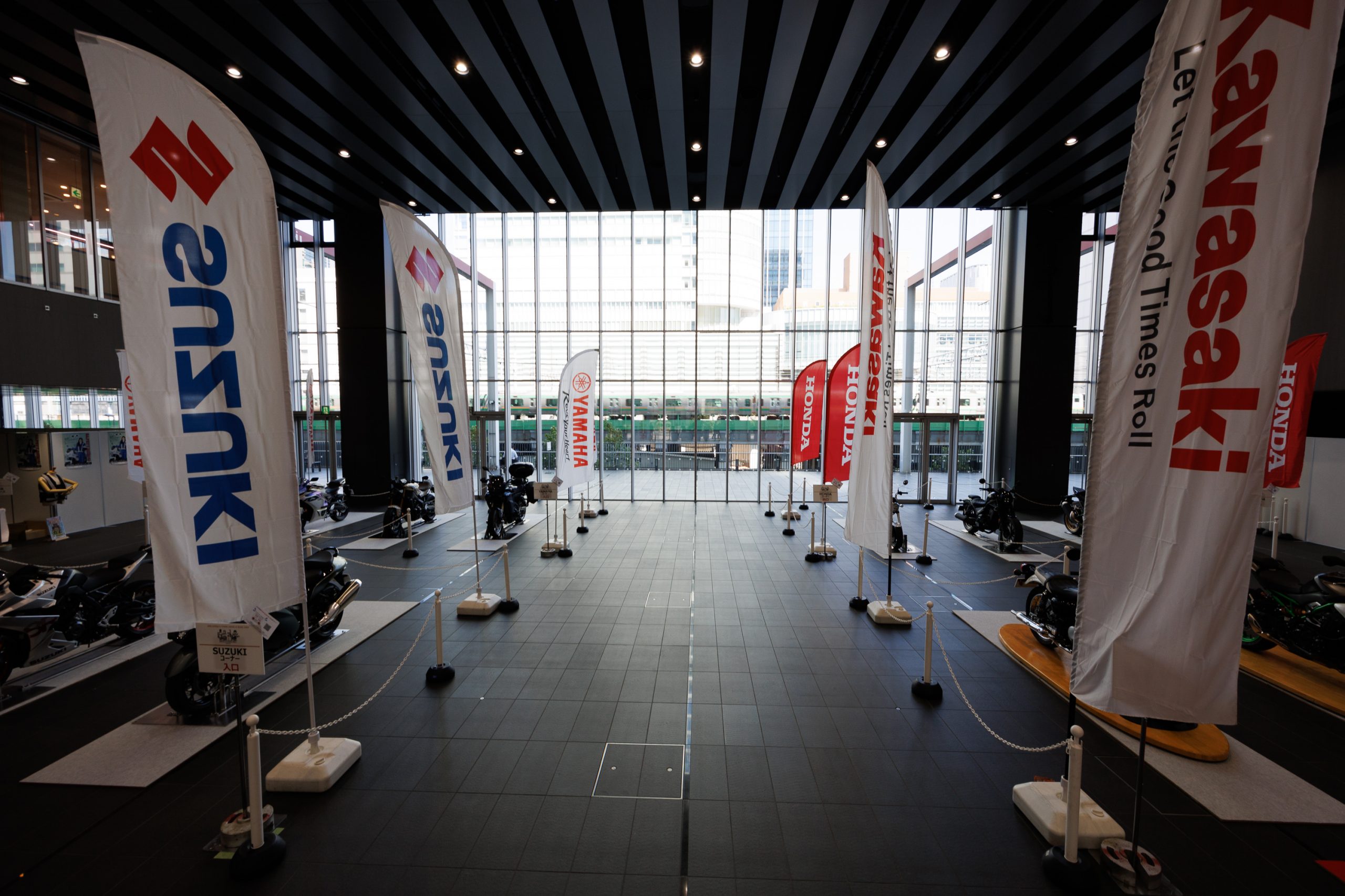 ステージのほかに国内4メーカーの新型モデル、レースマシンの展示や警視庁のご協力をいただき白バイの展示並びに東京都さまによる二輪駐車場のご紹介や地方自治体の皆さまのブースもございます。