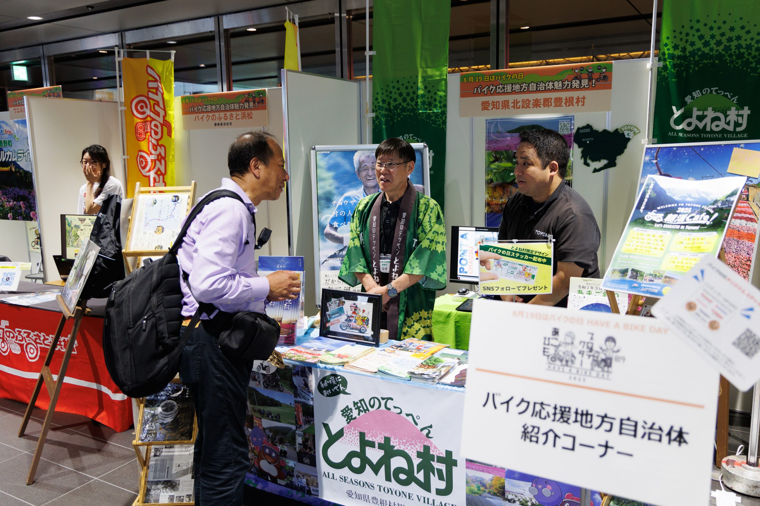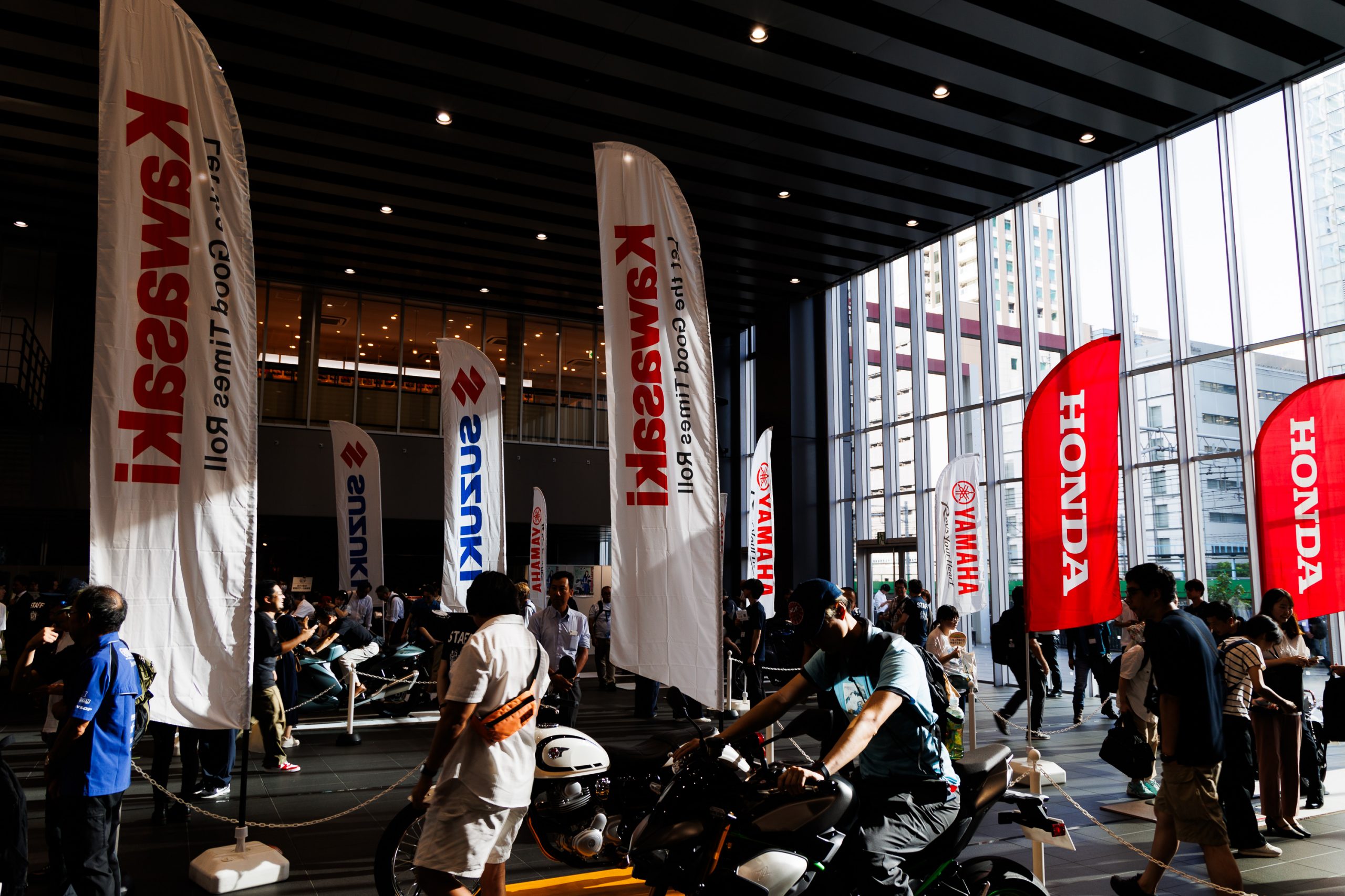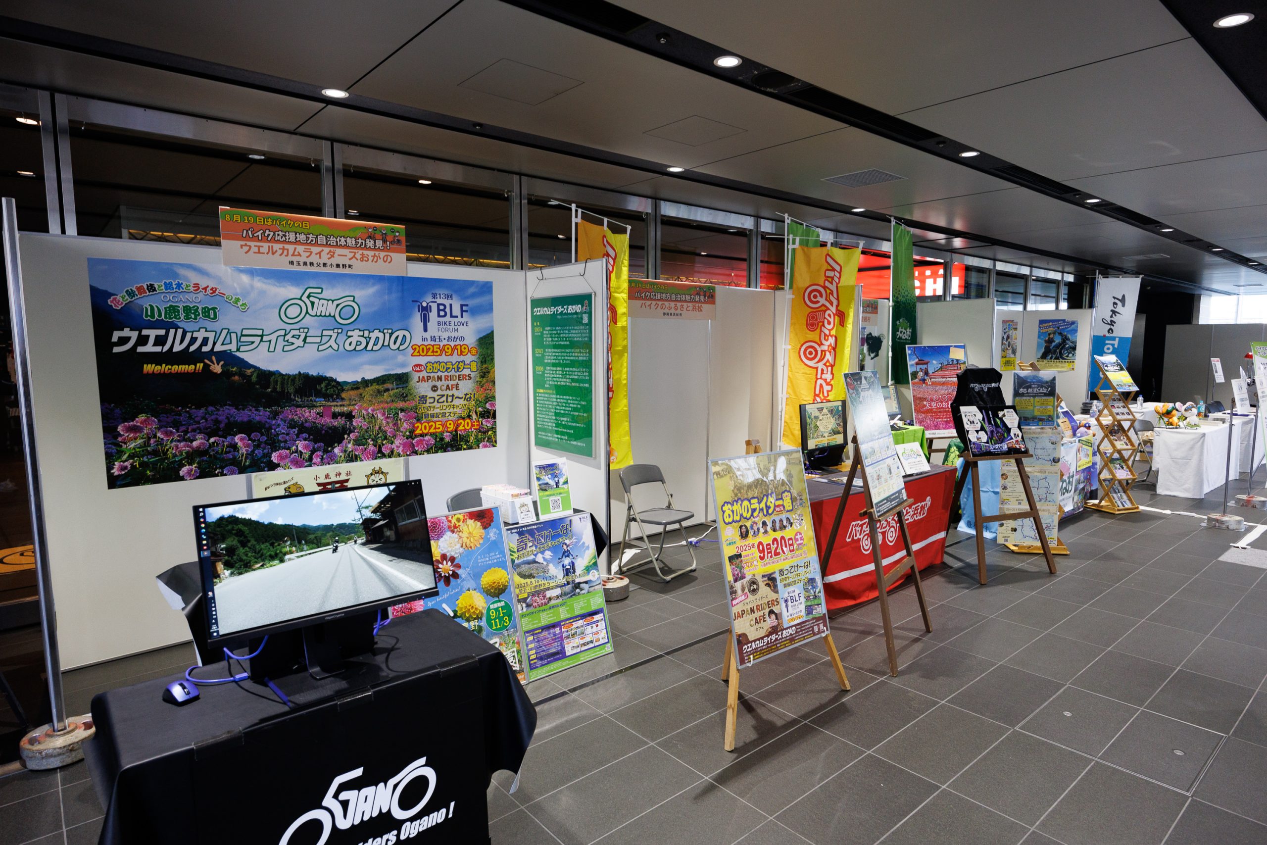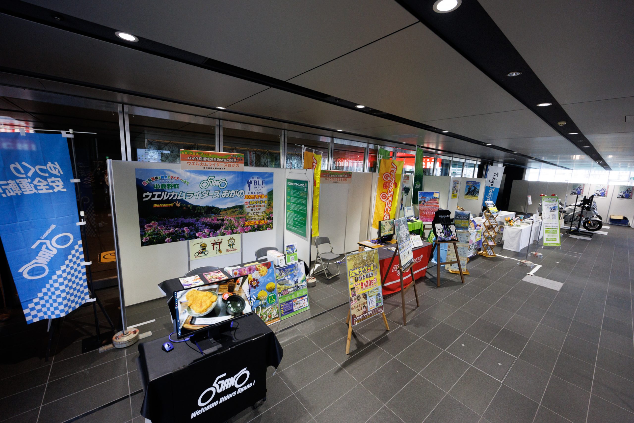 ステージのほかに国内4メーカーの新型モデル、レースマシンの展示や警視庁のご協力をいただき白バイの展示並びに東京都さまによる二輪駐車場のご紹介や地方自治体の皆さまのブースもございます。