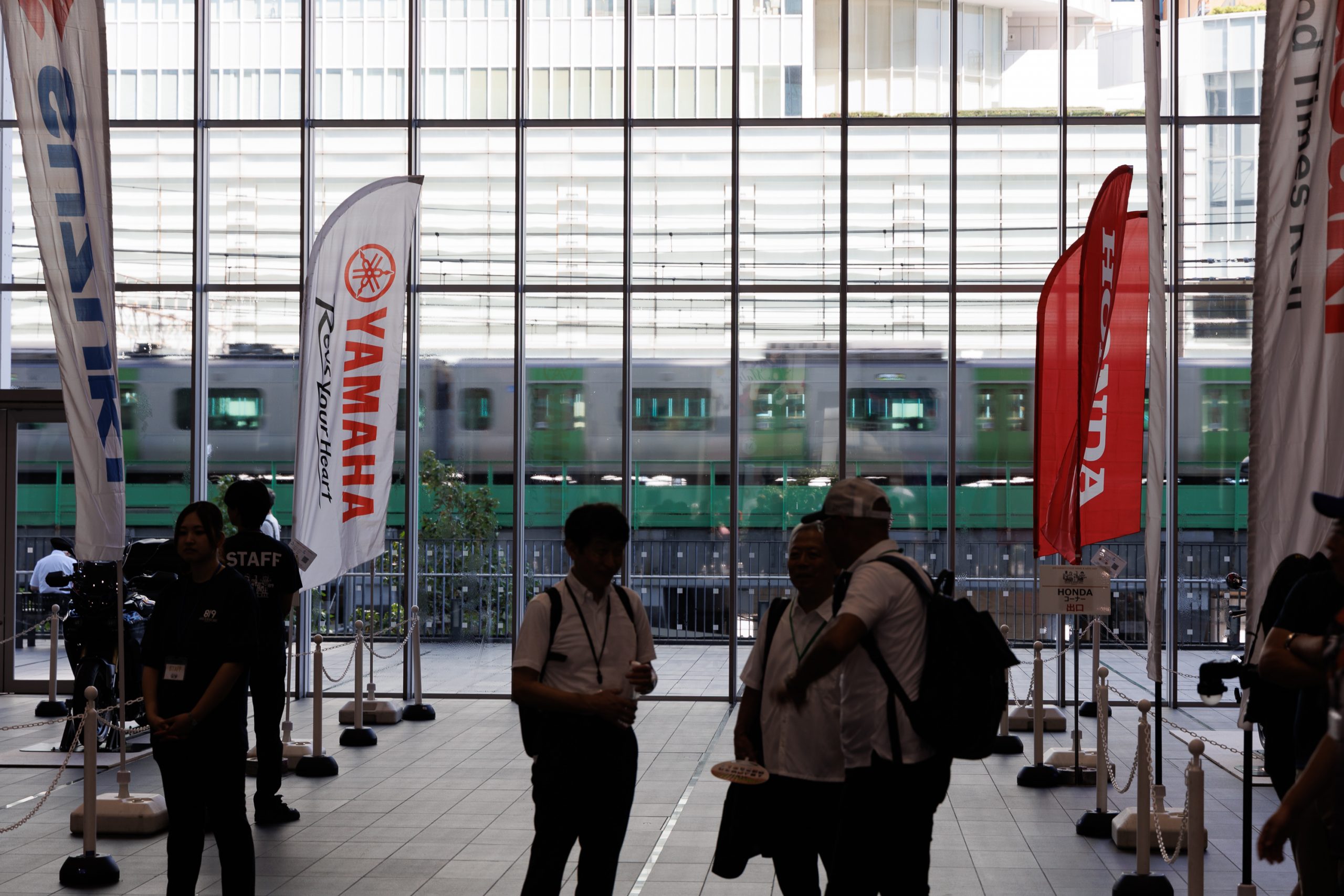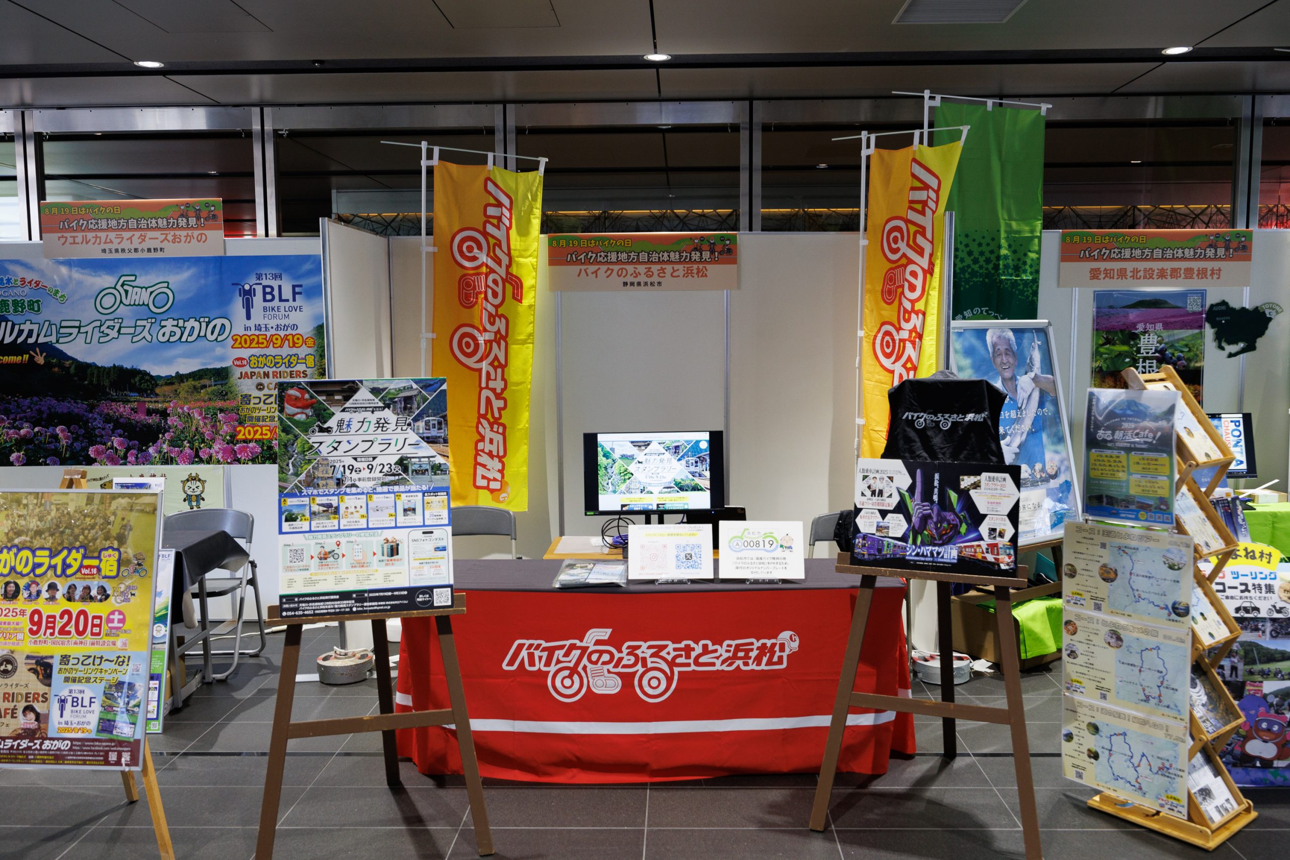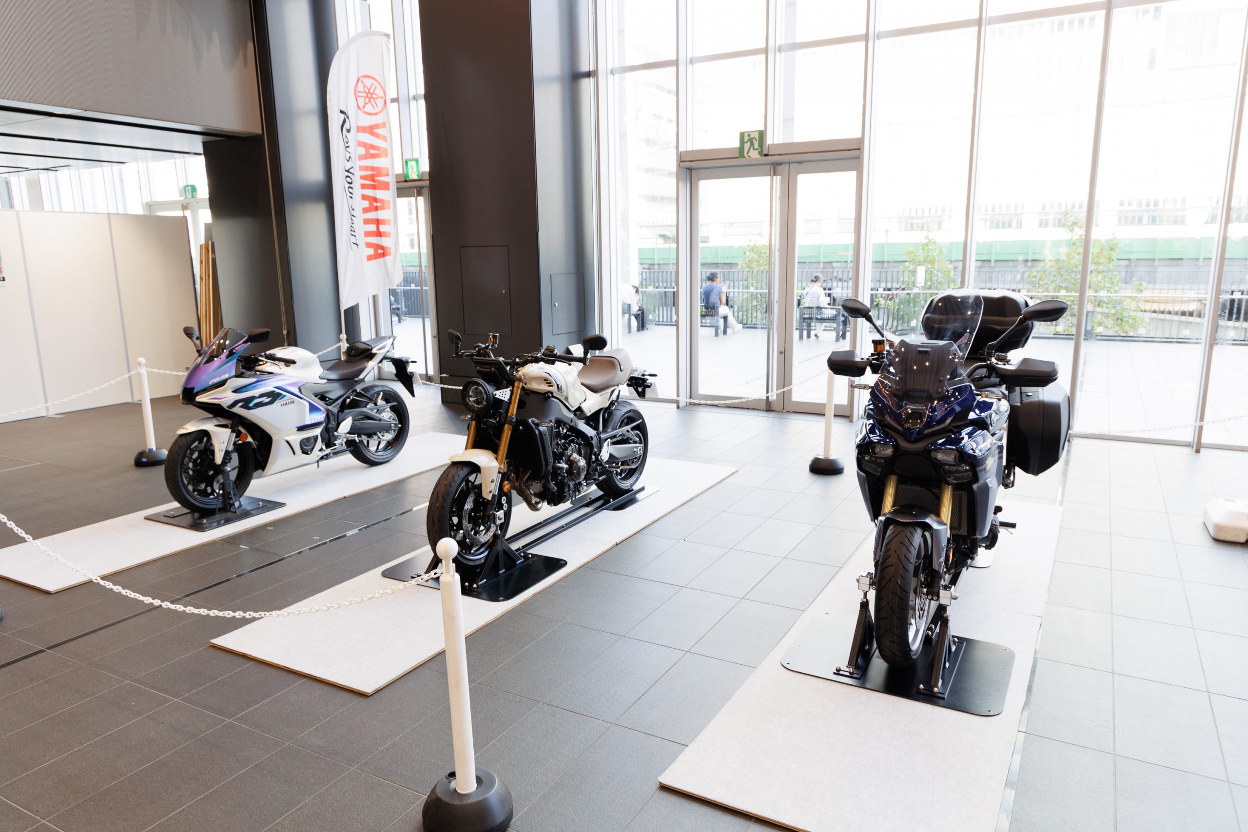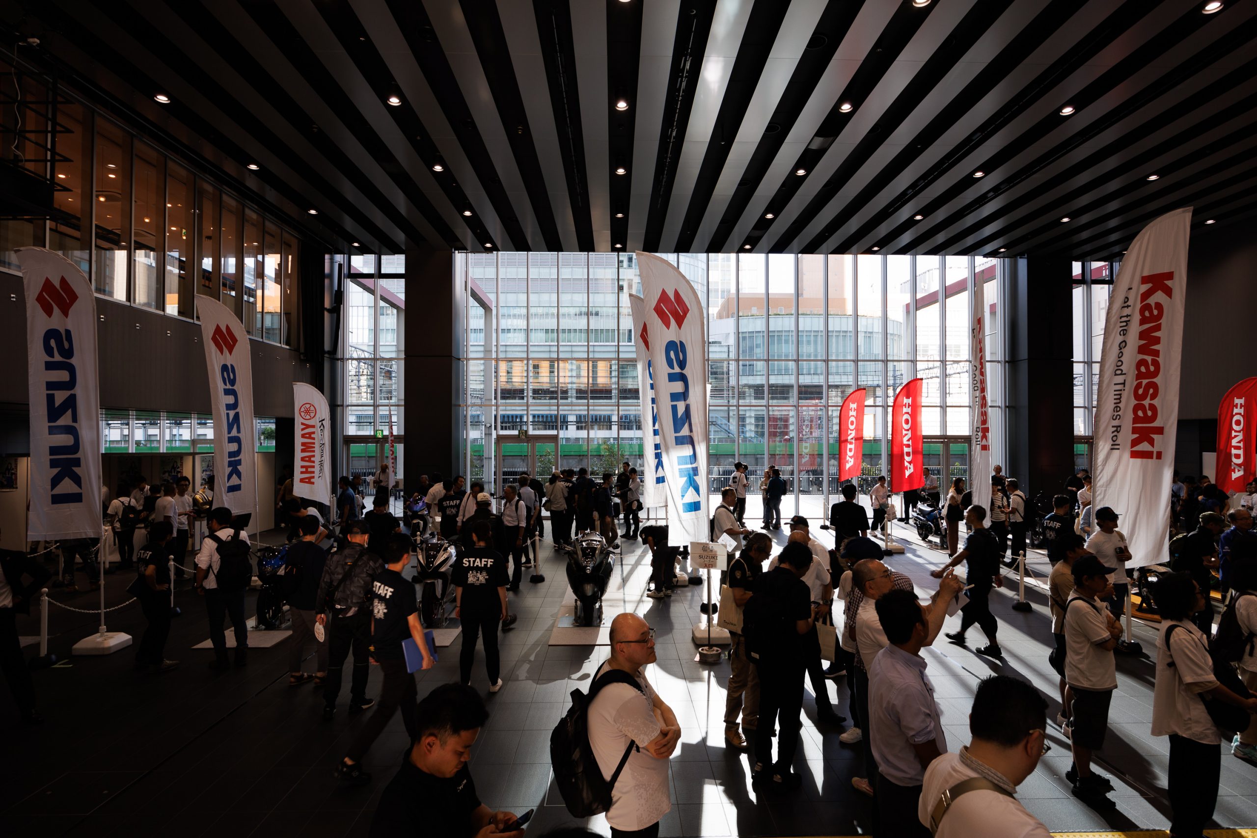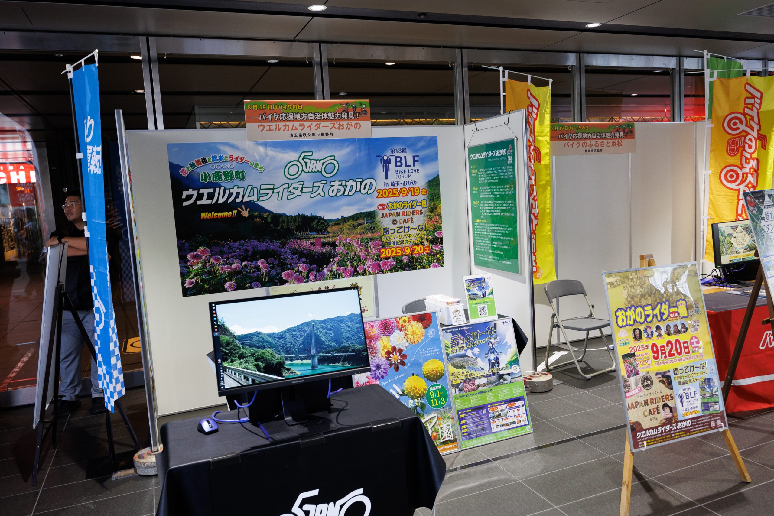 ステージのほかに国内4メーカーの新型モデル、レースマシンの展示や警視庁のご協力をいただき白バイの展示並びに東京都さまによる二輪駐車場のご紹介や地方自治体の皆さまのブースもございます。