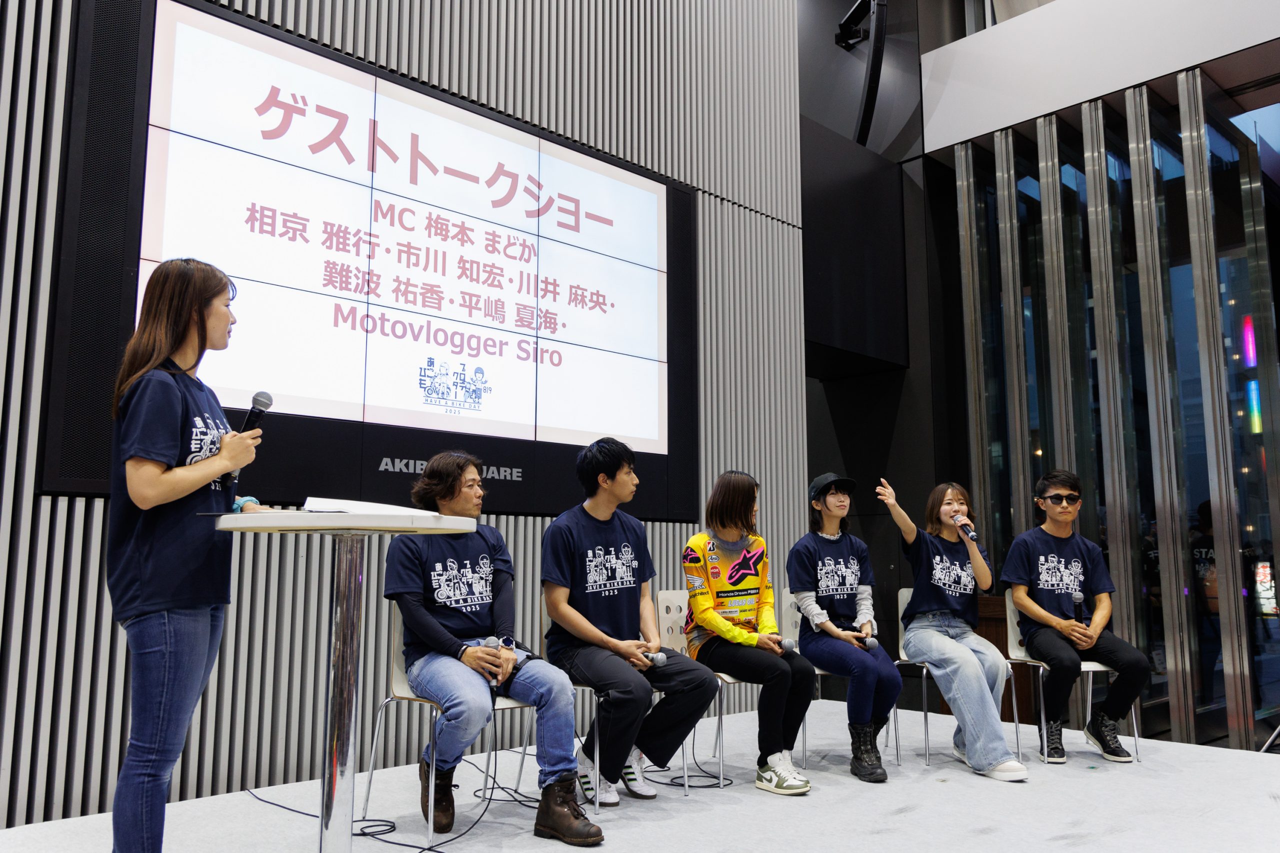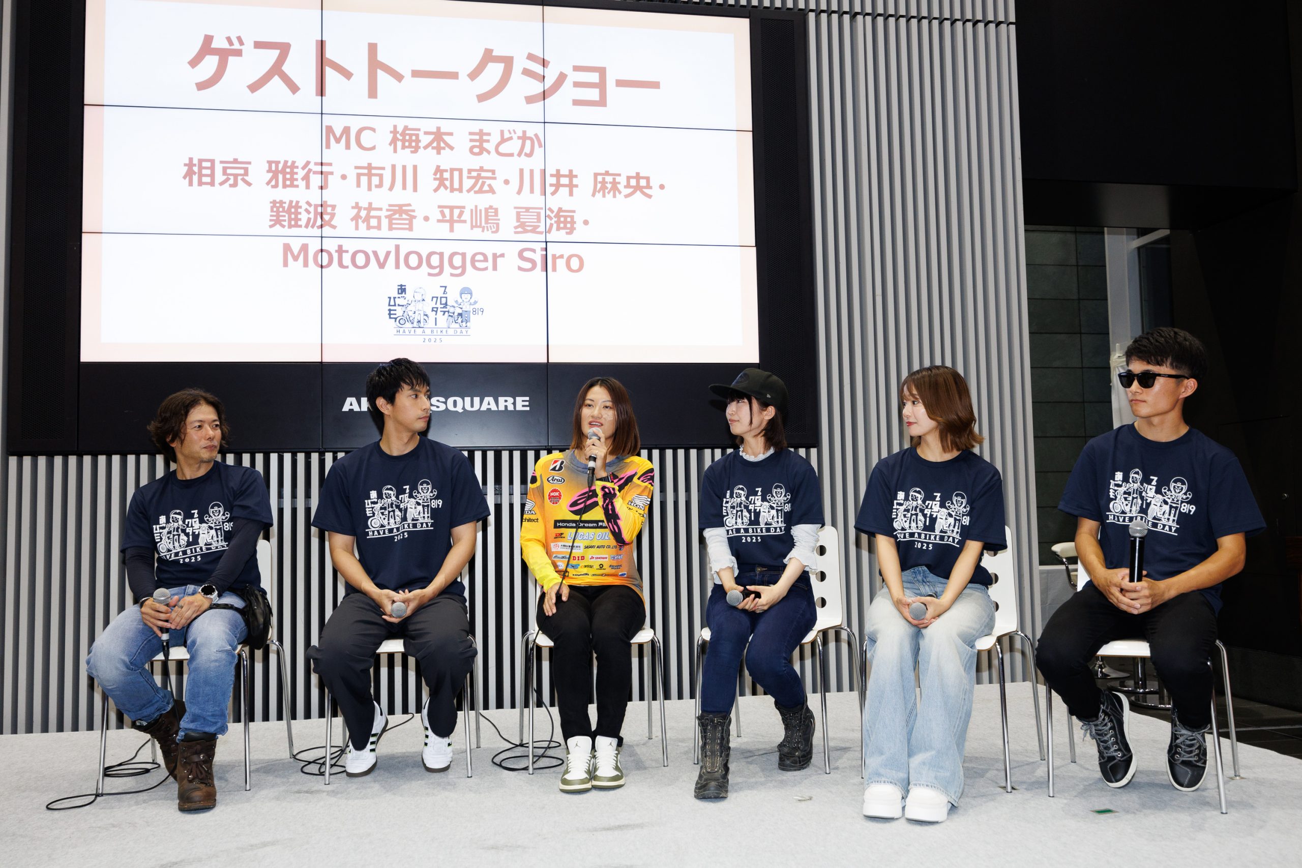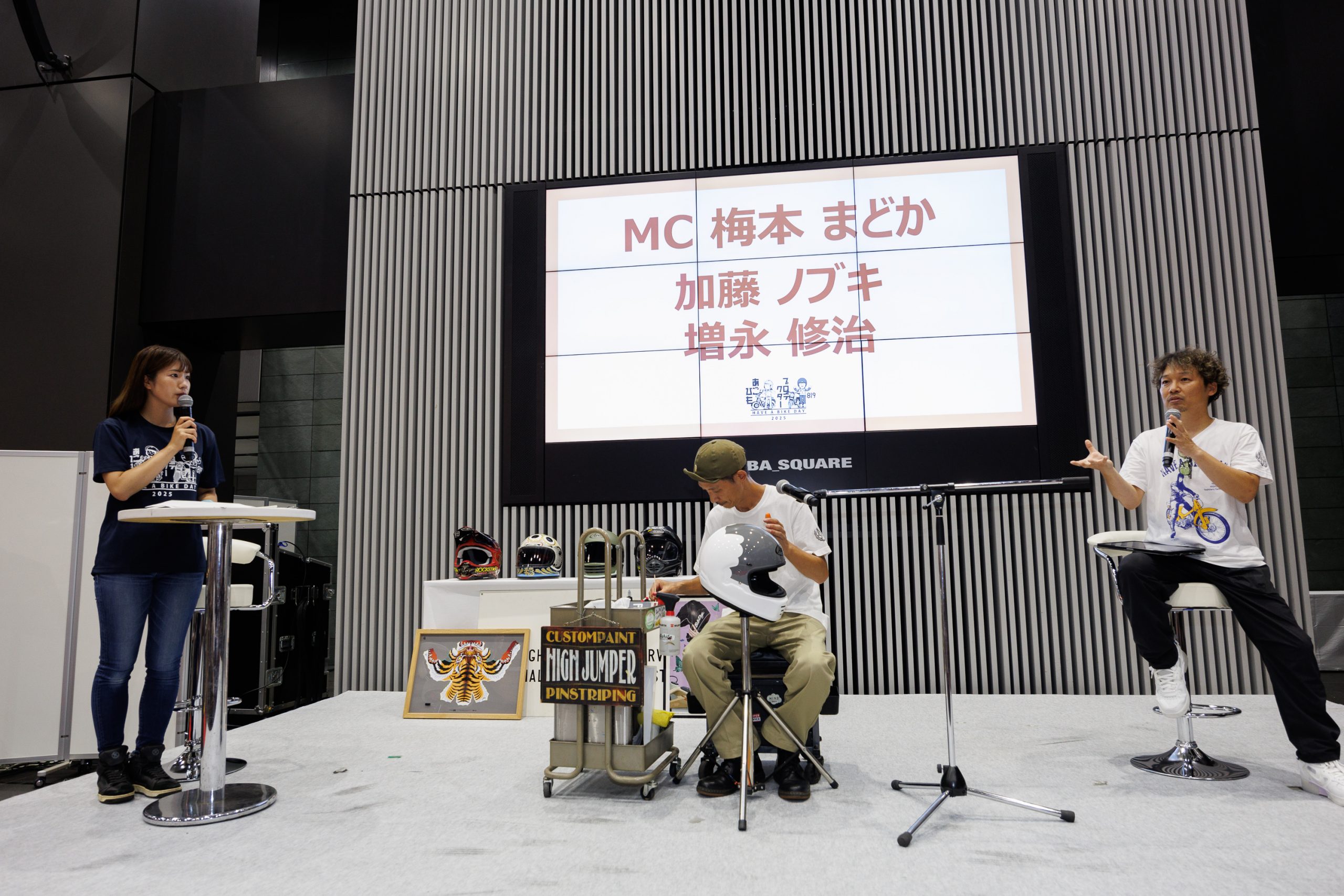 ステージでは安全啓発のイベントはもちろん、女性レーシングライダーやバイクタレントなどによるライダーのファッションをテーマにしたトークショー、クリエイター、ペインターによるヘルメットのカスタムペイントの実演、バイクに所縁のあるアーティストによる音楽ライブなど、様々な角度からバイク文化を訴求。さらに昨年に引き続き電動トライアルバイクによる華麗なトライアルデモもギャラリーの目前で披露され、バイクファンや潜在ユーザーはもちろん、道行く親子連れや外国人観光客、さらには今回初めて夜20時までの開催となったことで、仕事帰りのビジネスパーソンが多く訪れるなど約2400人の来場者にバイクの魅力を体験いただきました。