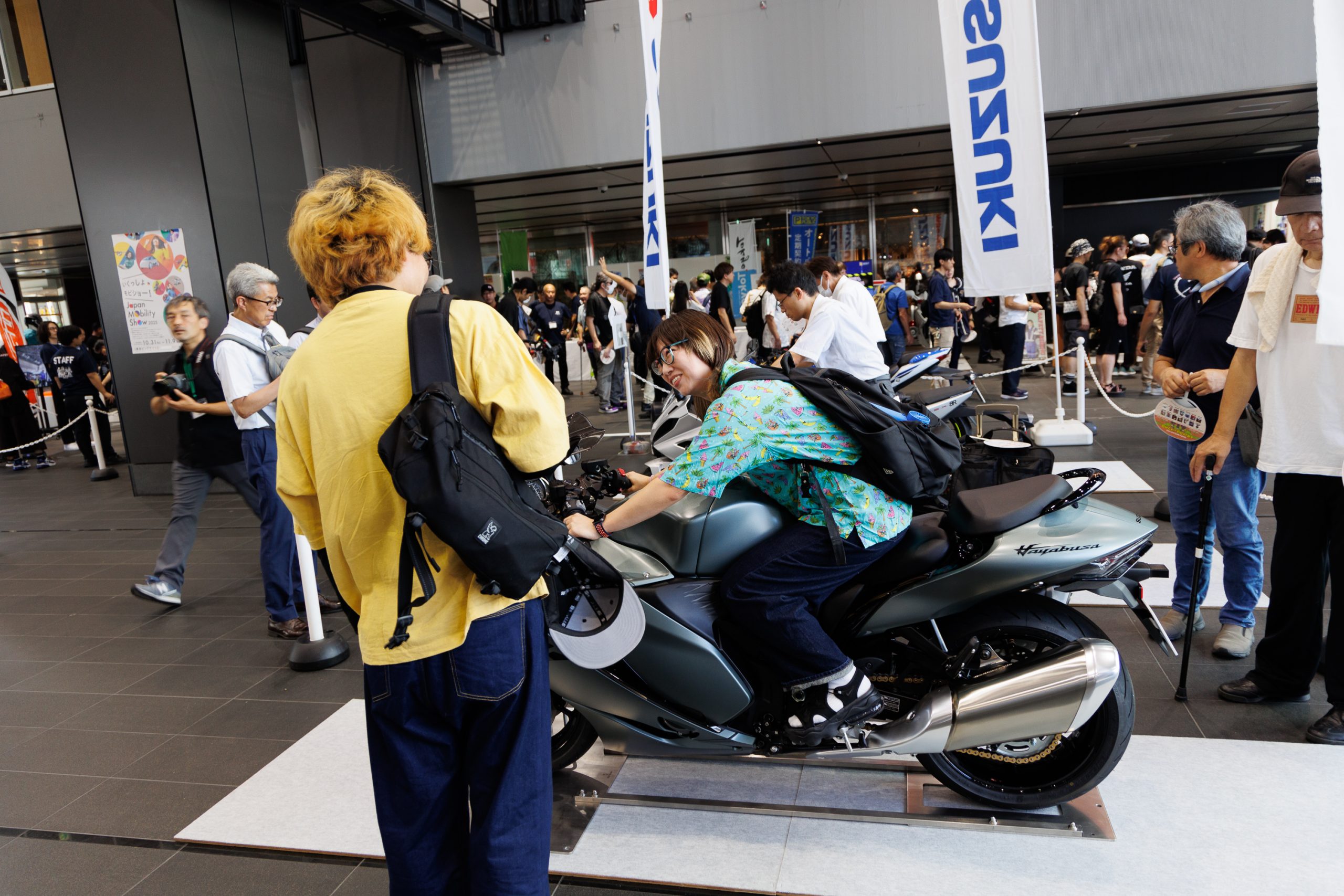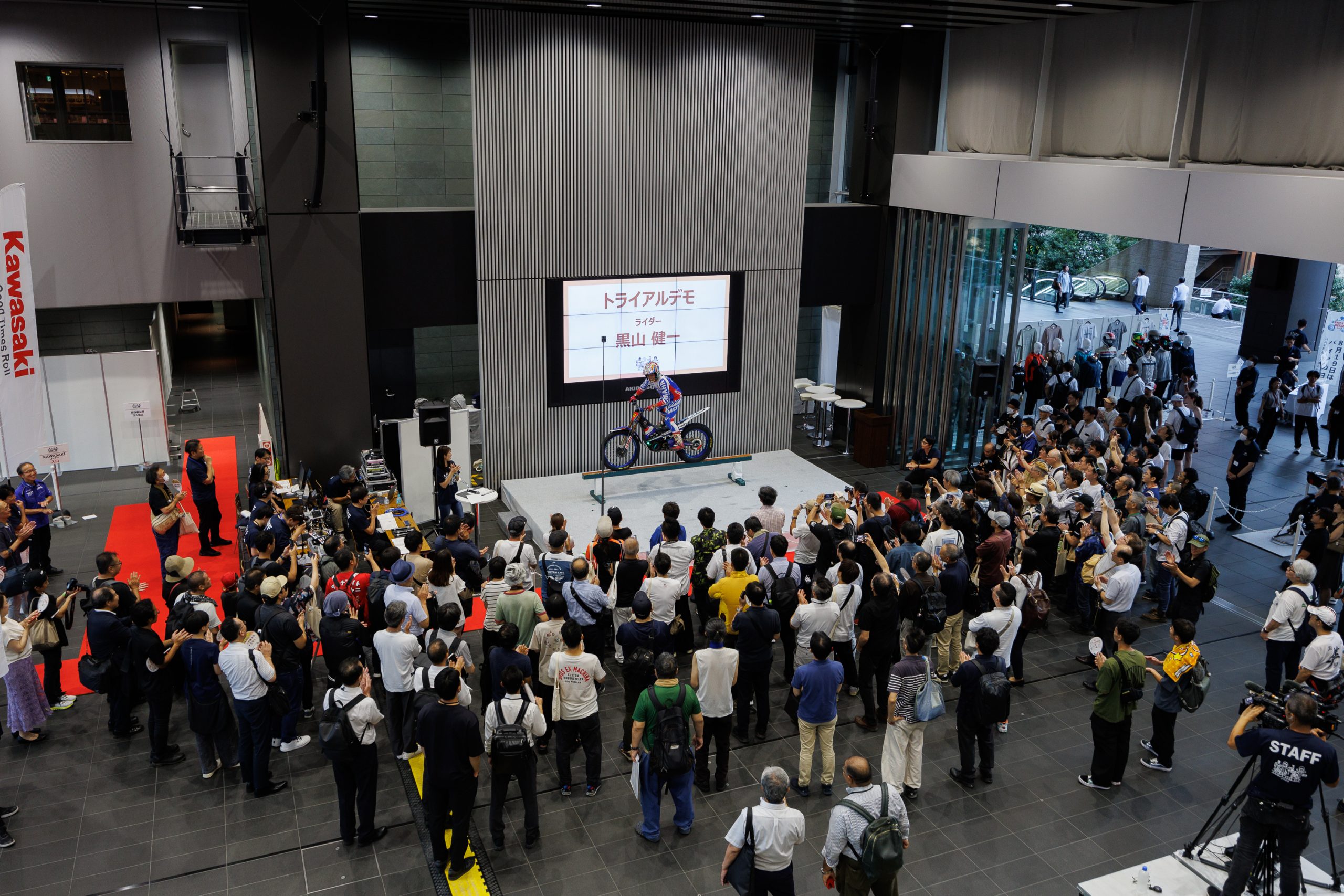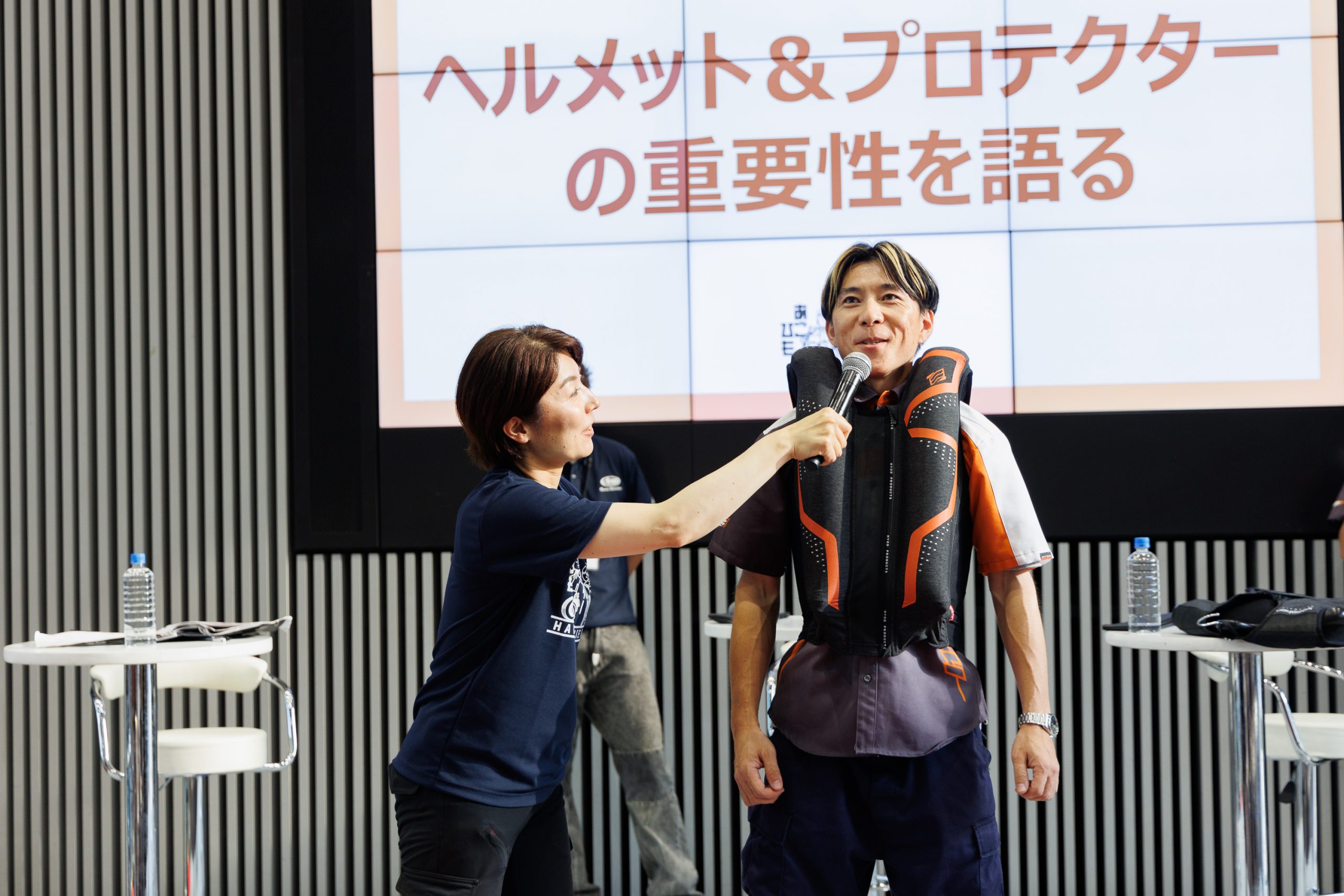 ステージでは安全啓発のイベントはもちろん、女性レーシングライダーやバイクタレントなどによるライダーのファッションをテーマにしたトークショー、クリエイター、ペインターによるヘルメットのカスタムペイントの実演、バイクに所縁のあるアーティストによる音楽ライブなど、様々な角度からバイク文化を訴求。さらに昨年に引き続き電動トライアルバイクによる華麗なトライアルデモもギャラリーの目前で披露され、バイクファンや潜在ユーザーはもちろん、道行く親子連れや外国人観光客、さらには今回初めて夜20時までの開催となったことで、仕事帰りのビジネスパーソンが多く訪れるなど約2400人の来場者にバイクの魅力を体験いただきました。