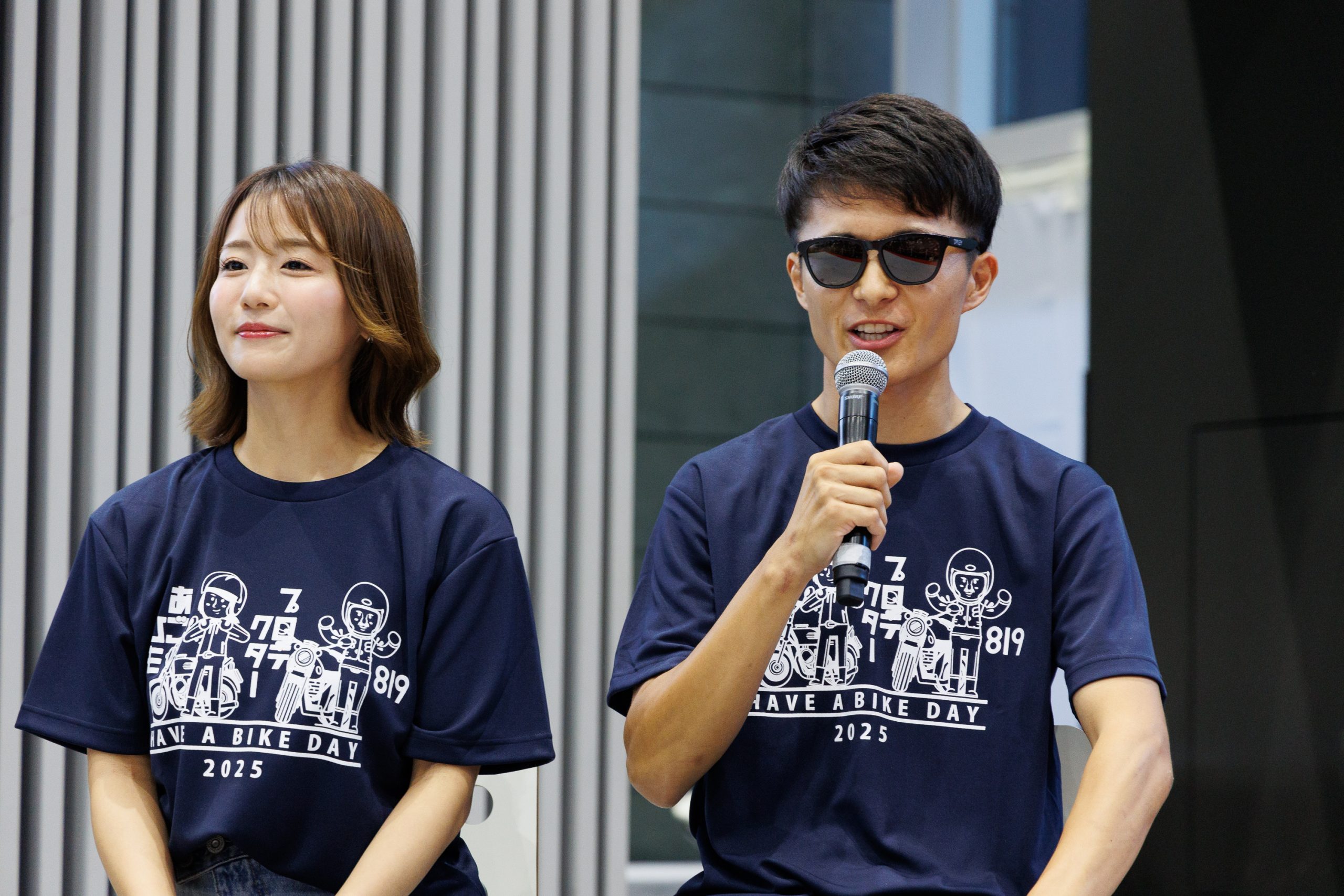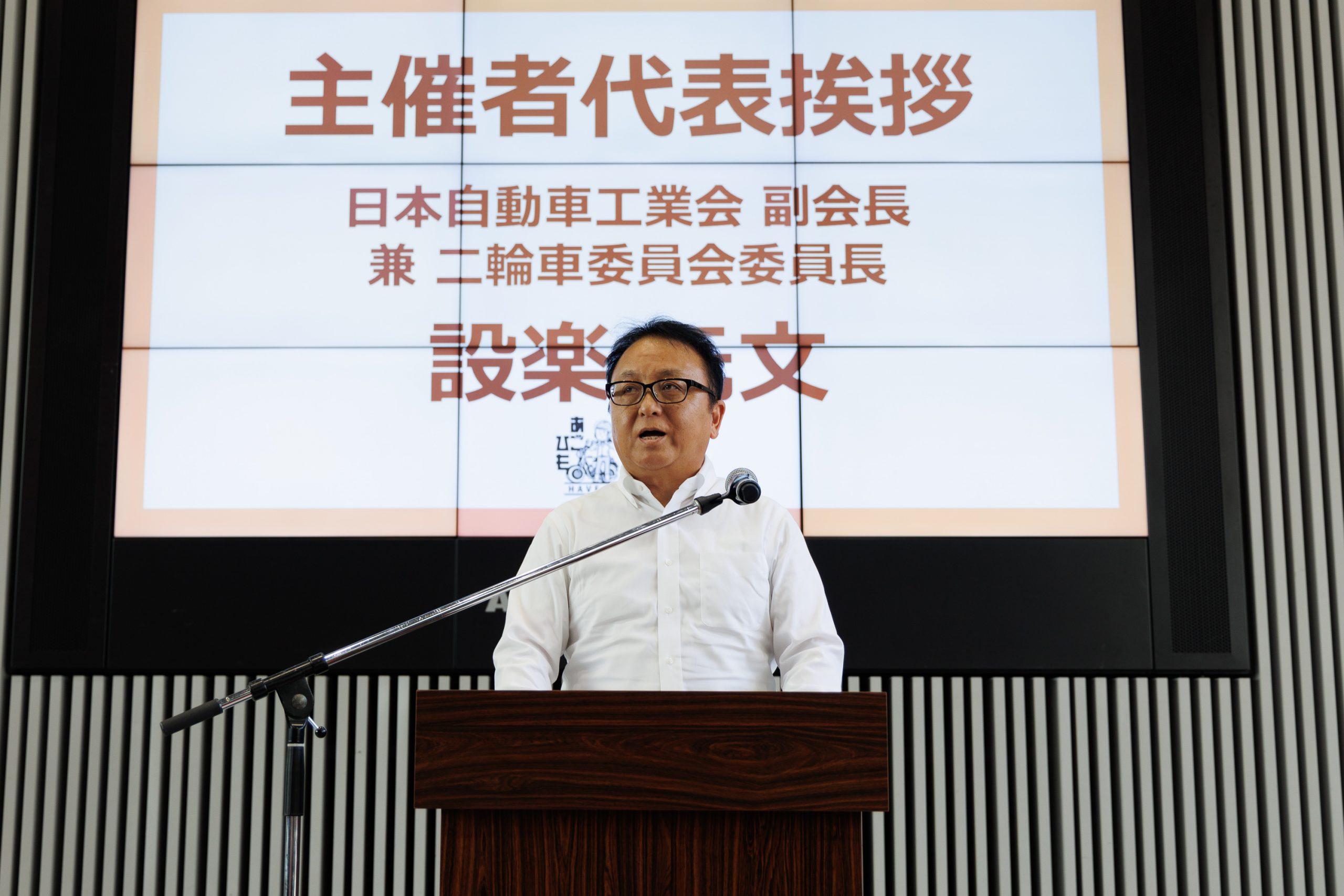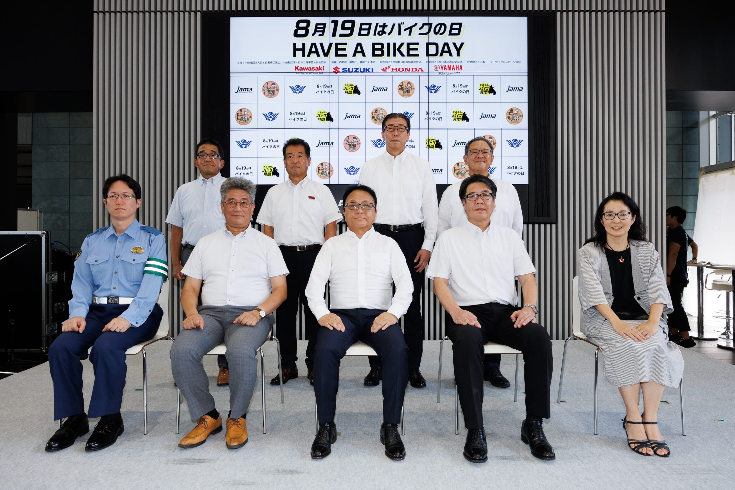 今年も全国各地で猛暑日が続く厳しい暑さとなっておりますが、本日は非常に暑い中「8月19日はバイクの日 HAVE A BIKE DAY」にご参加いただきありがとうございます。また、本イベントにご後援を賜ります、内閣府、警察庁、警視庁交通部、一般財団法人全日本交通安全協会、一般社団法人全国軽自動車協会連合会、一般財団法人日本モーターサイクルスポーツ協会の皆さまには、厚く御礼申し上げます。