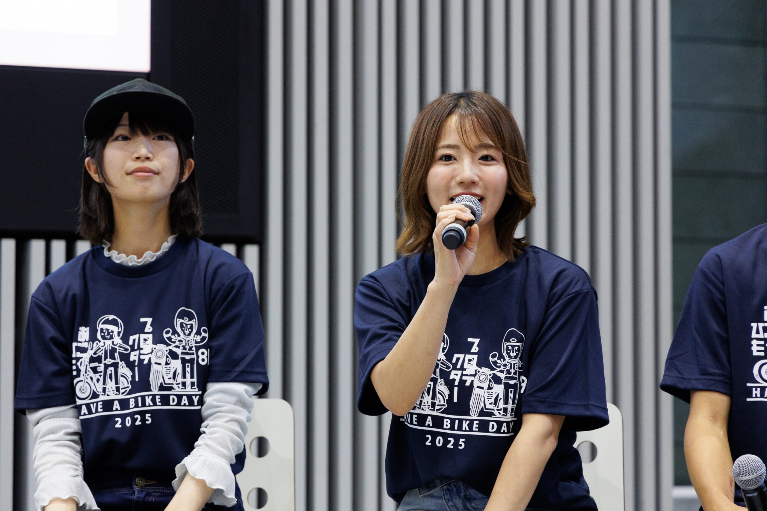 「バイクの日」は1989年に、内閣府が交通事故撲滅を目的に制定したものです。バイクの日を中心に7月から9月のバイク月間期間中には、二輪車業界だけでなく、さまざまな自治体や警察署が二輪車の有用性や、交通安全啓発を訴求するイベントを全国で実施しています。本日は警視庁クイーンスターズの皆さんからの安全運転に関するお願いをはじめ、さまざまなステージイベントをご用意しております。例年と違い今年はお仕事帰りの方にも「バイクの日」を楽しんでいただきたいとの思いで20時まで開催時間を設けております。