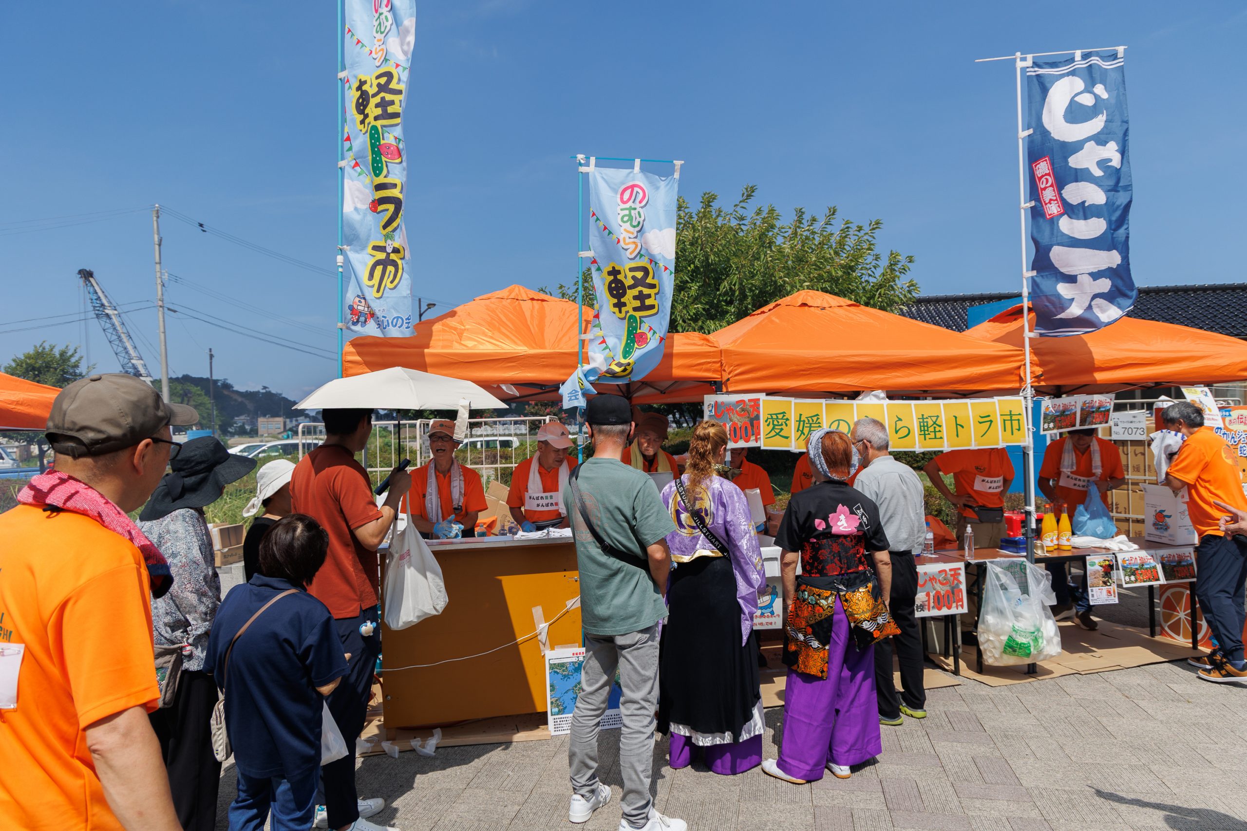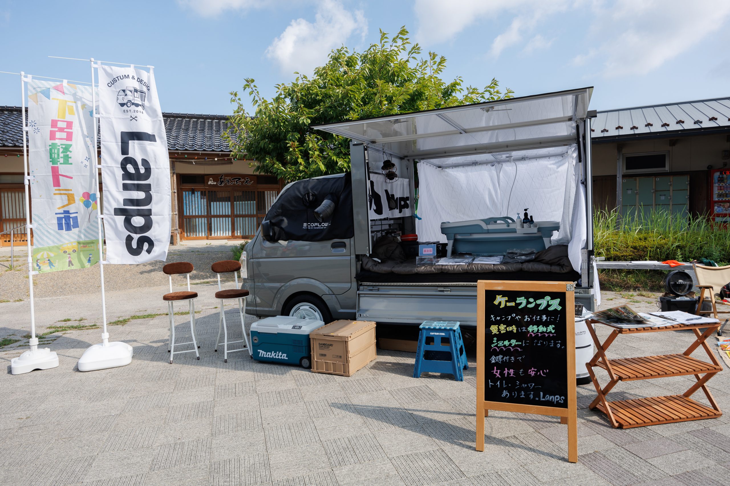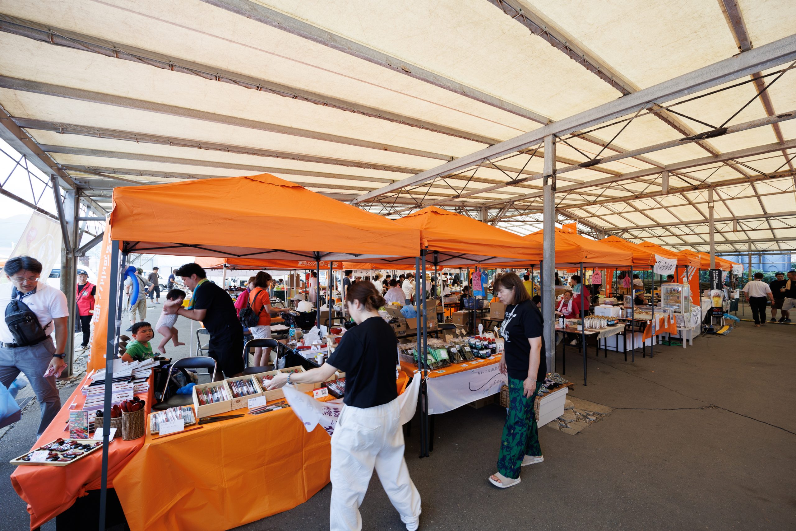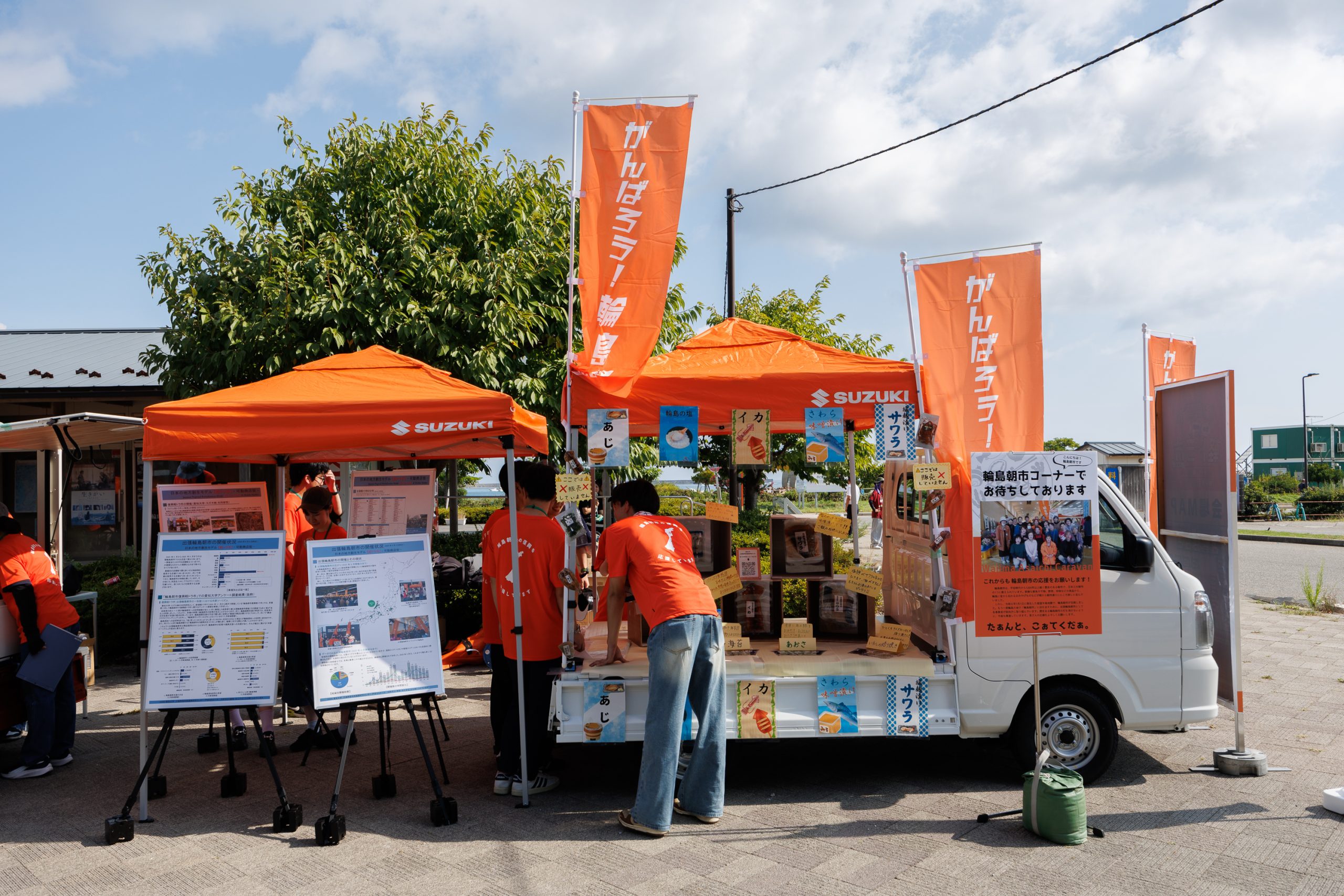 朝市通りの復興はまだ完了していませんが、輪島朝市の1,200年の歴史を守ろうと地元の「輪島市朝市組合」が行っているのが「出張輪島朝市」です。出張輪島朝市では、輪島朝市の皆さんが、輪島市内だけでなく全国各地に出向いて、伝統工芸品や特産物等を販売を行う取り組みで、今回は輪島市内の特設会場にて全国軽トラ市団体連合会とともに、「復興輪島朝市×全国軽トラ市in輪島」として、輪島朝市の約30店と全国各地の軽トラ市からの17台によるイベントを開催しました。