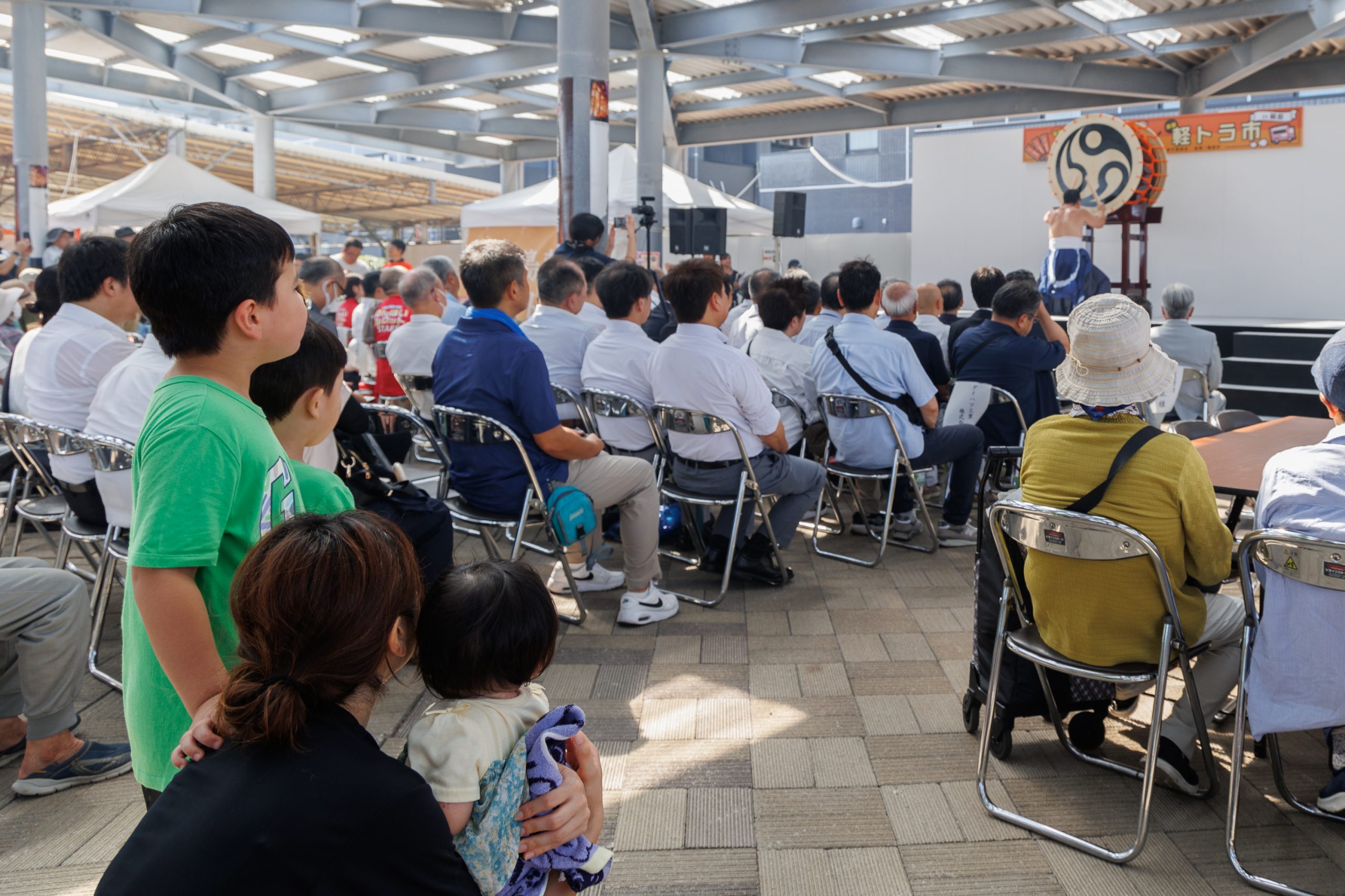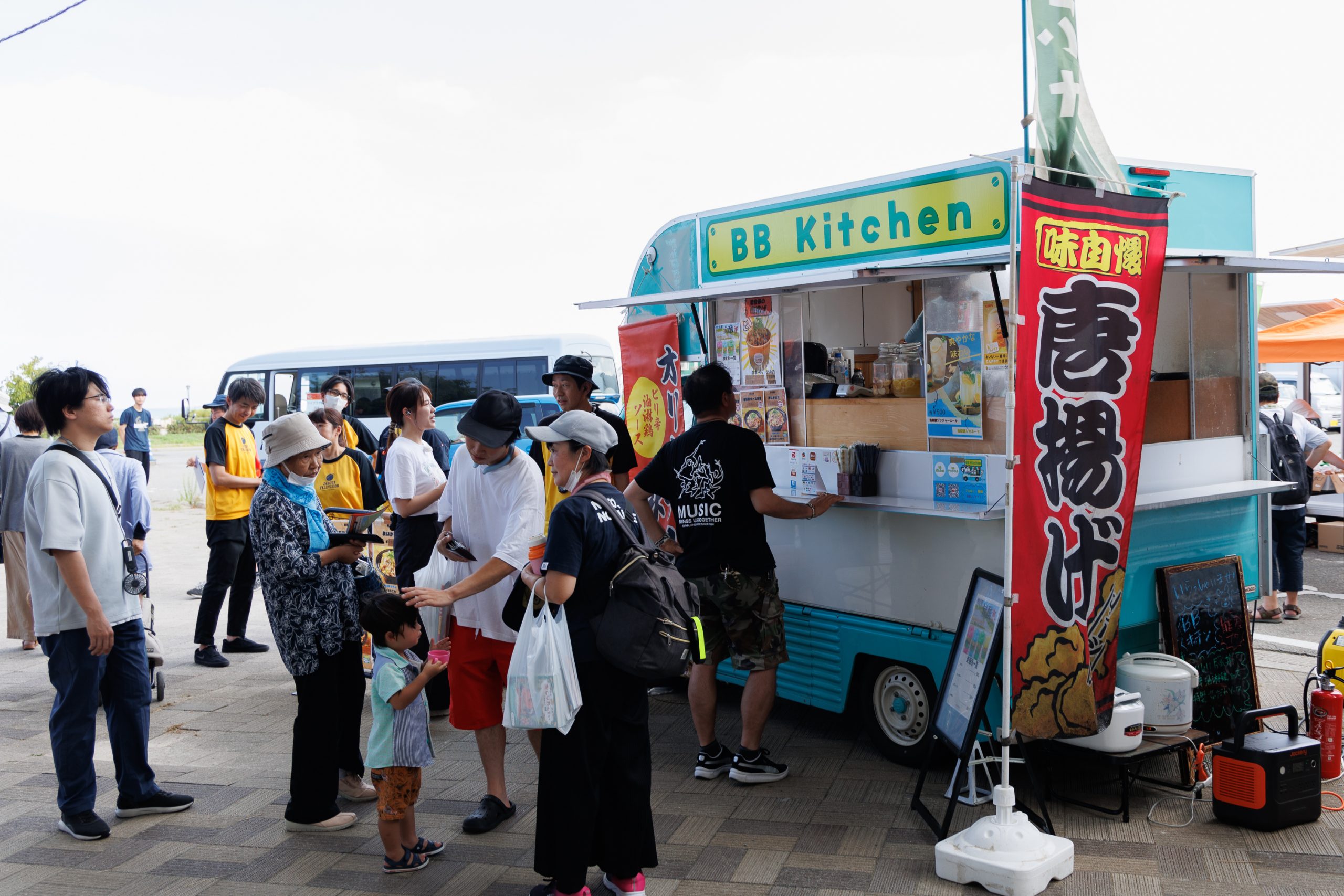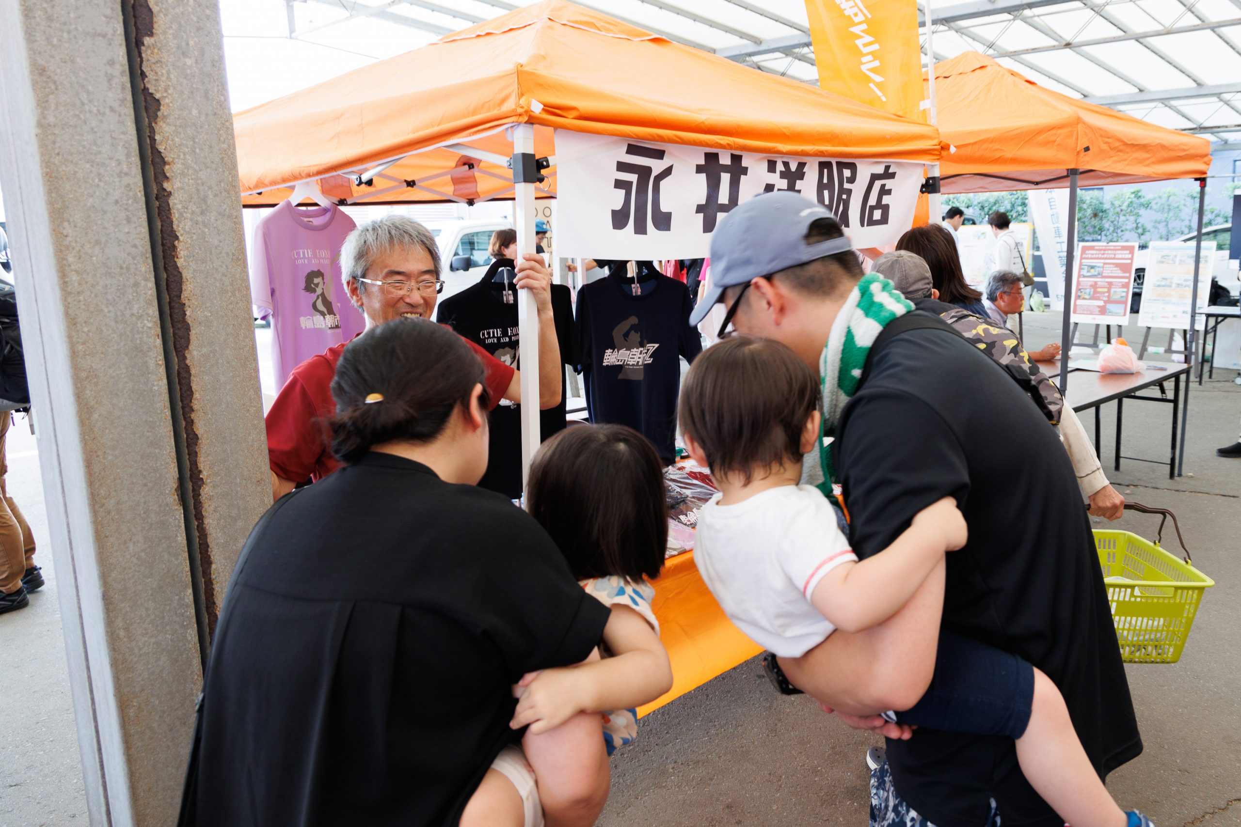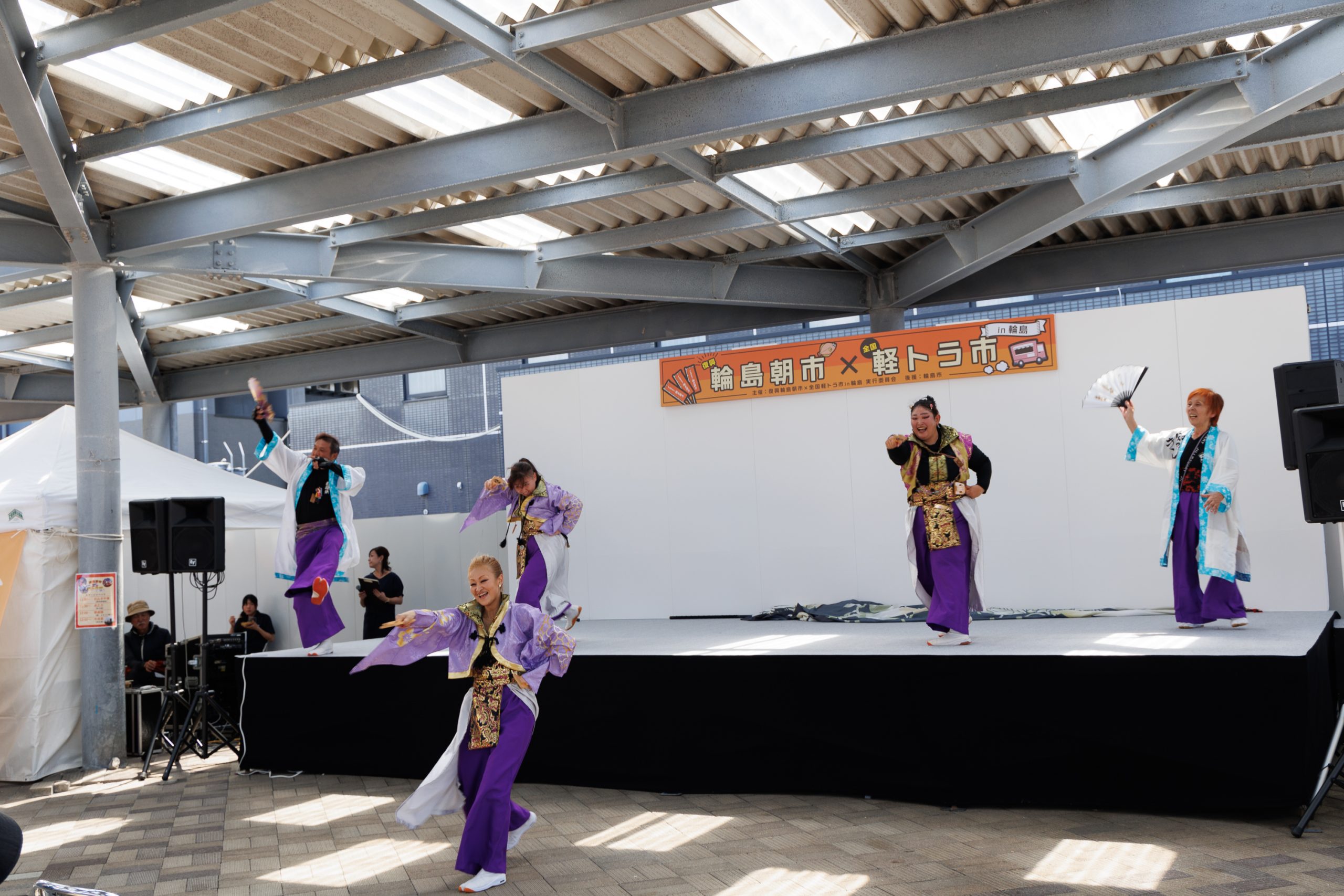 朝市通りの復興はまだ完了していませんが、輪島朝市の1,200年の歴史を守ろうと地元の「輪島市朝市組合」が行っているのが「出張輪島朝市」です。出張輪島朝市では、輪島朝市の皆さんが、輪島市内だけでなく全国各地に出向いて、伝統工芸品や特産物等を販売を行う取り組みで、今回は輪島市内の特設会場にて全国軽トラ市団体連合会とともに、「復興輪島朝市×全国軽トラ市in輪島」として、輪島朝市の約30店と全国各地の軽トラ市からの17台によるイベントを開催しました。