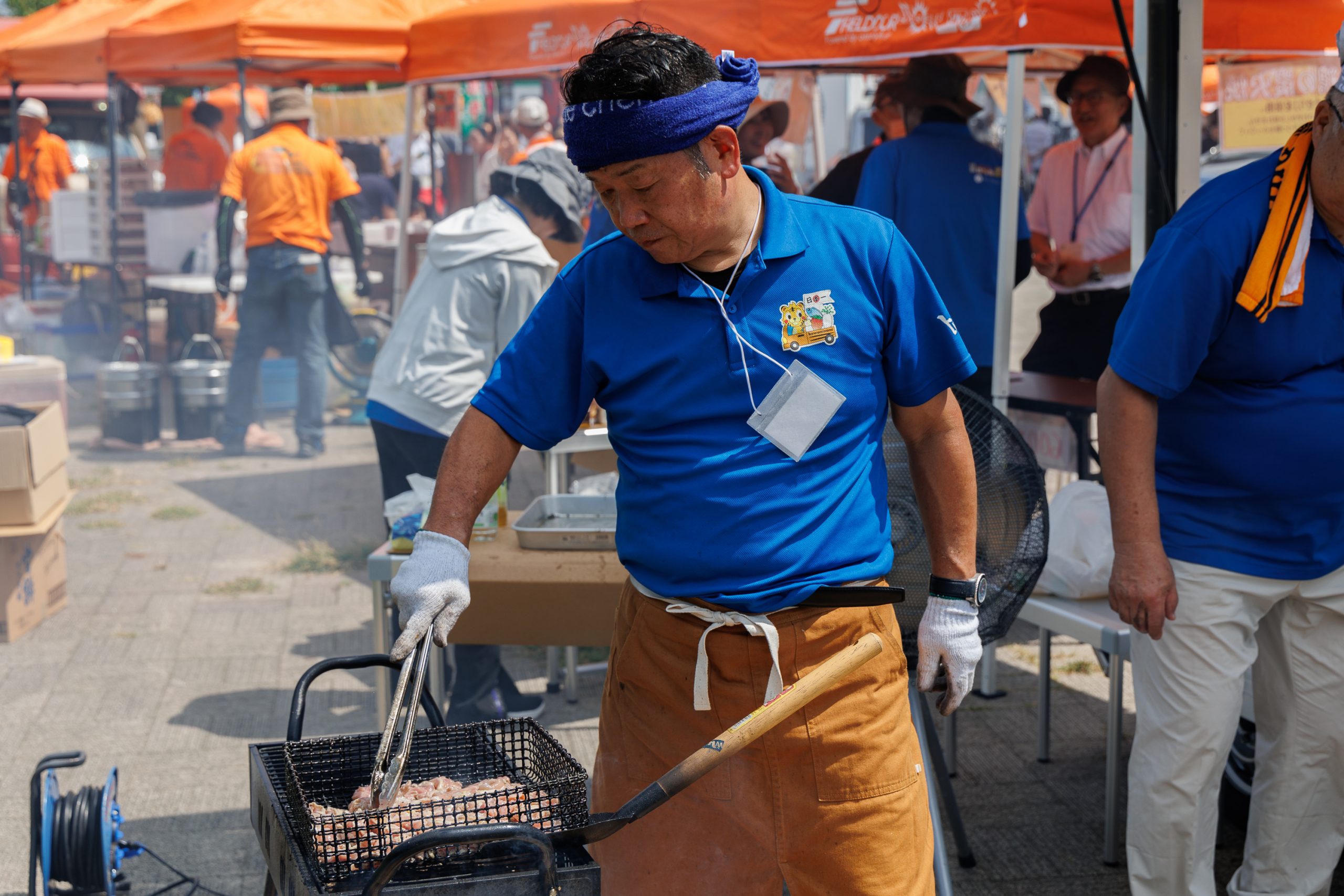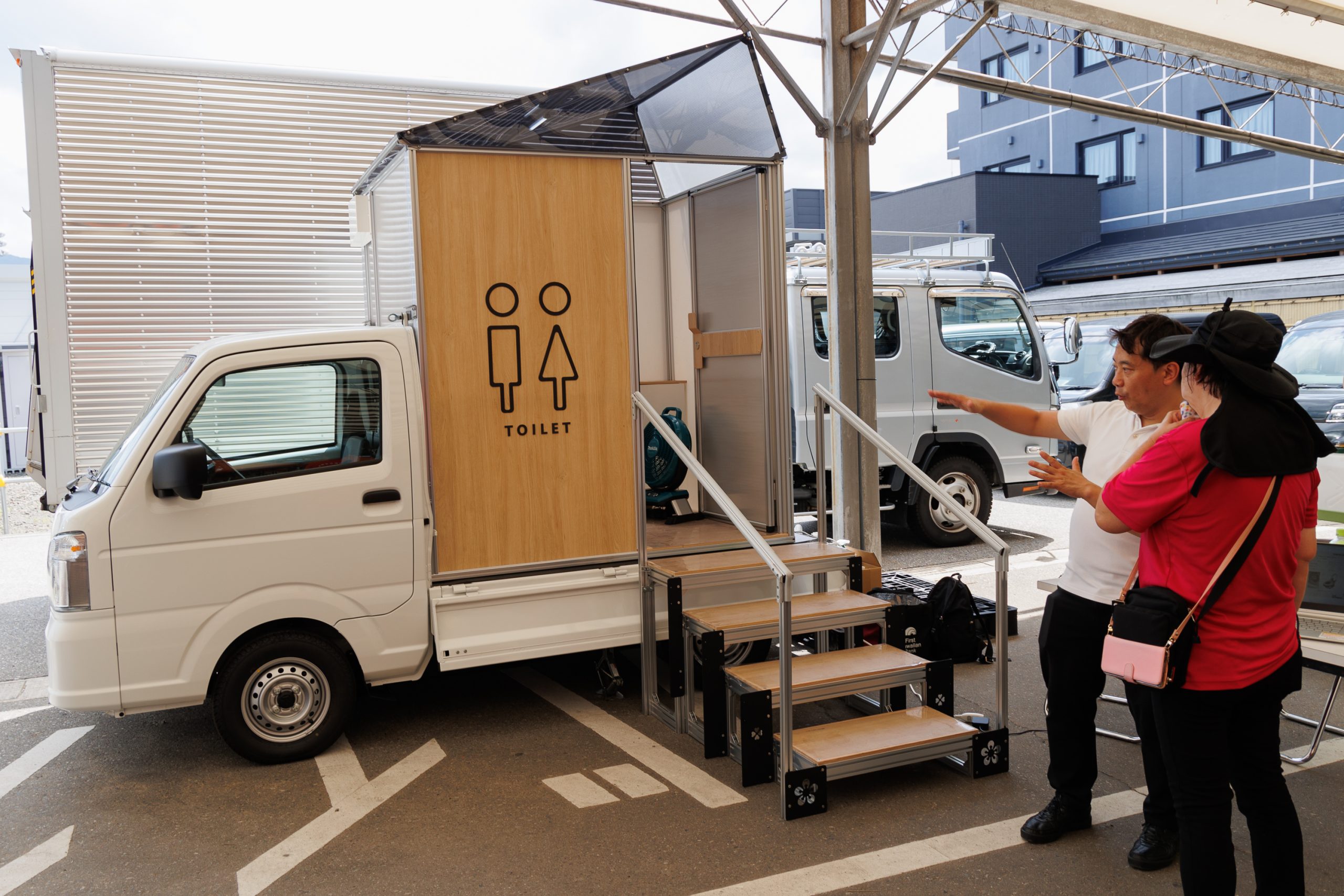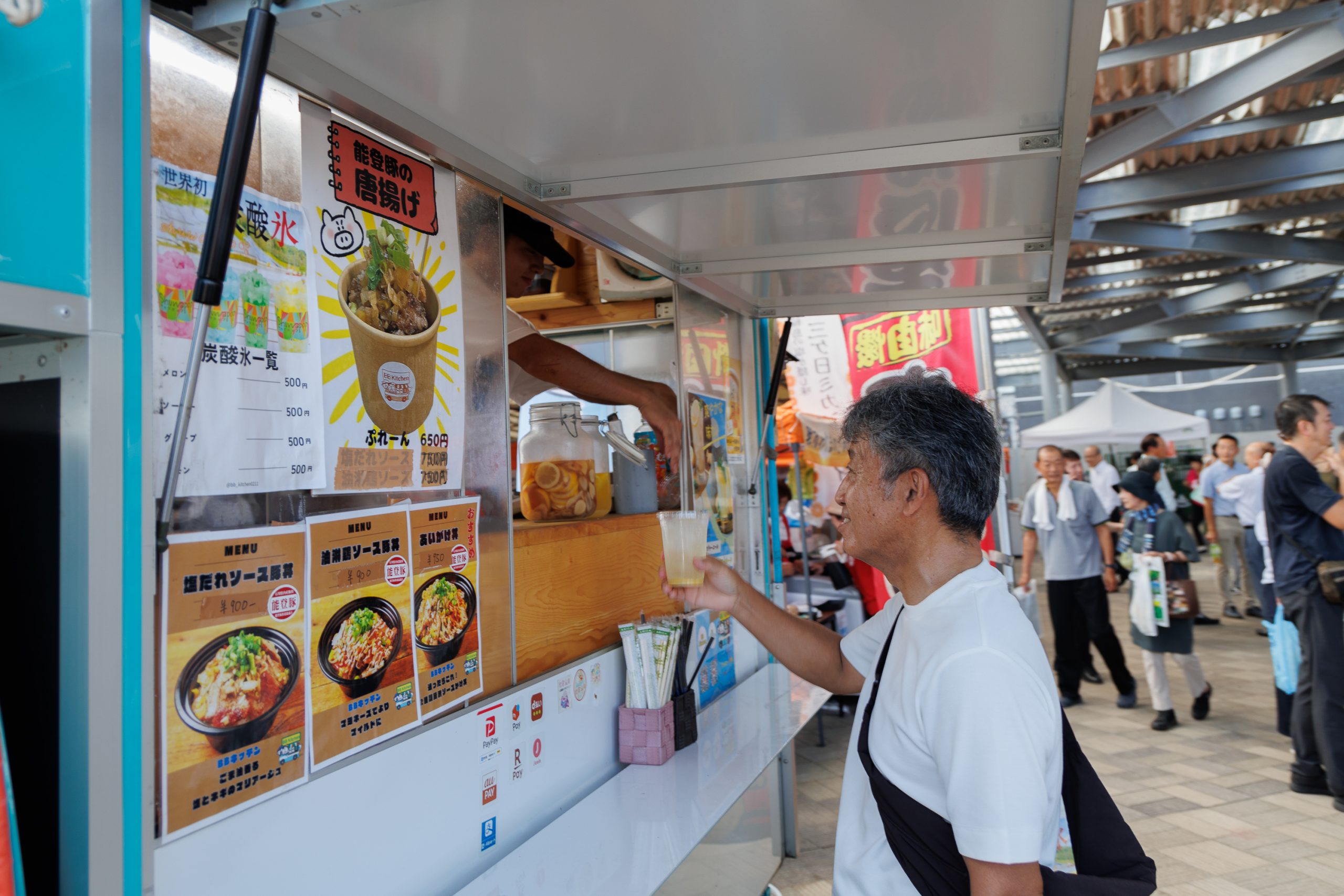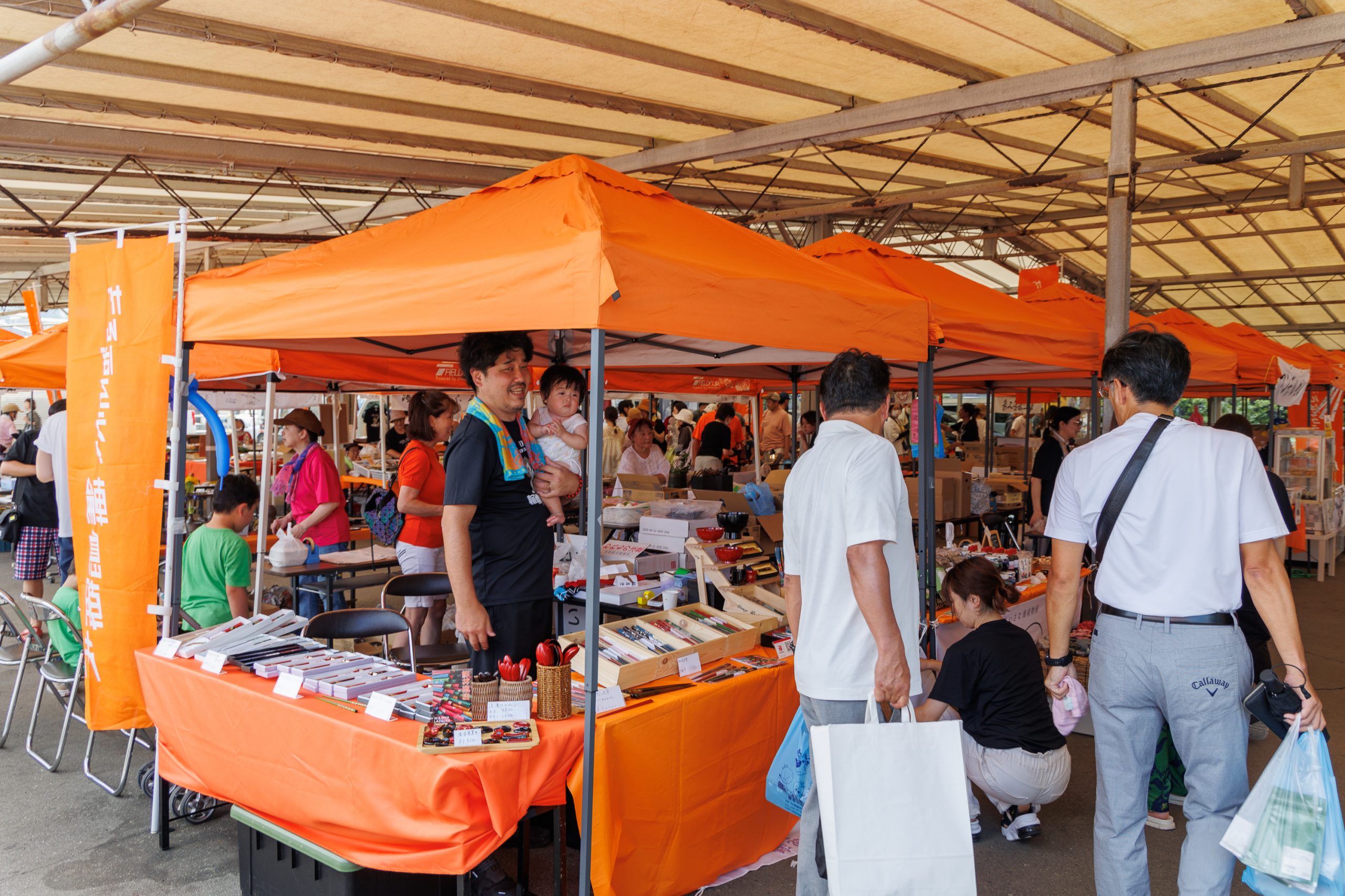 朝市通りの復興はまだ完了していませんが、輪島朝市の1,200年の歴史を守ろうと地元の「輪島市朝市組合」が行っているのが「出張輪島朝市」です。出張輪島朝市では、輪島朝市の皆さんが、輪島市内だけでなく全国各地に出向いて、伝統工芸品や特産物等を販売を行う取り組みで、今回は輪島市内の特設会場にて全国軽トラ市団体連合会とともに、「復興輪島朝市×全国軽トラ市in輪島」として、輪島朝市の約30店と全国各地の軽トラ市からの17台によるイベントを開催しました。