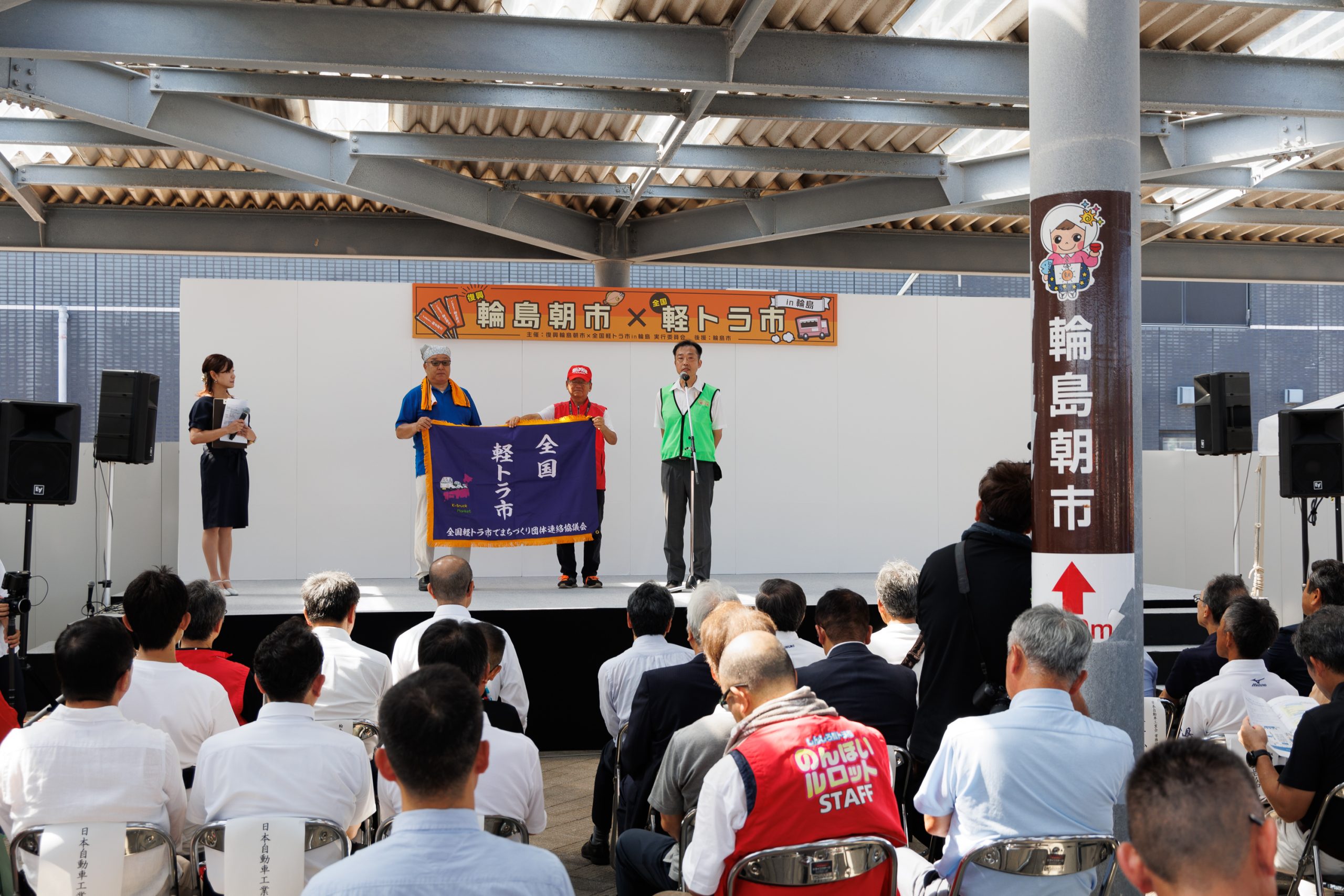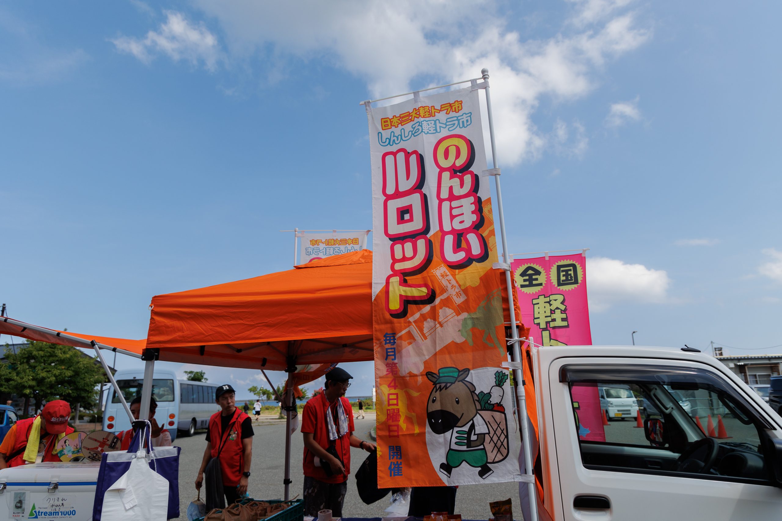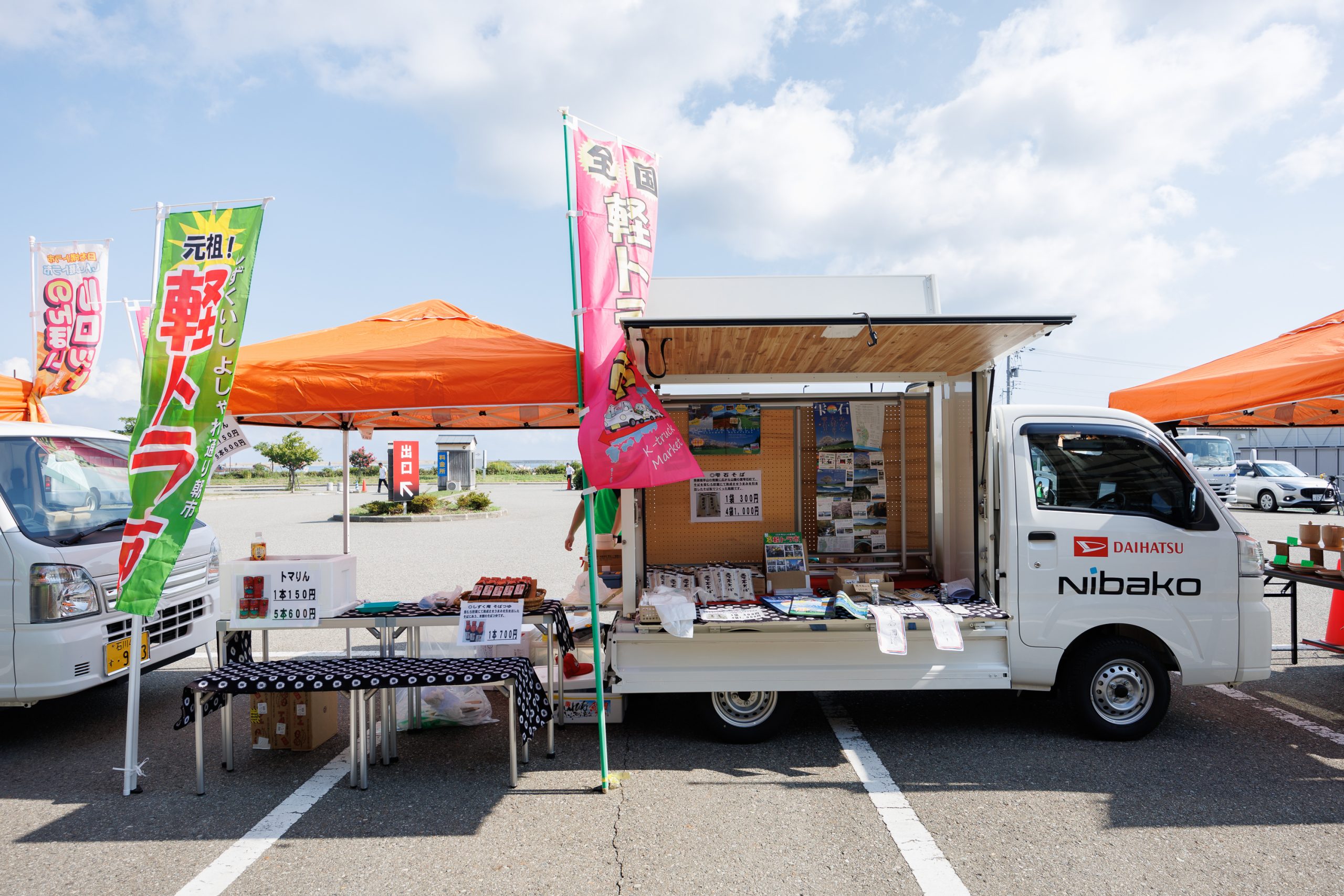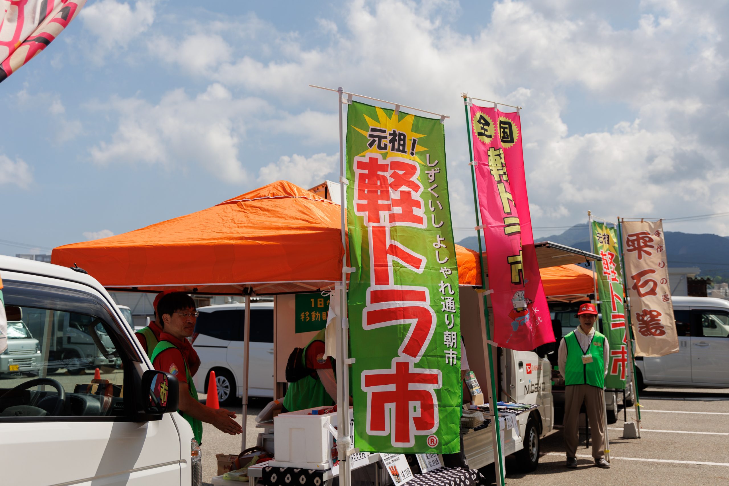 「軽トラ市」とは、軽トラックの荷台に特産品やグルメ、雑貨などを陳列して即売を行う催しで、街おこしや地域振興策として全国各地で開催されています。このうち地元だけでなく、日本全国から出店者が集まる大規模な「全国軽トラ市」がおよそ年に1回開催されており、今年は前述の震災からの復興支援を目的として、輪島朝市と共催という形での開催が決まりました。