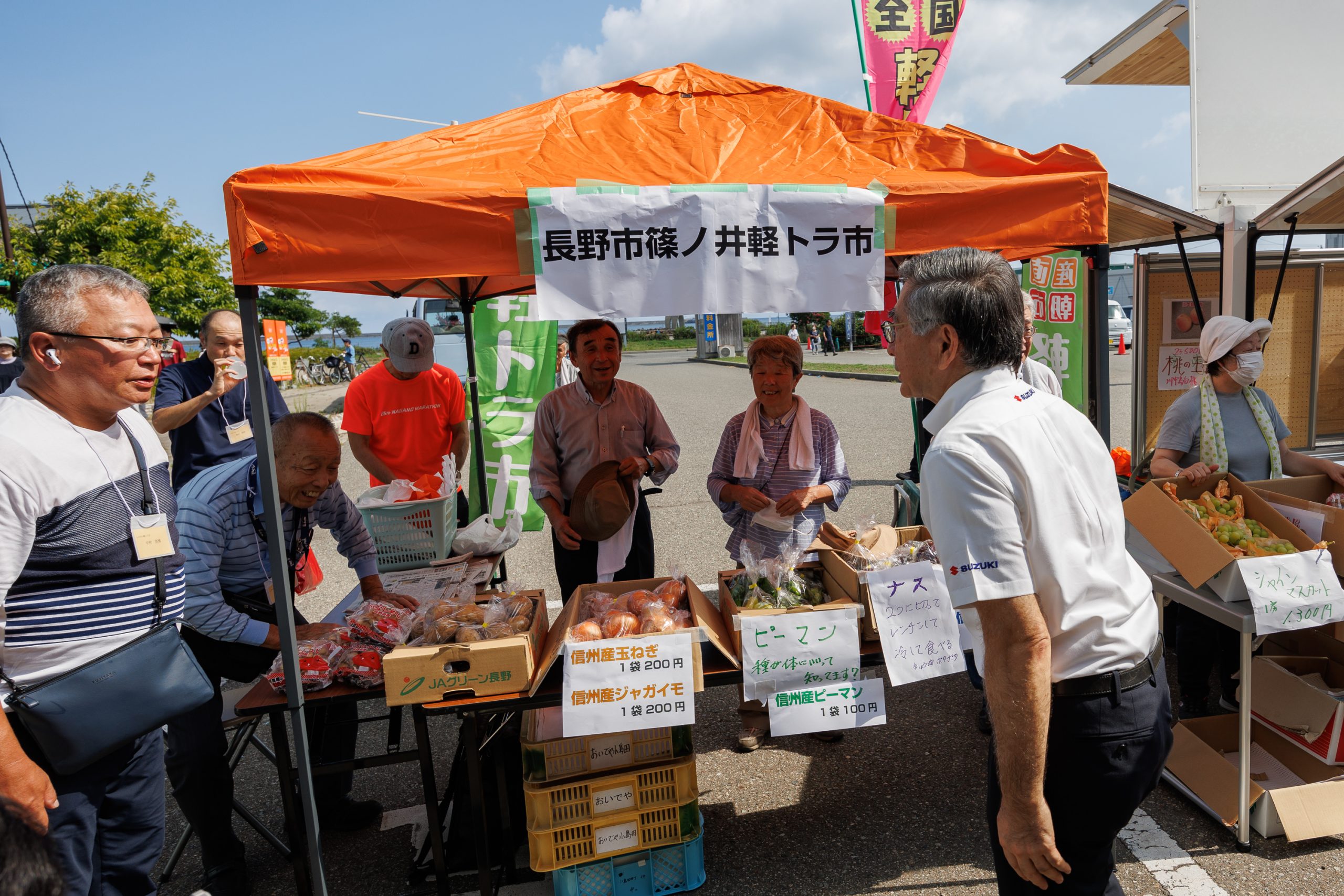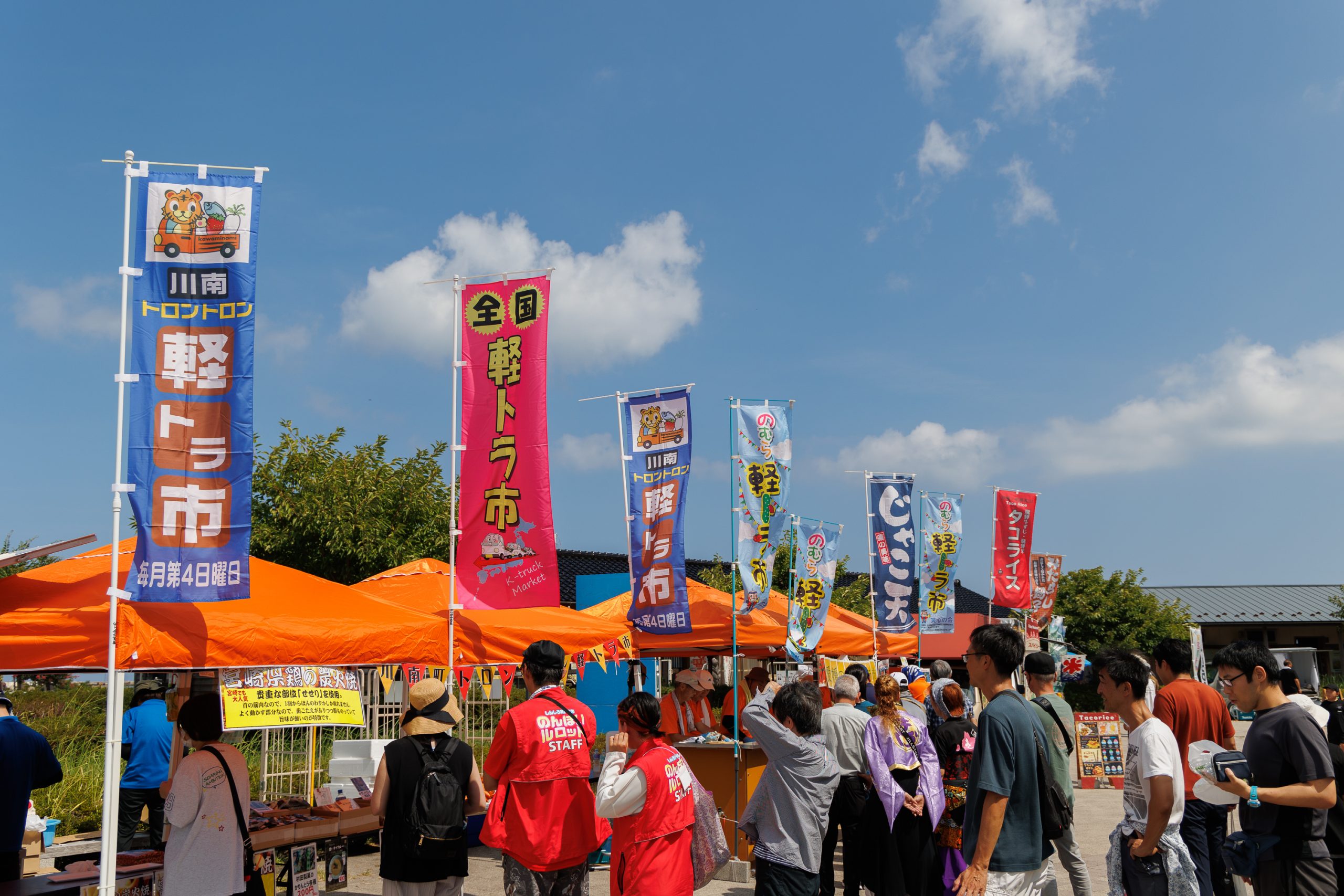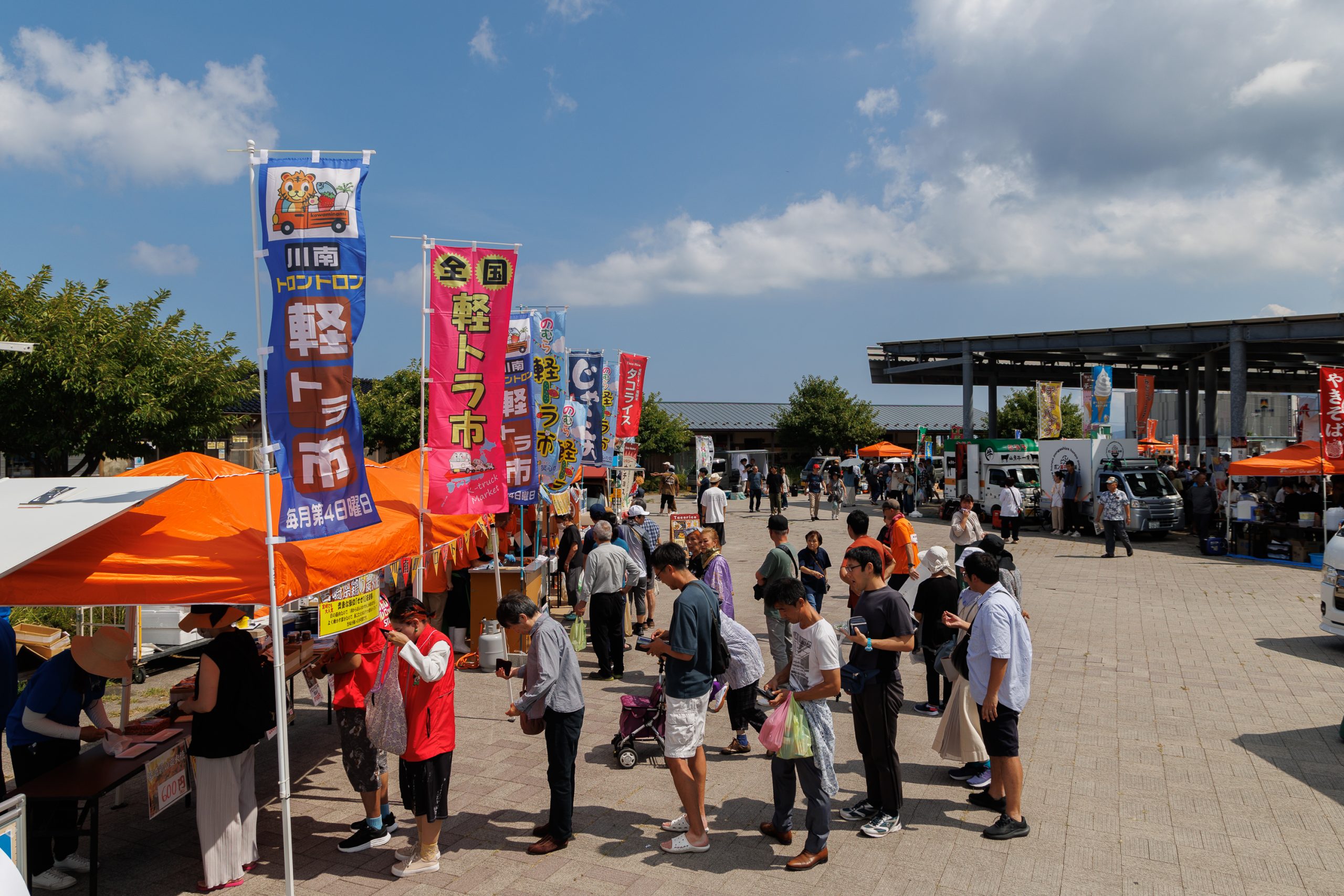 「軽トラ市」とは、軽トラックの荷台に特産品やグルメ、雑貨などを陳列して即売を行う催しで、街おこしや地域振興策として全国各地で開催されています。このうち地元だけでなく、日本全国から出店者が集まる大規模な「全国軽トラ市」がおよそ年に1回開催されており、今年は前述の震災からの復興支援を目的として、輪島朝市と共催という形での開催が決まりました。