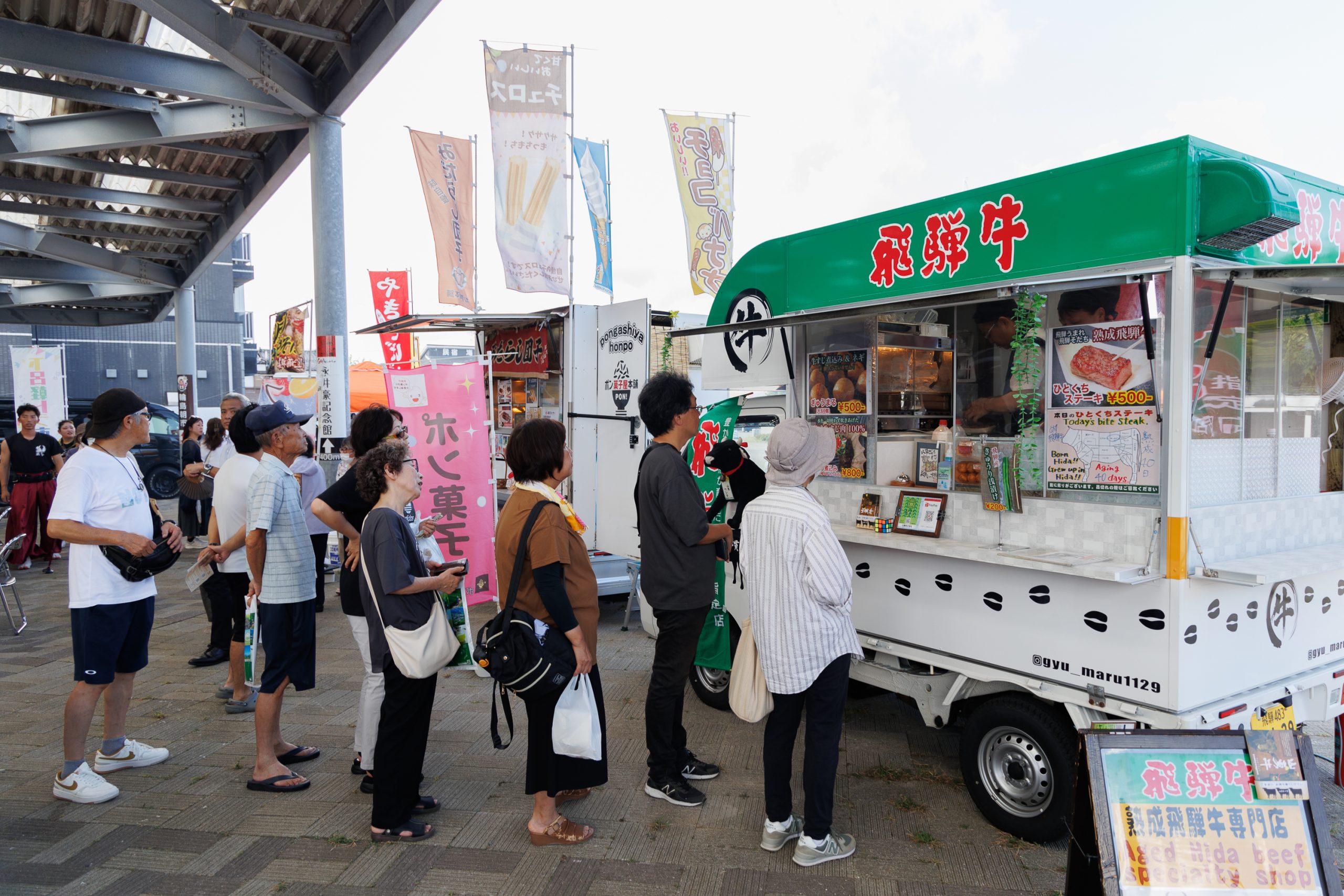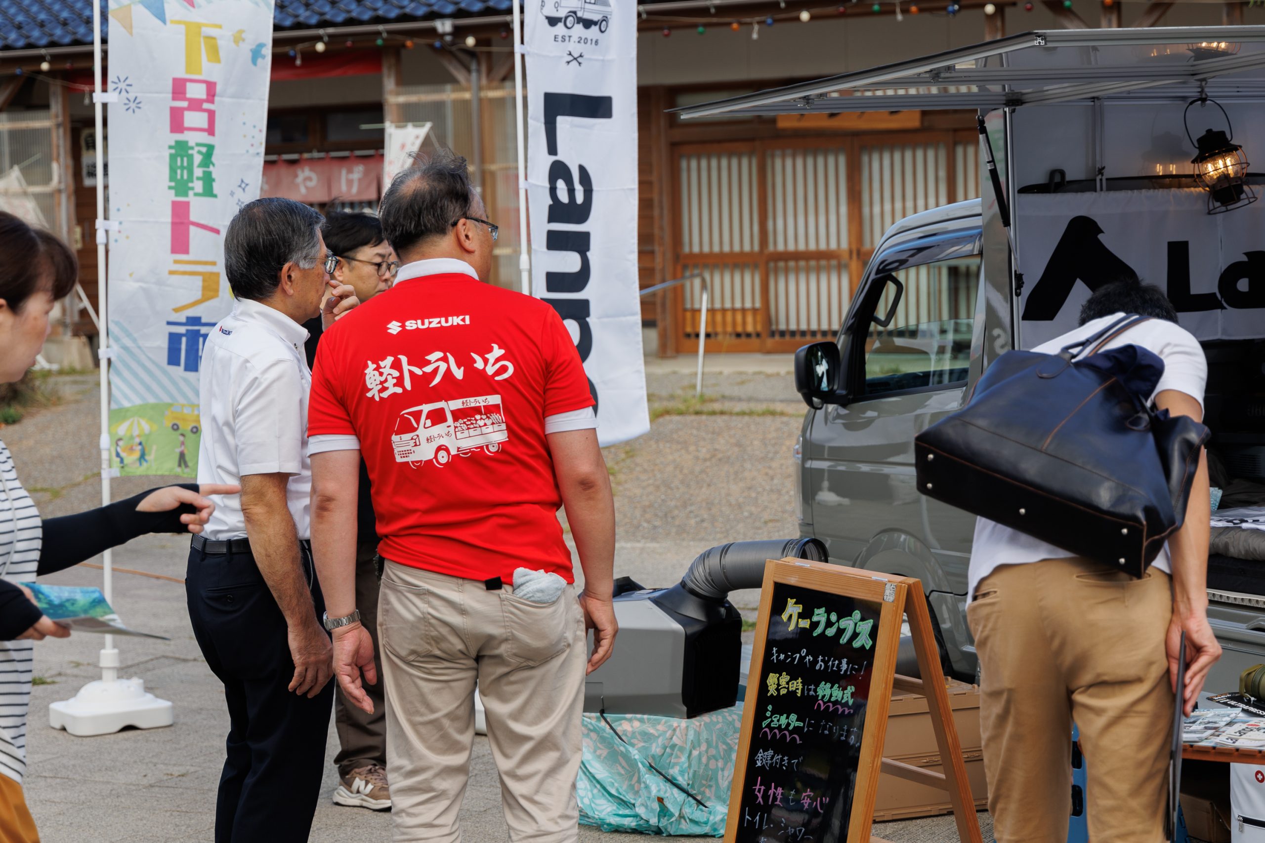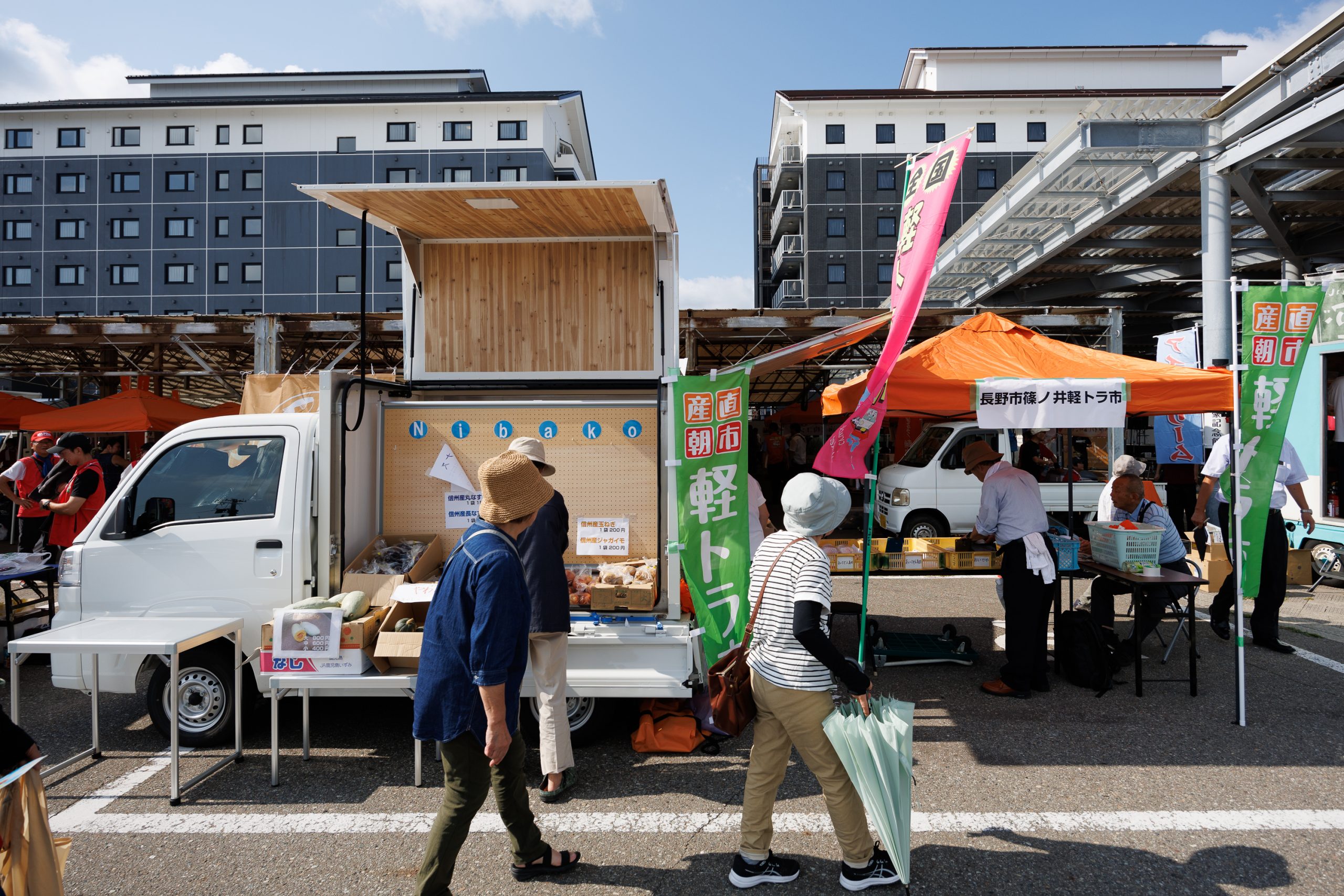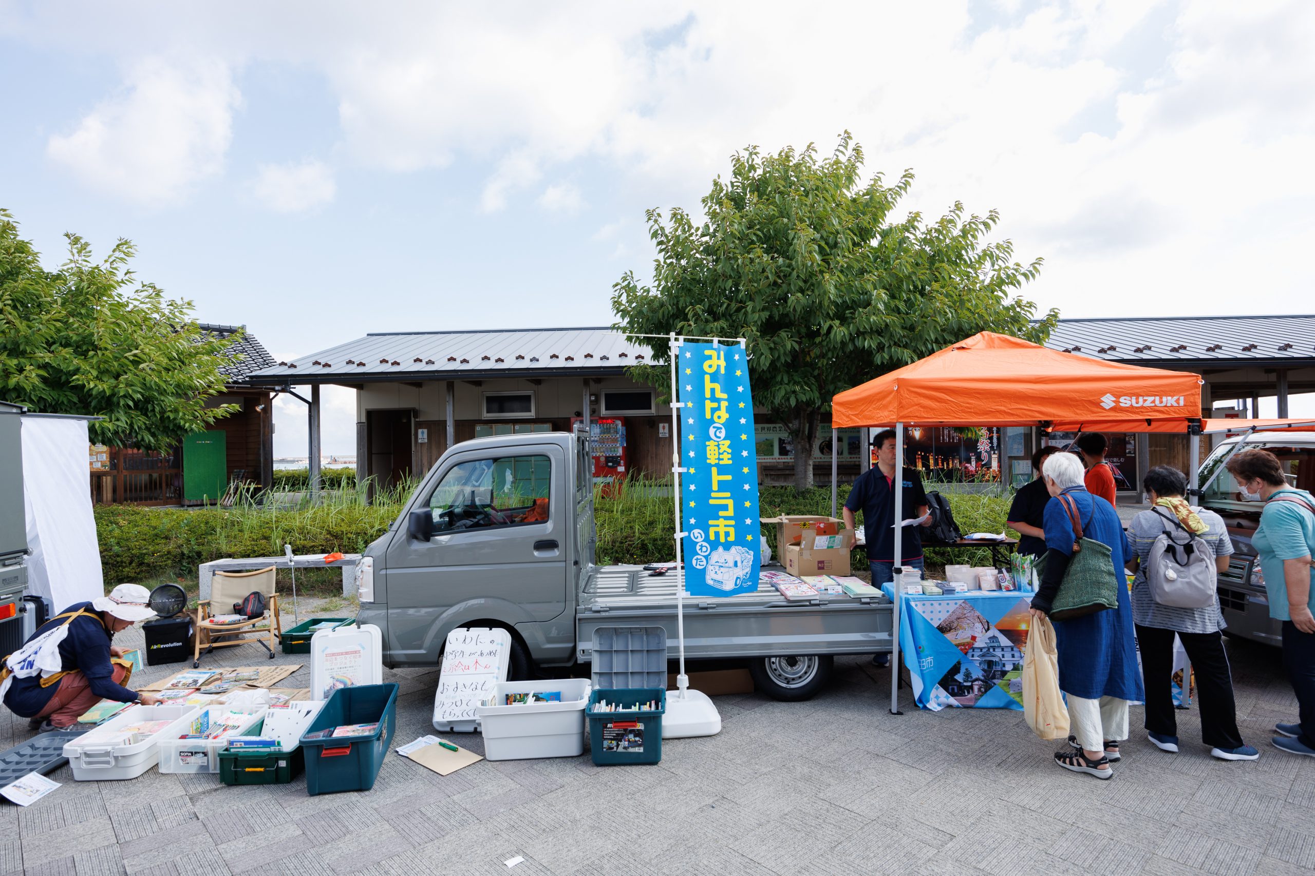 「軽トラ市」とは、軽トラックの荷台に特産品やグルメ、雑貨などを陳列して即売を行う催しで、街おこしや地域振興策として全国各地で開催されています。このうち地元だけでなく、日本全国から出店者が集まる大規模な「全国軽トラ市」がおよそ年に1回開催されており、今年は前述の震災からの復興支援を目的として、輪島朝市と共催という形での開催が決まりました。
