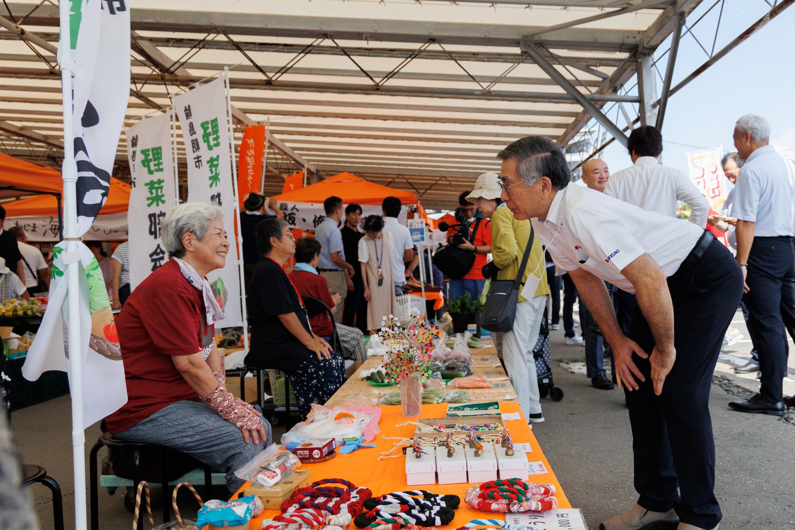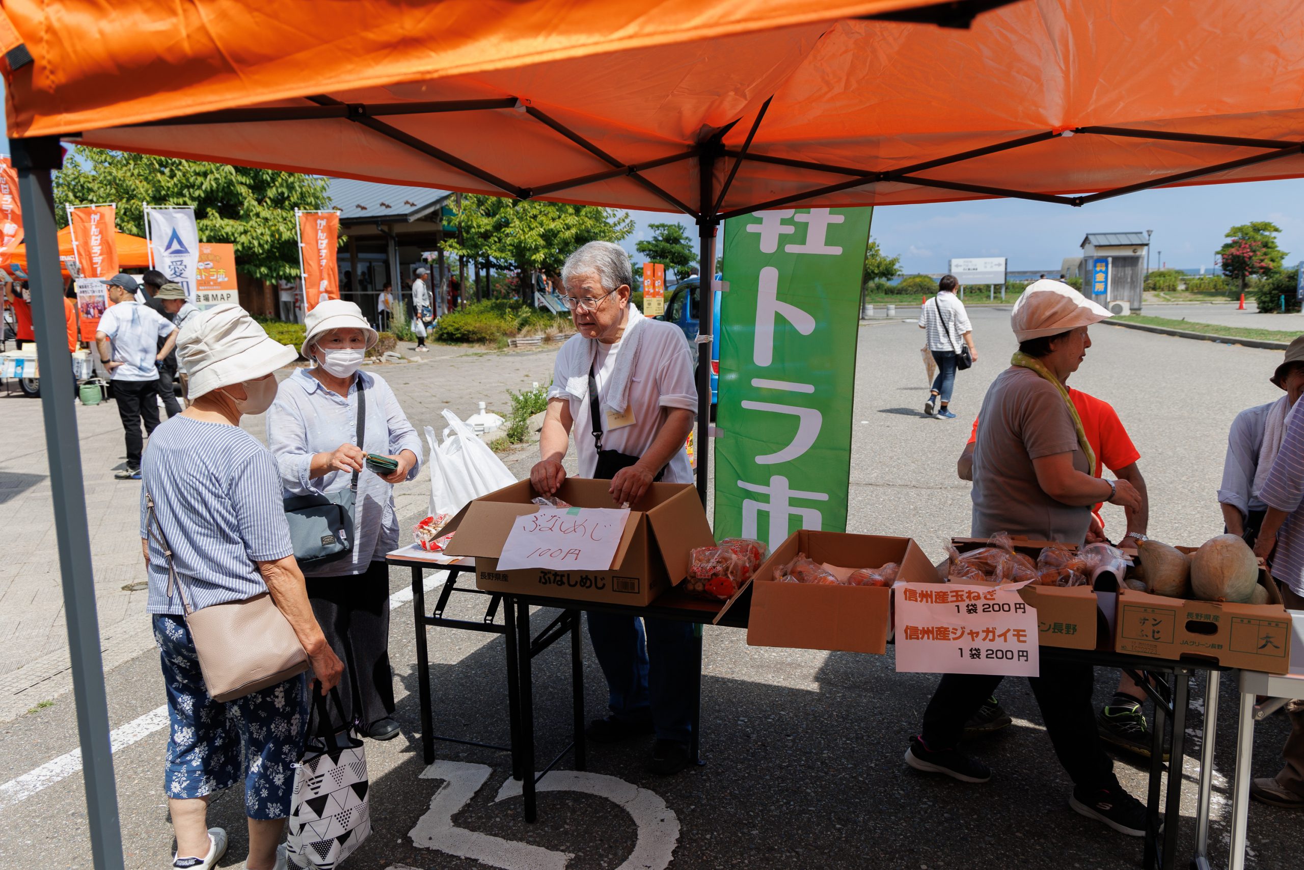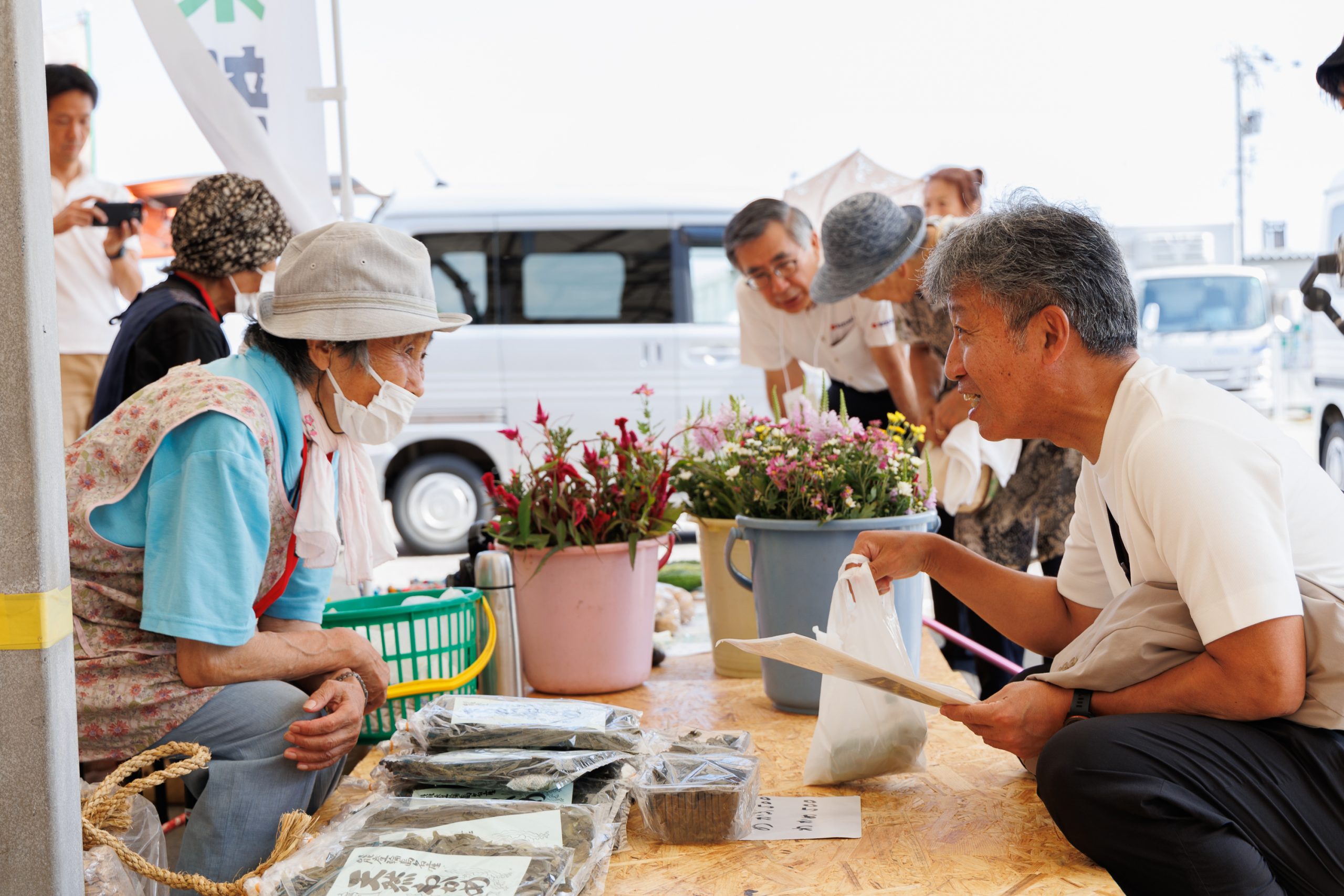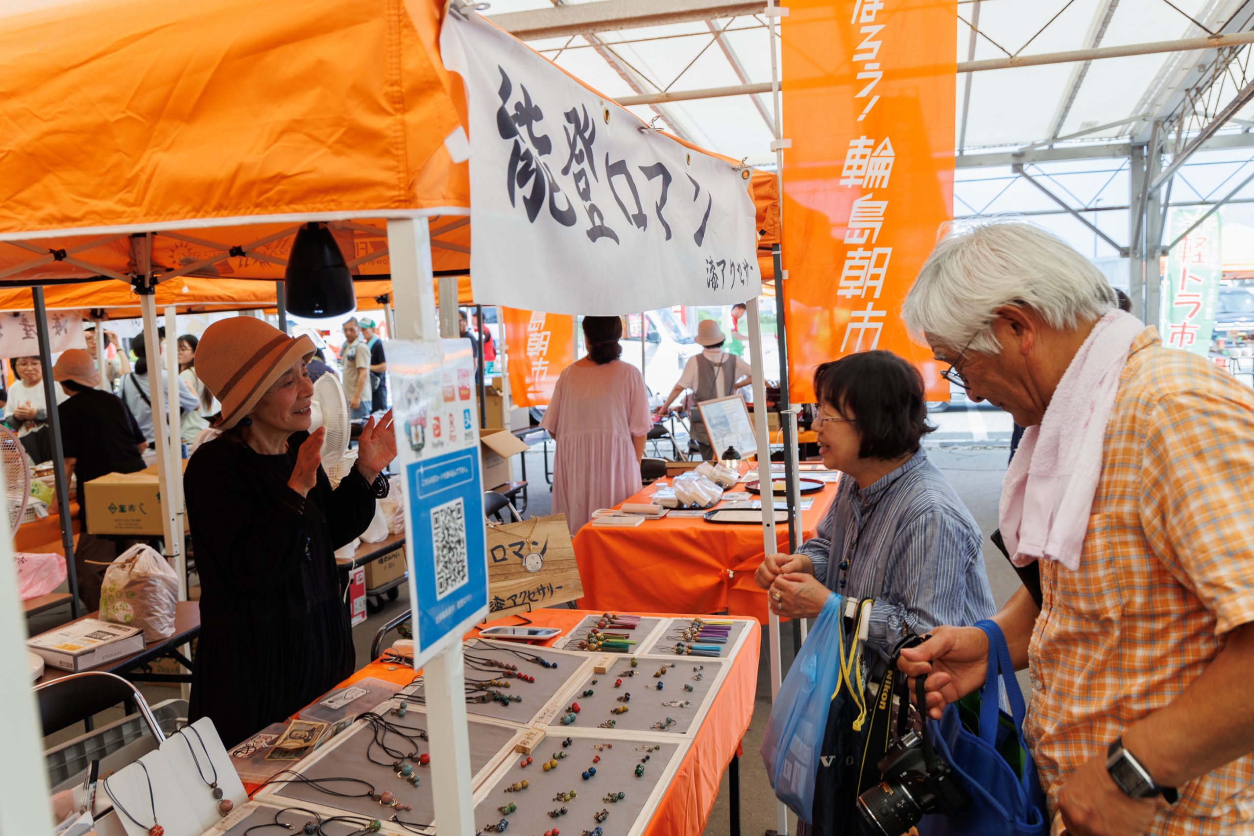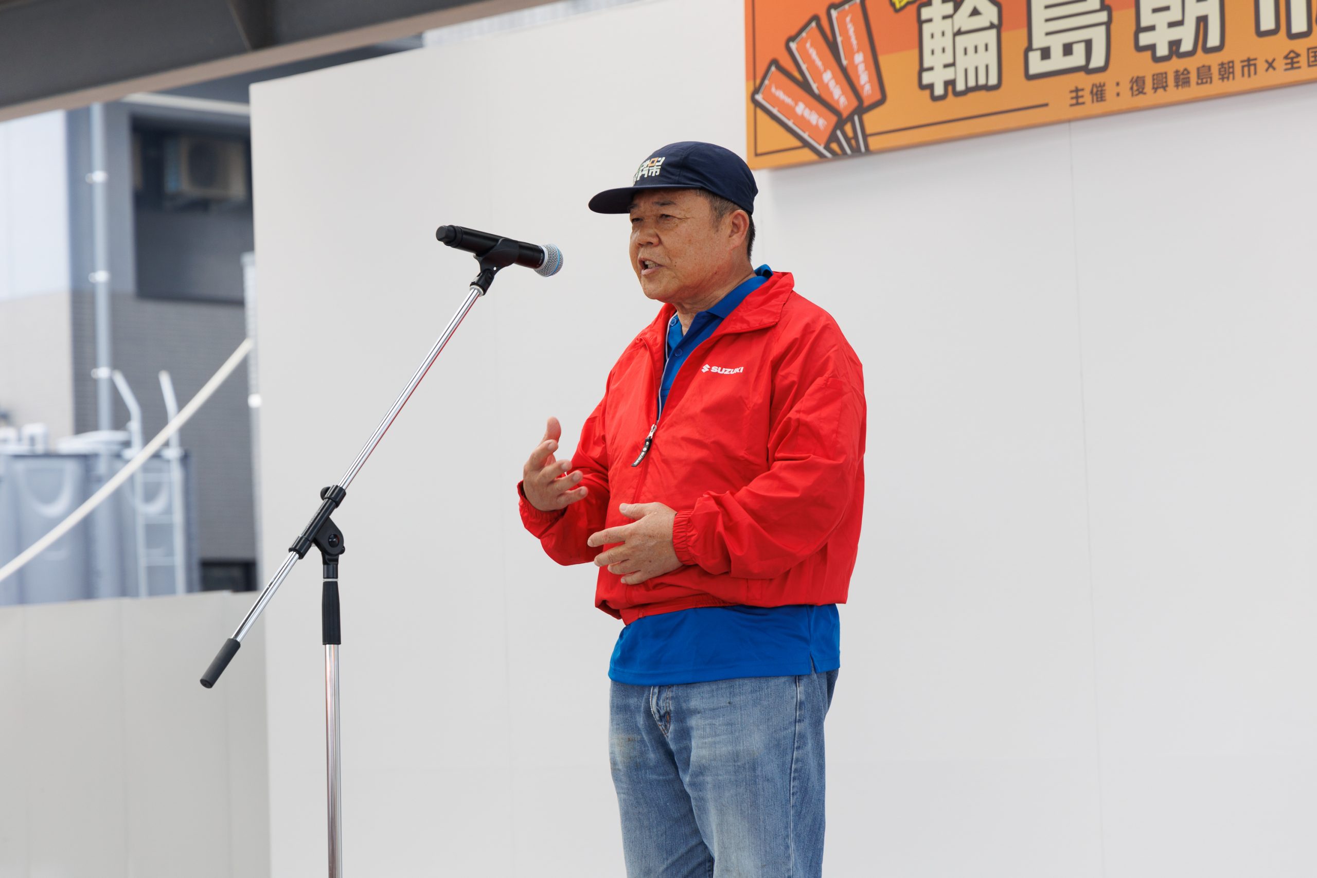 輪島の朝市は人と人との触れ合いを非常に大切にしている、これは軽トラ市も一緒なんだけど。早く復興してもらえるといいな、応援できないかなという思いで来ました。
