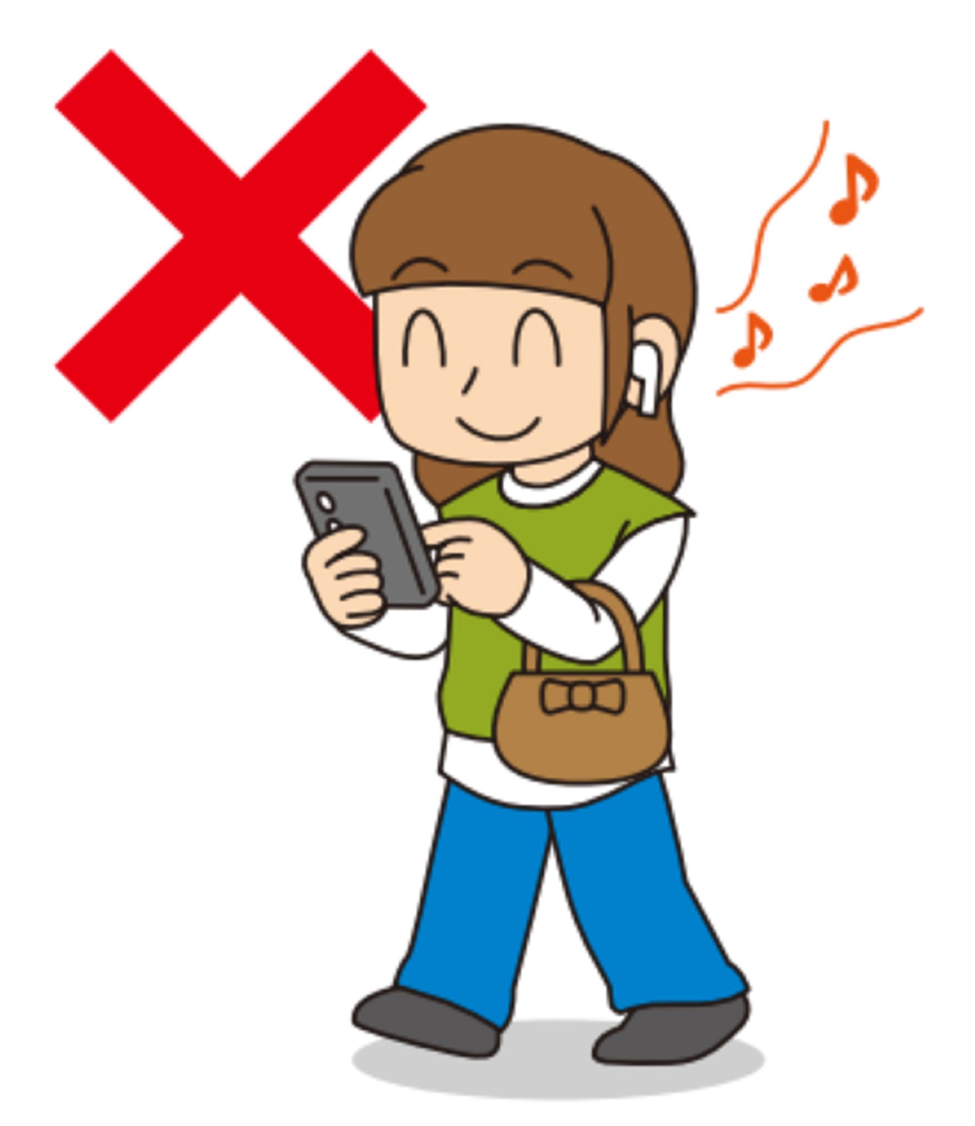 ・スマートフォンの操作やイヤホンで音楽を聴きながらの歩行や横断は、注意力が散漫になり、車の接近や周囲の状況に気づくのが大幅に遅れるので危険です。