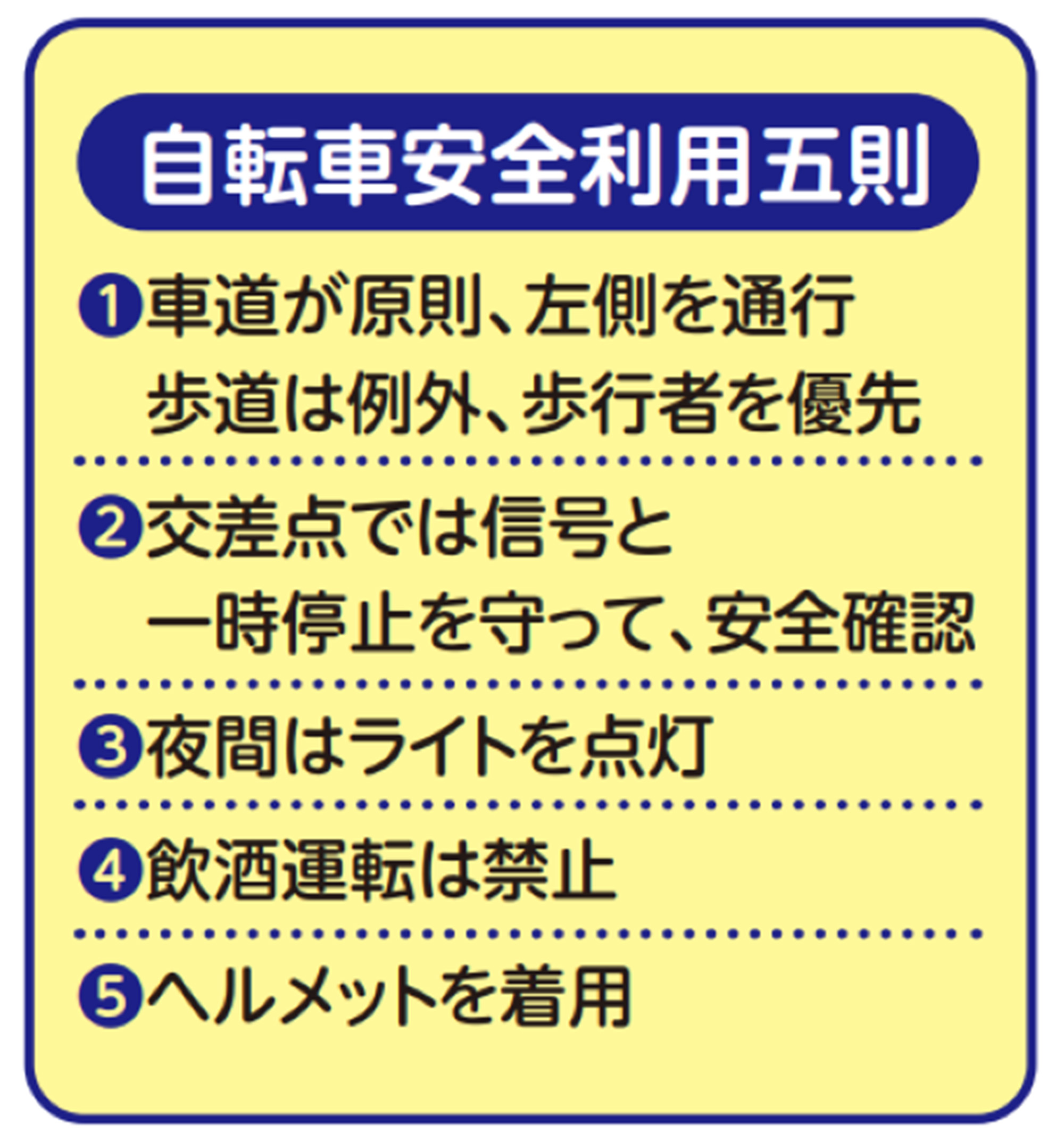 ・自転車の「ながらスマホの禁止」や「酒気帯び運転に対する罰則」が創設されています。