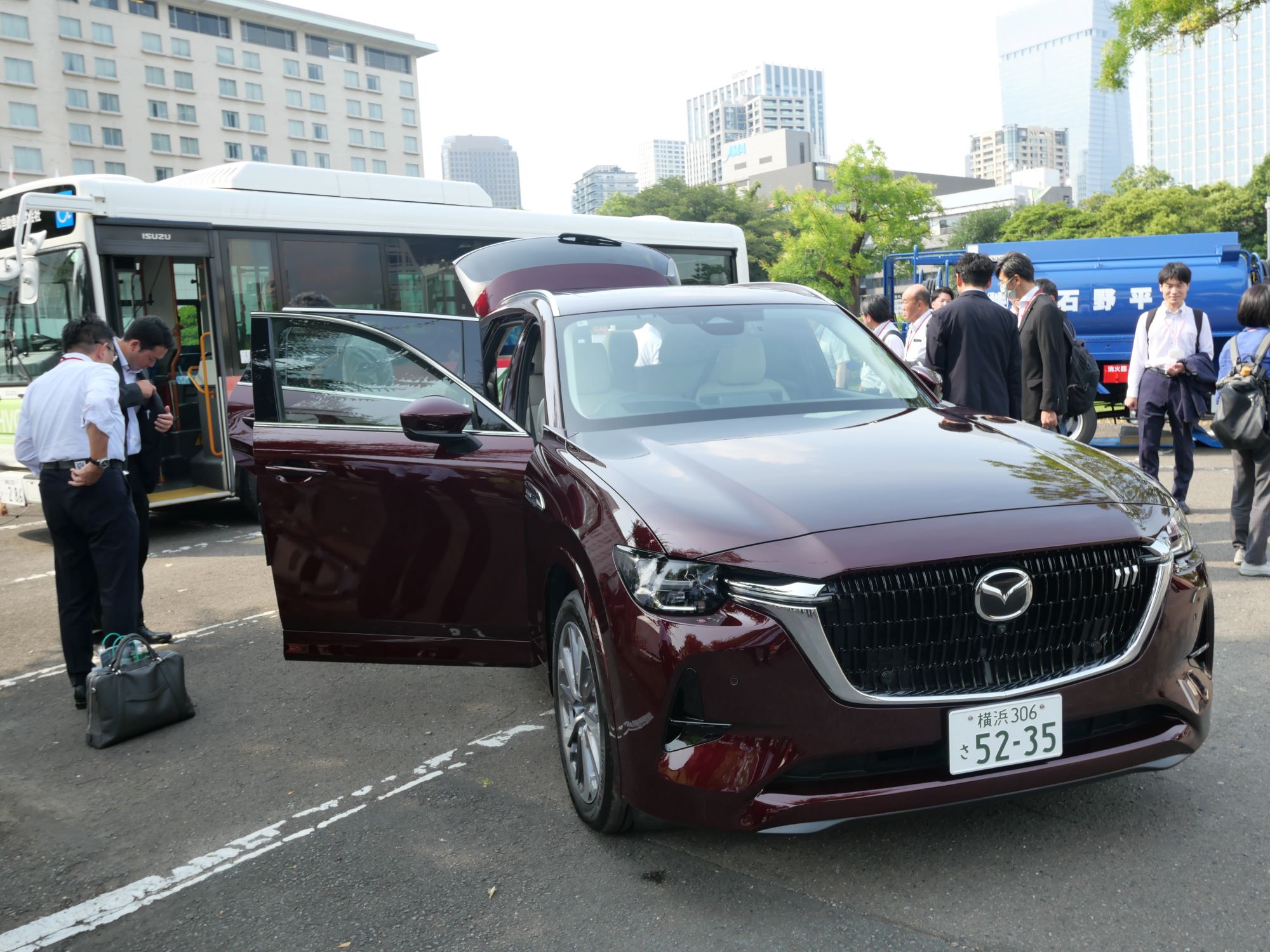 マツダは、4月に三井住友銀行が社用車として有する「CX-80」のディーゼル車にバイオディーゼル燃料を使用する仕組みづくりを支援。またユーグレナは、「水素化処理植物油(HVO)」51%と軽油49%を混合した「サステオ51」のバイオ燃料を東京・大手町にある銀行本店東館に供給し、平野石油が開発したバイオ燃料の簡易給油機を使ってCX-80に給油する仕組みを立ち上げたそうです。3社が連携してバイオ燃料を社有車に利用するモデルケースを構築したことについて、法人や自治体に取り組みを紹介していました。