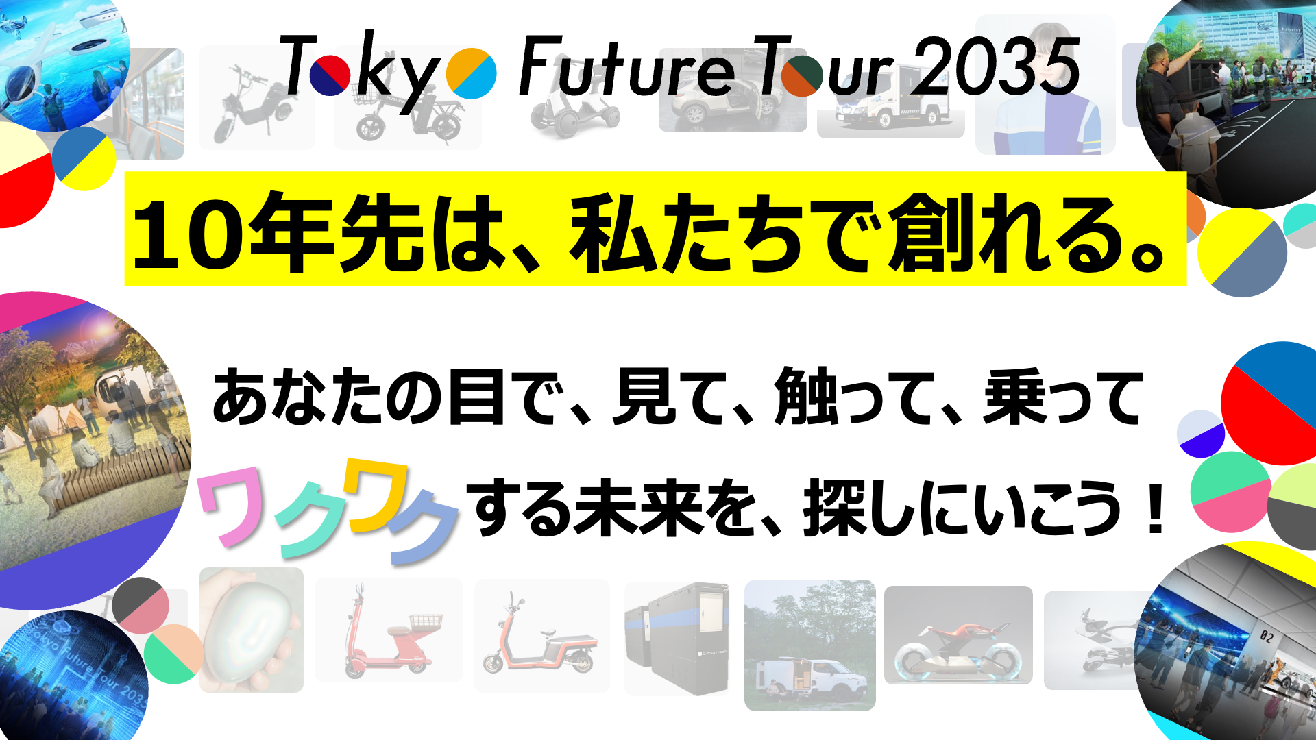 10年後、遠いようで、きっとすぐに訪れる未来だと思います。より良い未来に向けて、すべての人にとって、ヒントを得てもらったり、アイデアにつながることを期待しています。また、乗れるモビリティから、自律型のモビリティ、生活を便利にするモビリティや、遊び心をくすぐるモビリティなど、非常に多くのモビリティが、皆さまをお待ちしております。