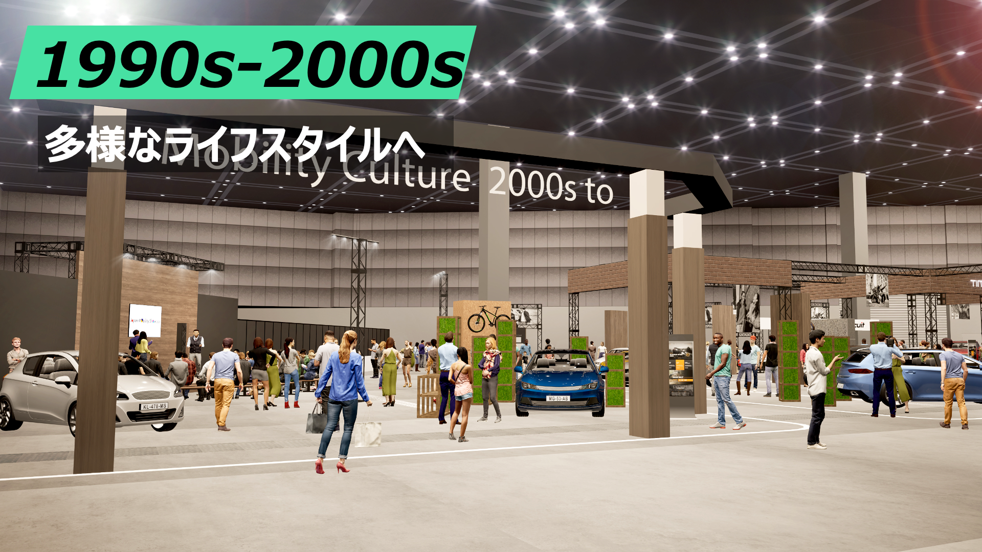 90年代は、個々人の多様なライフスタイルの追求と同時に、モビリティも、デザインやサイズなど、多様にスタイルを変え始め、モビリティは乗るだけでなく、自己を語る存在へと変化していきました。一方、2000年代になると、デジタル化や、環境配慮への視線も強くなり、ハード面だけの多様性ではなく、ソフト面での多様性も増えていきました。近い年代でも、ここまでモビリティの役割が変わる、そんな時代のスピードにも、ご注目いただけると思います。