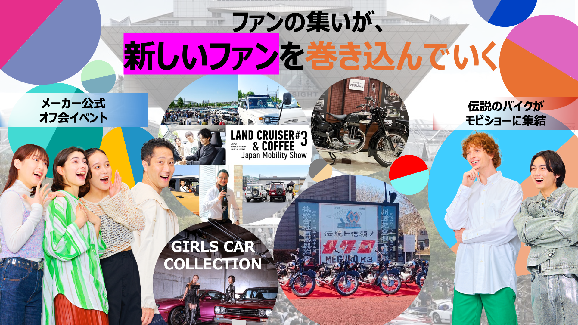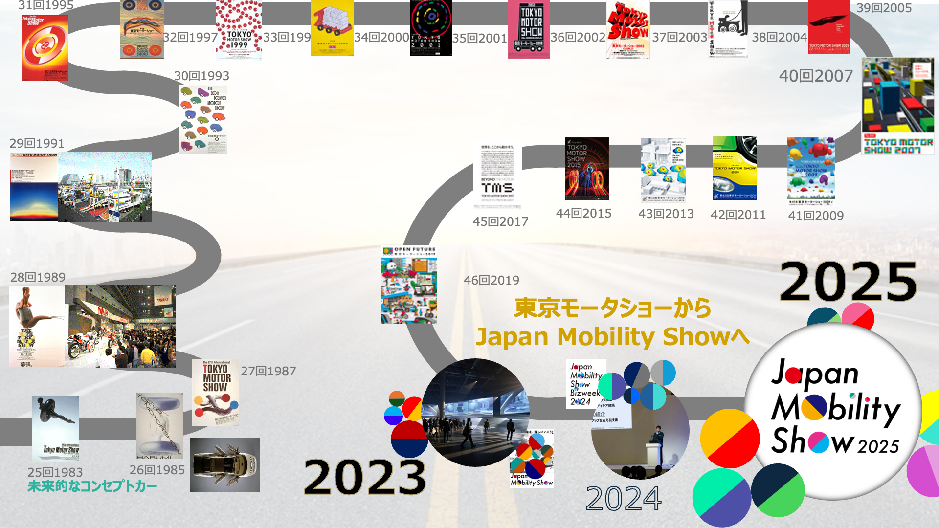 時代の移り変わりとともに、変化と革新を繰り返し、また、70年のレガシーを引き継ぎながら、2023年に再びスタートラインに立ち、立ち上げたのが、ジャパンモビリティショーです。今年は、その第二回目になります。