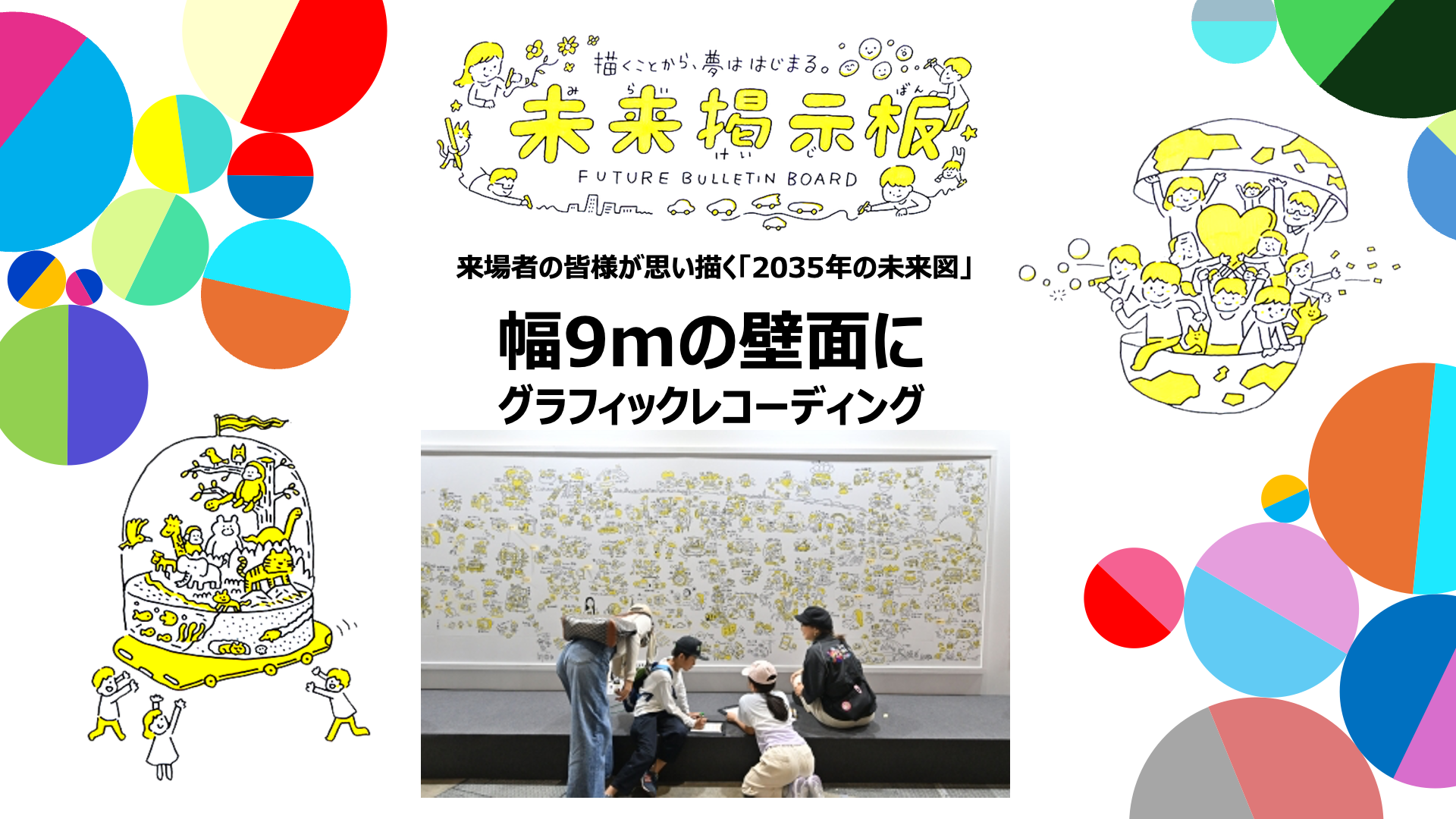 クリエイションプログラムは、ビジネスだけのものではございません。ご来場の皆さま、一人一人に、未来について考える、きっかけをお届けすることが目的です。前回ご好評いただきました 「未来掲示板」 を、10年後の未来に再設定し、「未来掲示板2035」として、今回も実施いたします。誰もがアイデアを形にできる、参加型の企画になっておりますので、会場を様々まわっていただき、未来掲示板の前でお会いできればと思います。