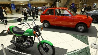 今日持ってきたのは、私が初めて乗った四輪車と二輪車です。初代アルトもマメタンも大学卒業後購入しました。アルトは、隣に女性を載せると肩と肩が触れ合うと。当時は、助手席に手を回して、後ろを見るわけですよ。そうするといいなぁと。