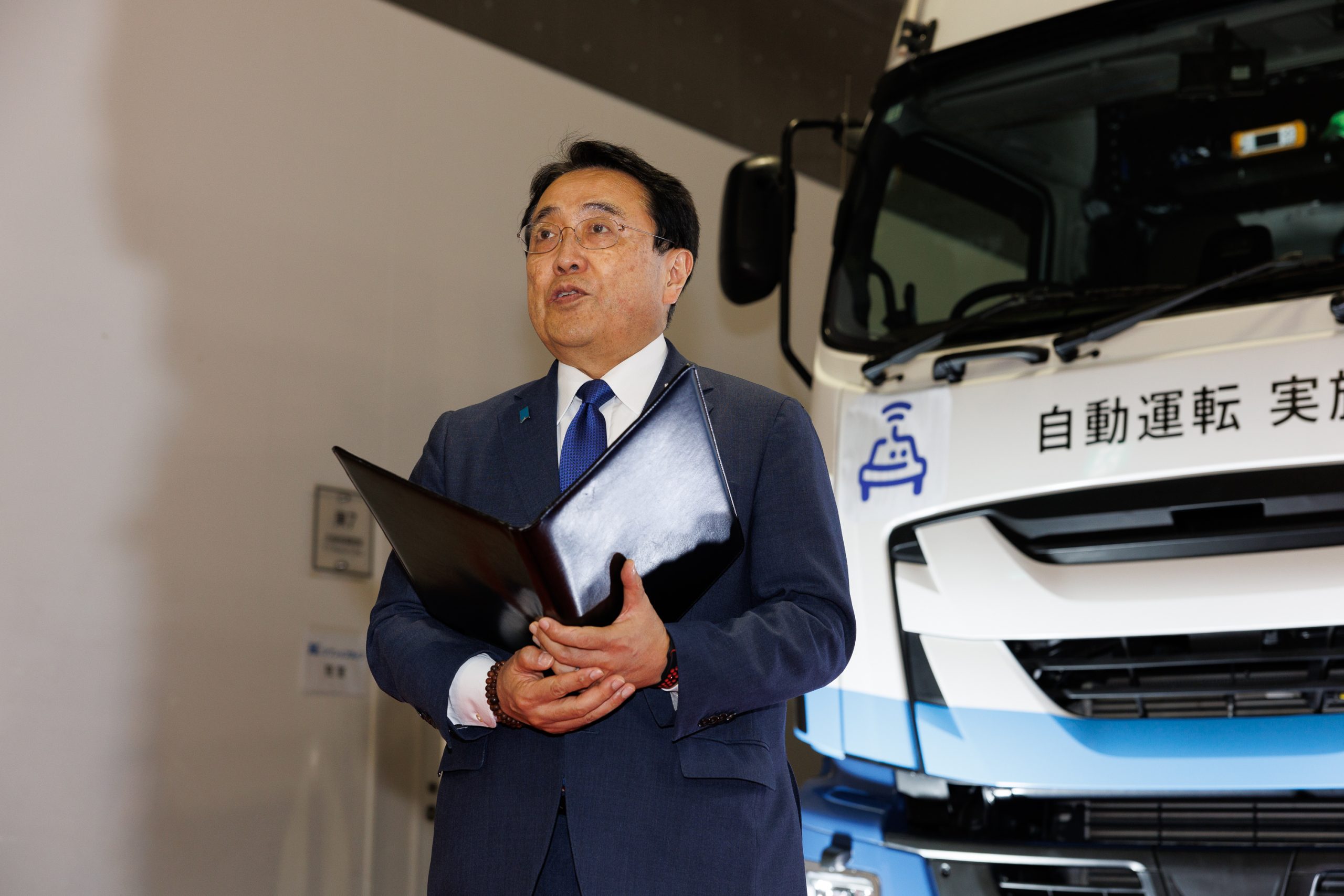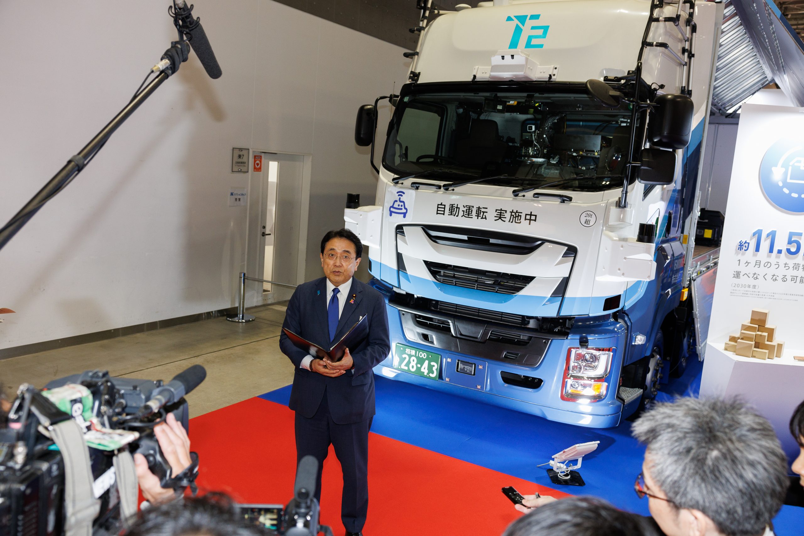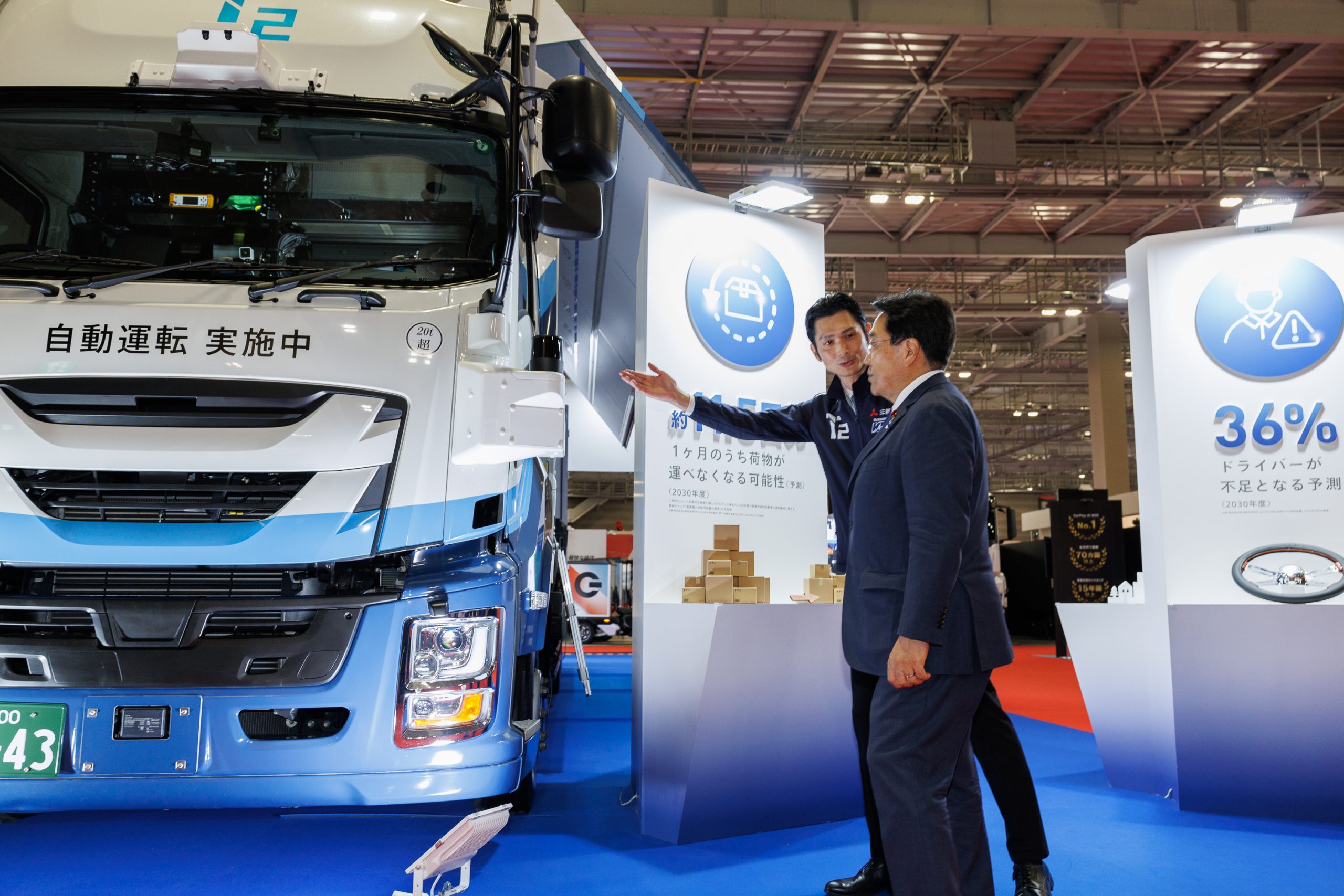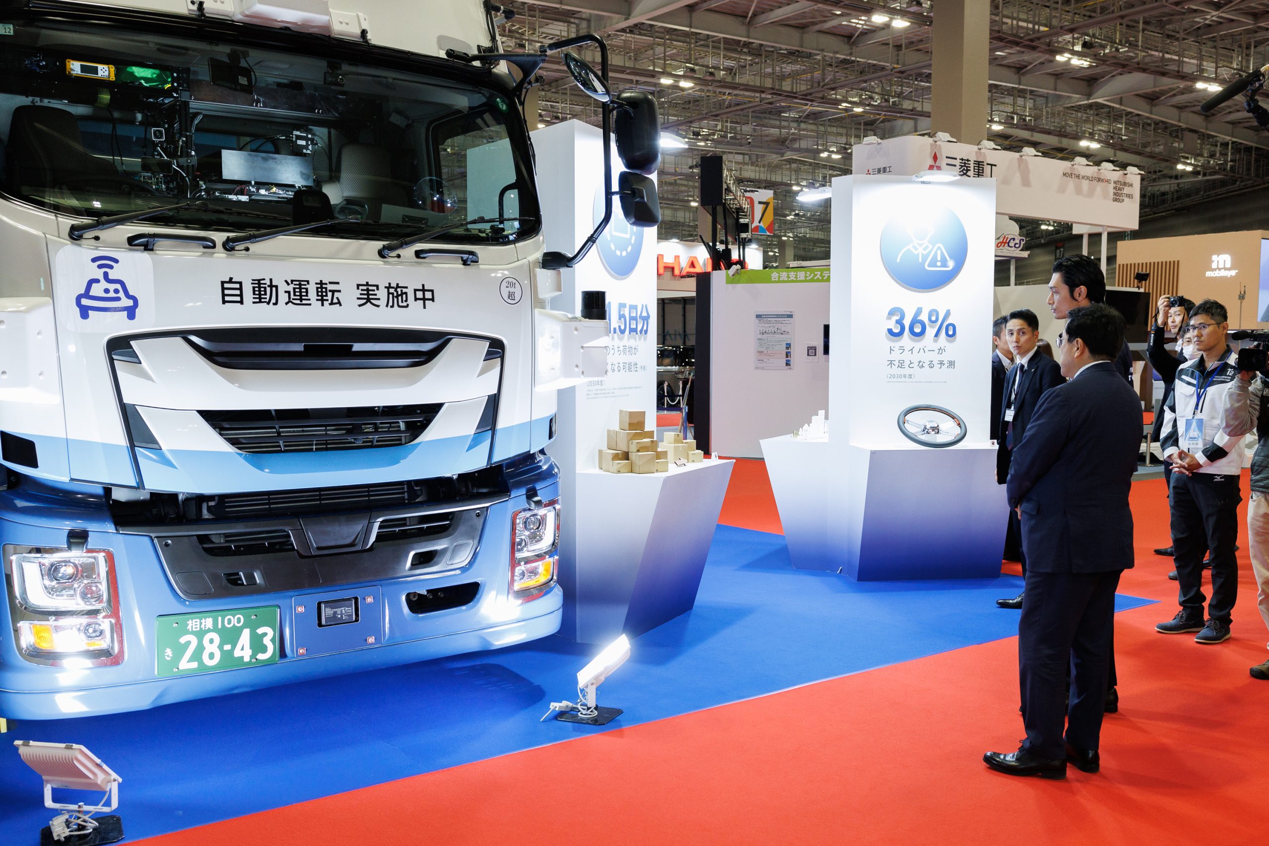 特に脱炭素化技術とか、自動運転技術に取り組むスタートアップの展示など、新しいモビリティ産業の未来と、それに向けてチャレンジしておられる姿を、非常に頼もしく見ることができました。特に今後ろに自動運転のトラックがありますが、物流については必要な荷物が運べなくなる、3割4割足りなくなるとずっと予測されてきているので、解決しなければいけない課題です。ドライバーが居なくても荷物が届くのであれば、それも一つの非常に有力な解決策ですし、そういう社会的課題をしっかり解決をしていくという意味でも、極めて有意義な取り組みが行われていると思います。