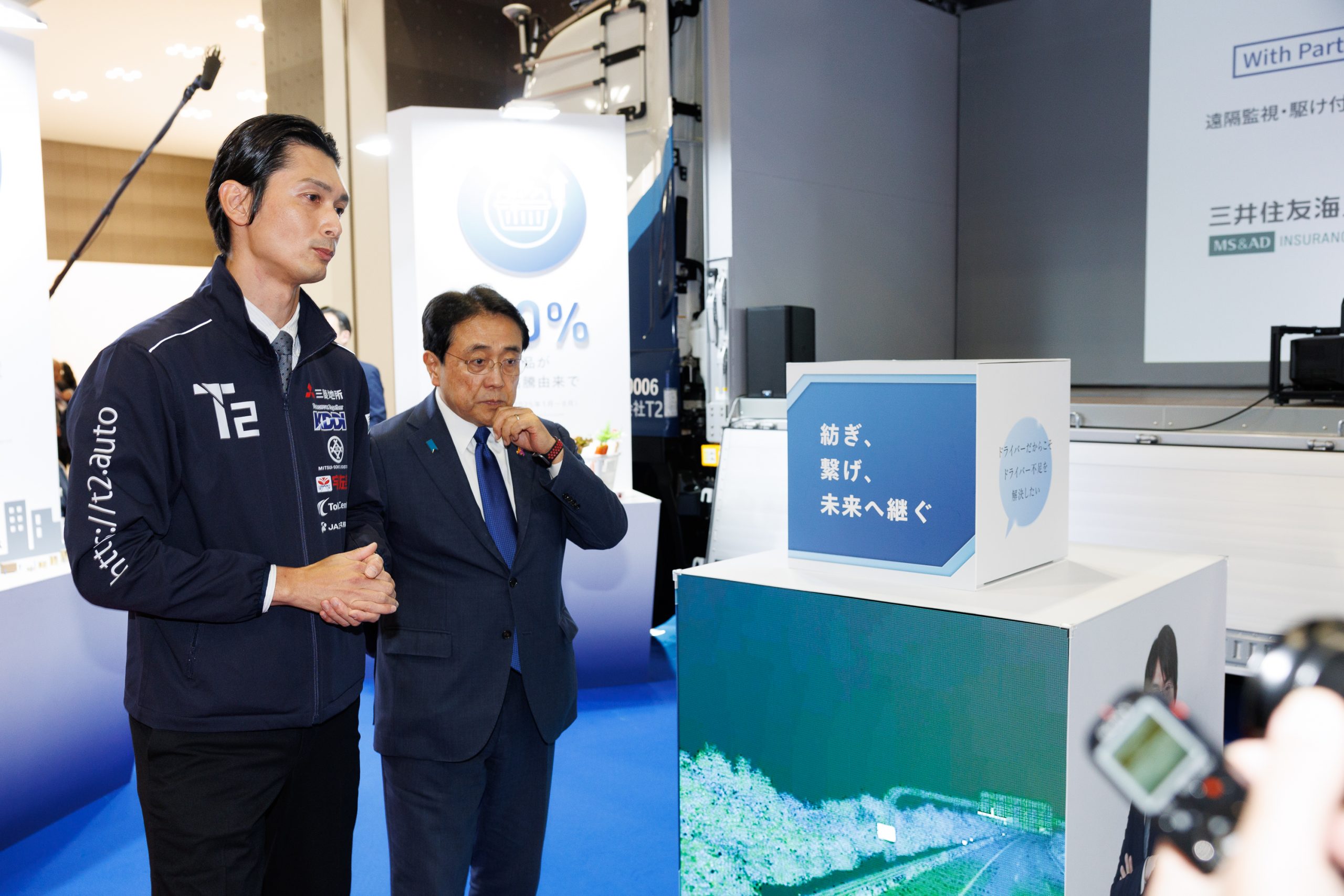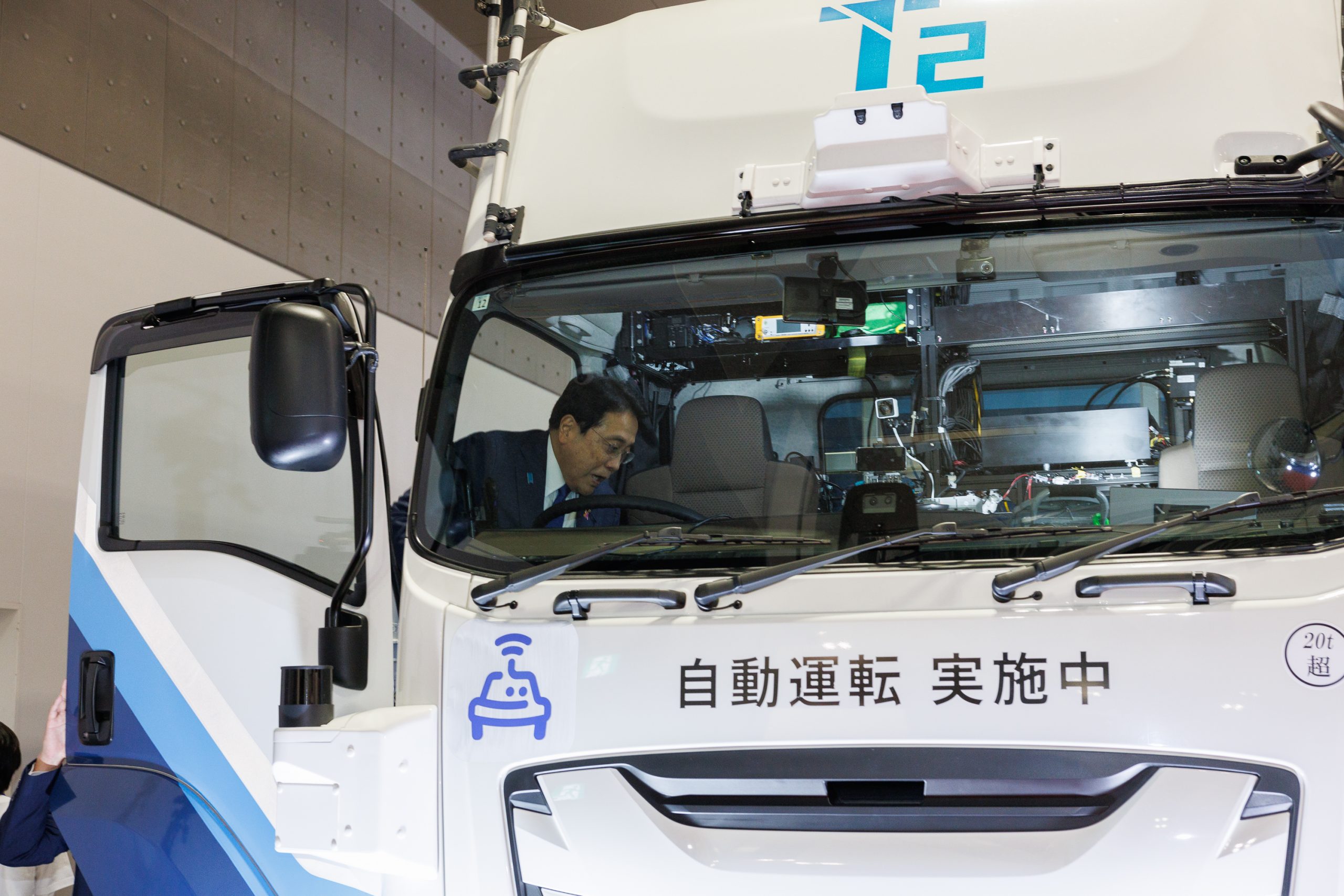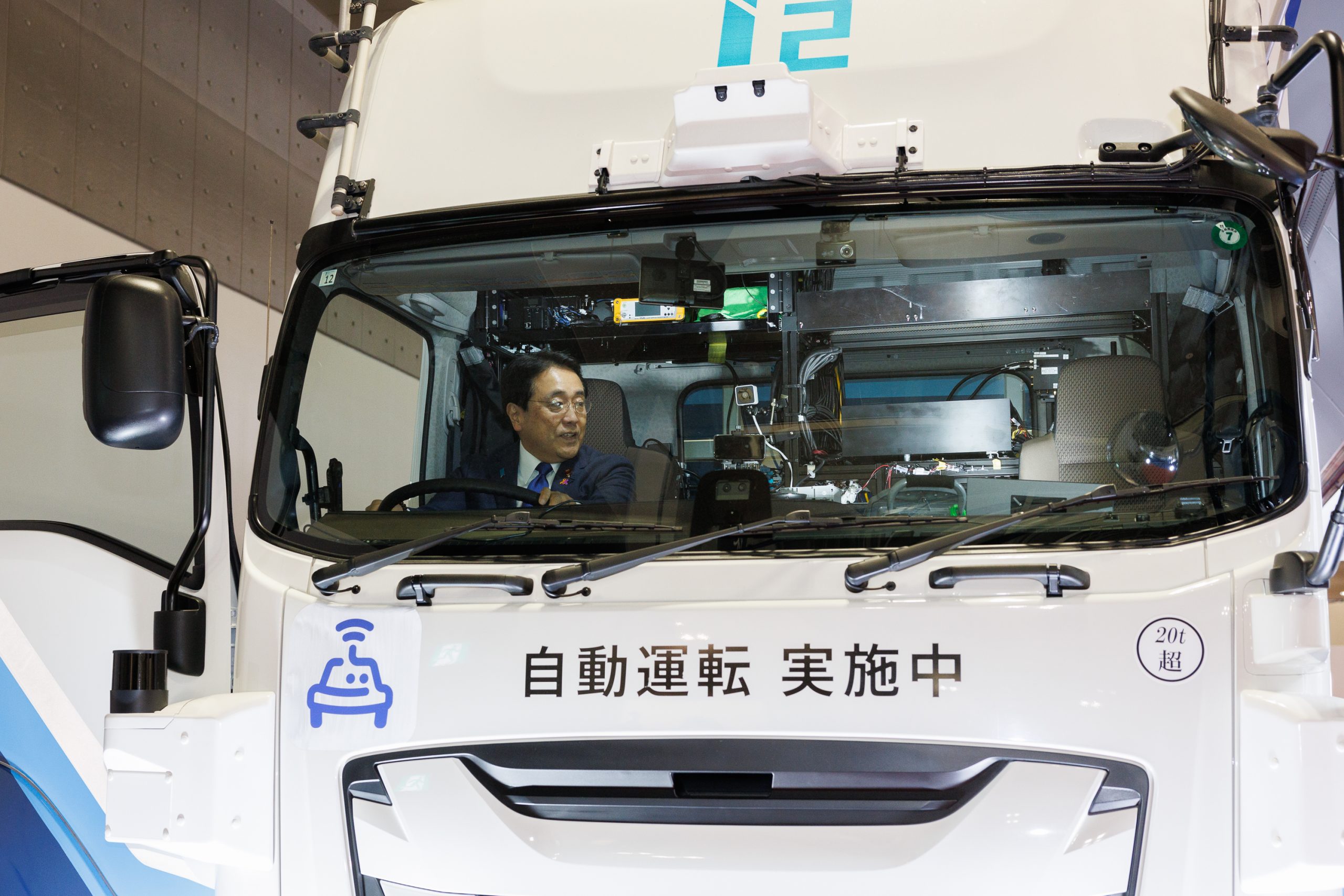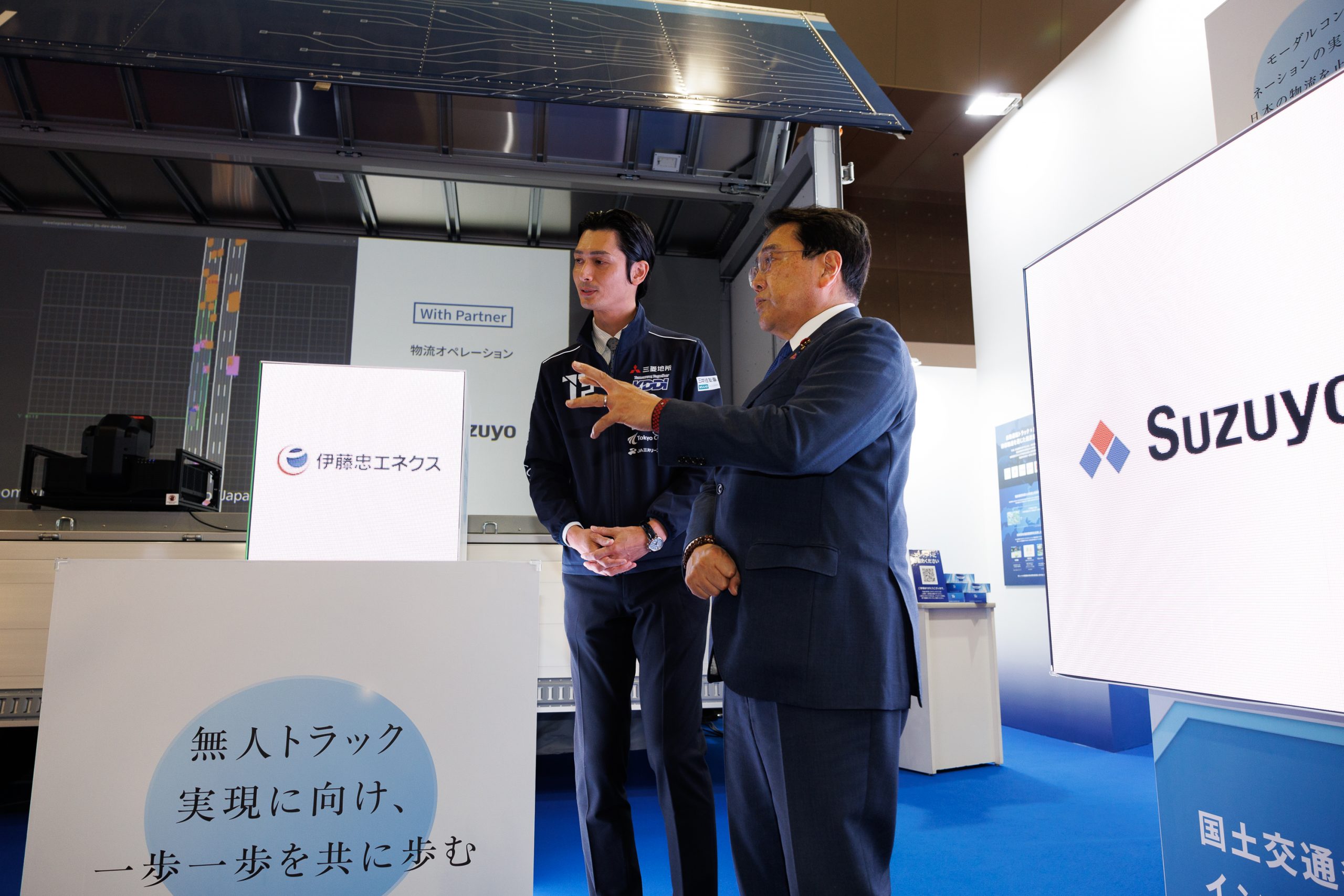 特に脱炭素化技術とか、自動運転技術に取り組むスタートアップの展示など、新しいモビリティ産業の未来と、それに向けてチャレンジしておられる姿を、非常に頼もしく見ることができました。特に今後ろに自動運転のトラックがありますが、物流については必要な荷物が運べなくなる、3割4割足りなくなるとずっと予測されてきているので、解決しなければいけない課題です。ドライバーが居なくても荷物が届くのであれば、それも一つの非常に有力な解決策ですし、そういう社会的課題をしっかり解決をしていくという意味でも、極めて有意義な取り組みが行われていると思います。