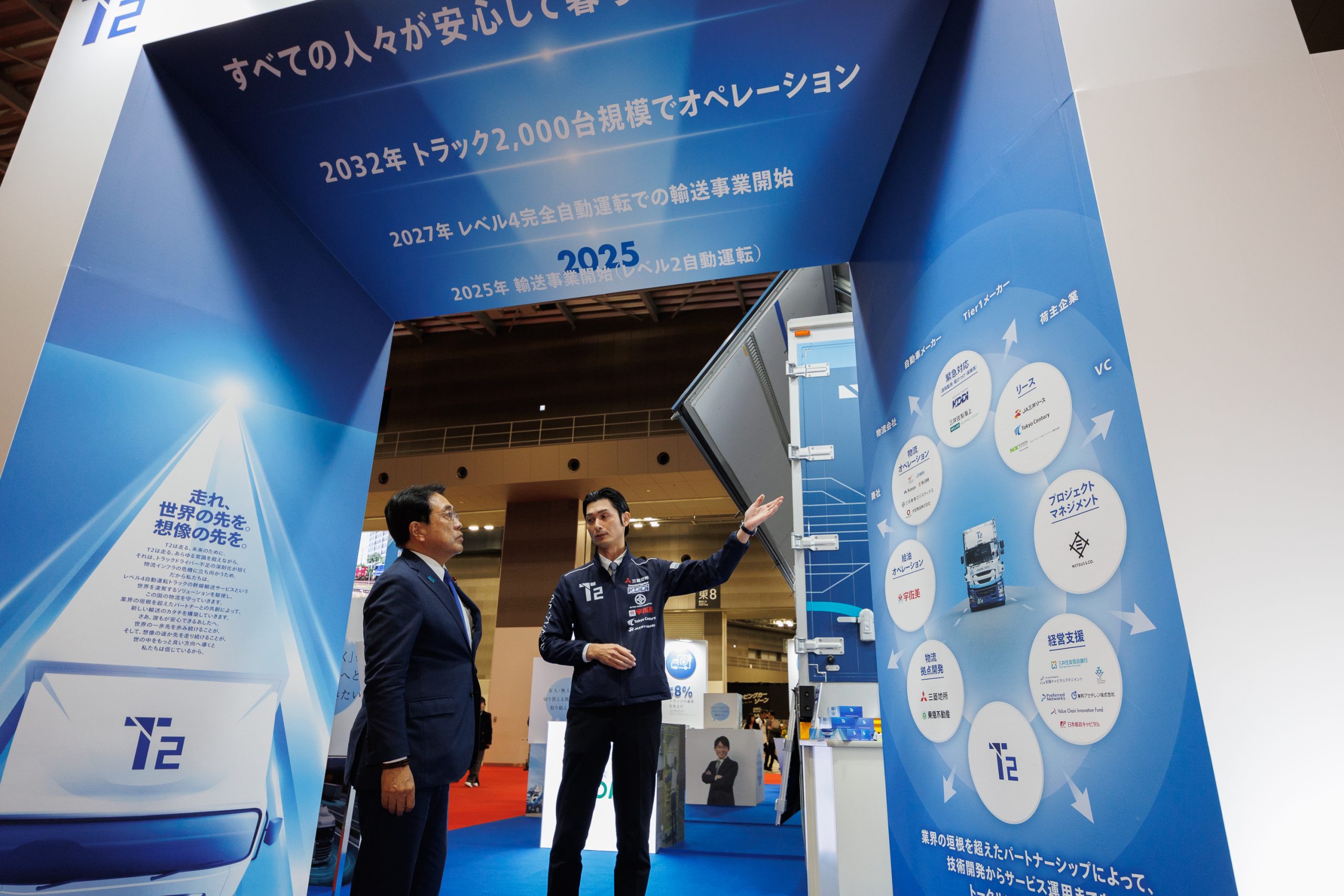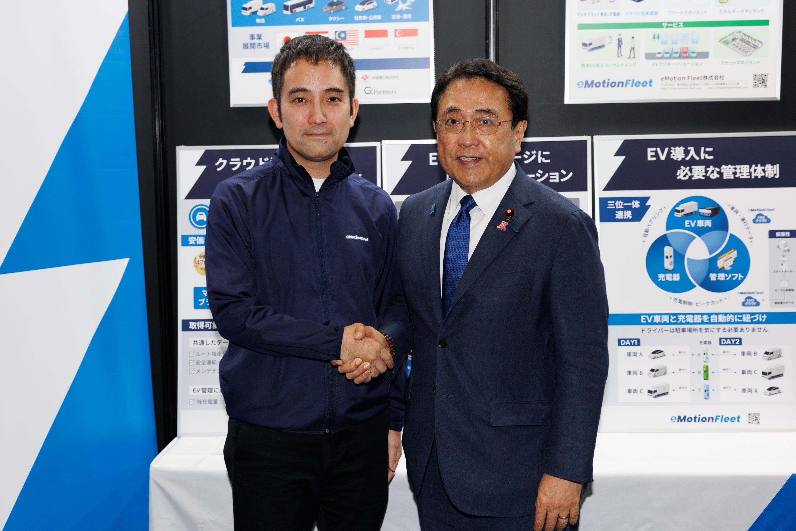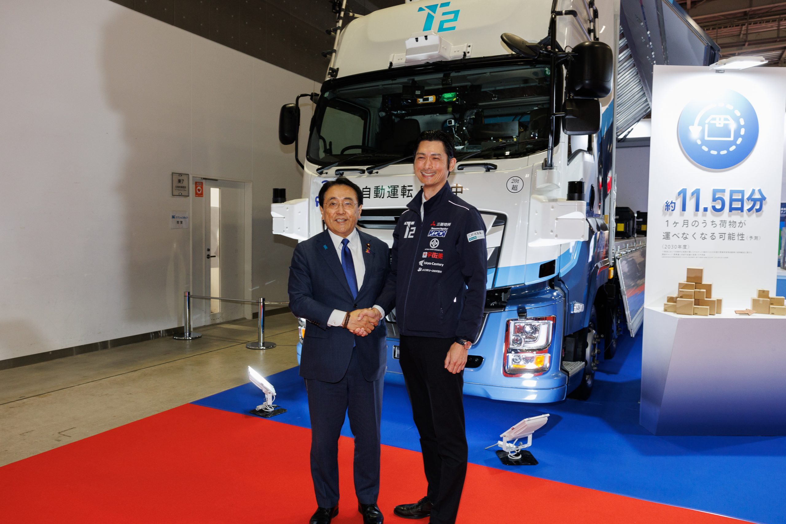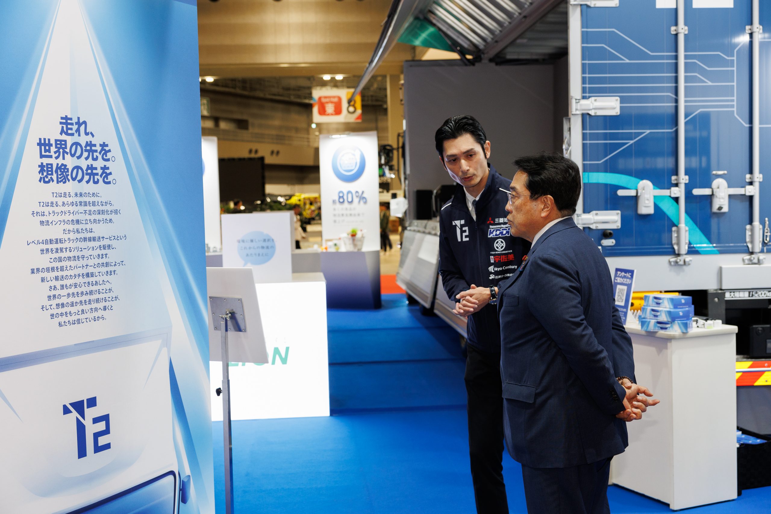 特に脱炭素化技術とか、自動運転技術に取り組むスタートアップの展示など、新しいモビリティ産業の未来と、それに向けてチャレンジしておられる姿を、非常に頼もしく見ることができました。特に今後ろに自動運転のトラックがありますが、物流については必要な荷物が運べなくなる、3割4割足りなくなるとずっと予測されてきているので、解決しなければいけない課題です。ドライバーが居なくても荷物が届くのであれば、それも一つの非常に有力な解決策ですし、そういう社会的課題をしっかり解決をしていくという意味でも、極めて有意義な取り組みが行われていると思います。