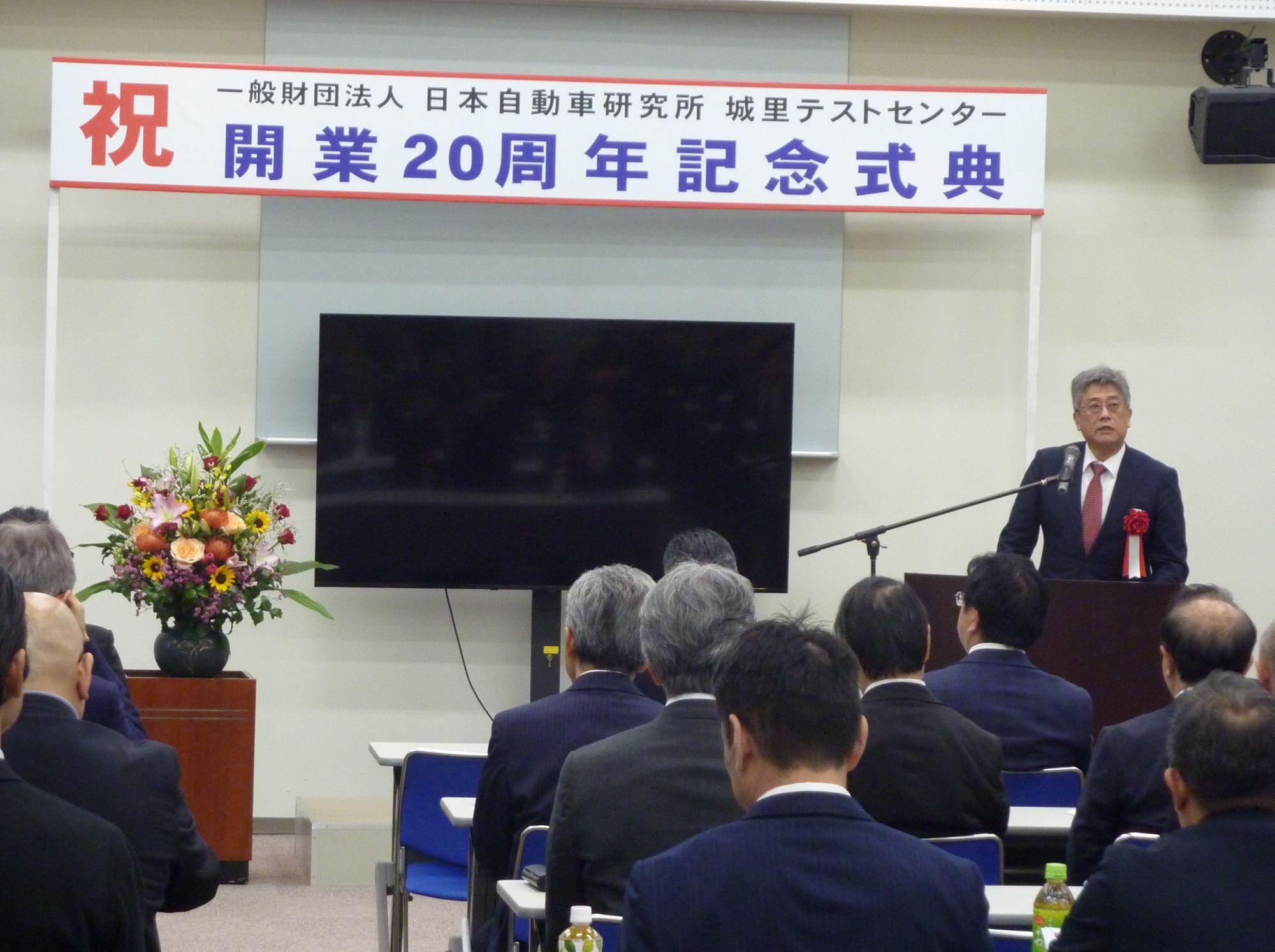 開業20周年記念式典では、主催者を代表してJARIの中嶋裕樹理事長(トヨタ自動車副社長)が城里テストセンターについて「(車両の研究開発や自動運転の評価などに対する)業界の『物差し』として、(自動車メーカーなどから)信頼を得られ、活用されると確信しています」とあいさつしました。