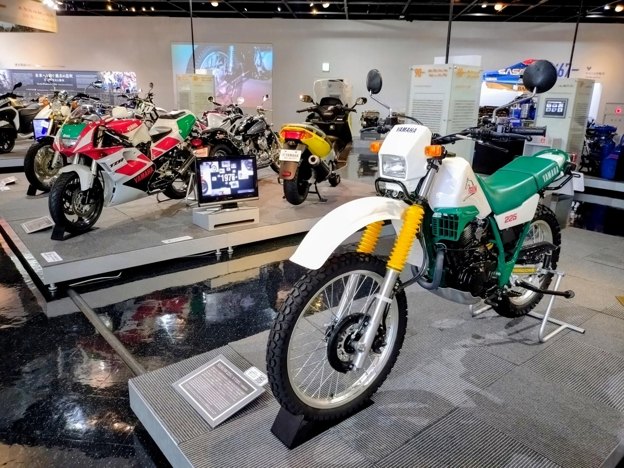 ヤマハ発動機コミュニケーションプラザに展示された初代セロー(右)