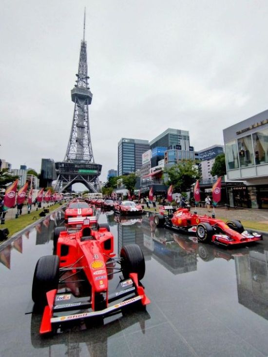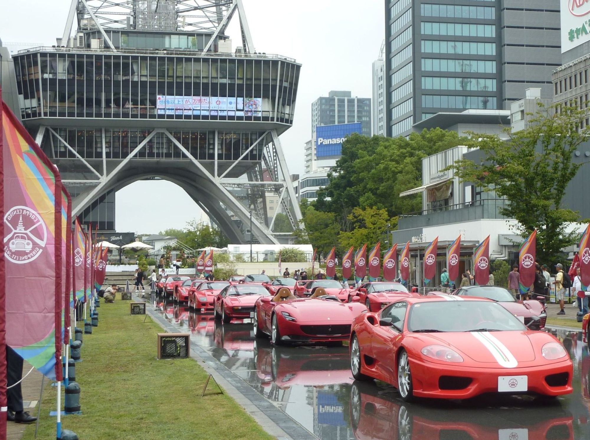 〝水辺広場〟では、イタリアを代表するフェラーリの歴代スポーツカー、F1レース用マシンなど15台超が縦列され、タワーをバックに街に溶け込む姿は圧巻でした。来場者からは「水が湧き出る床面に映える赤色の車両は間近で見ても遠目で見ても、自然の緑と交わった芸術性が高く感じられました」などとの声が聞かれました。