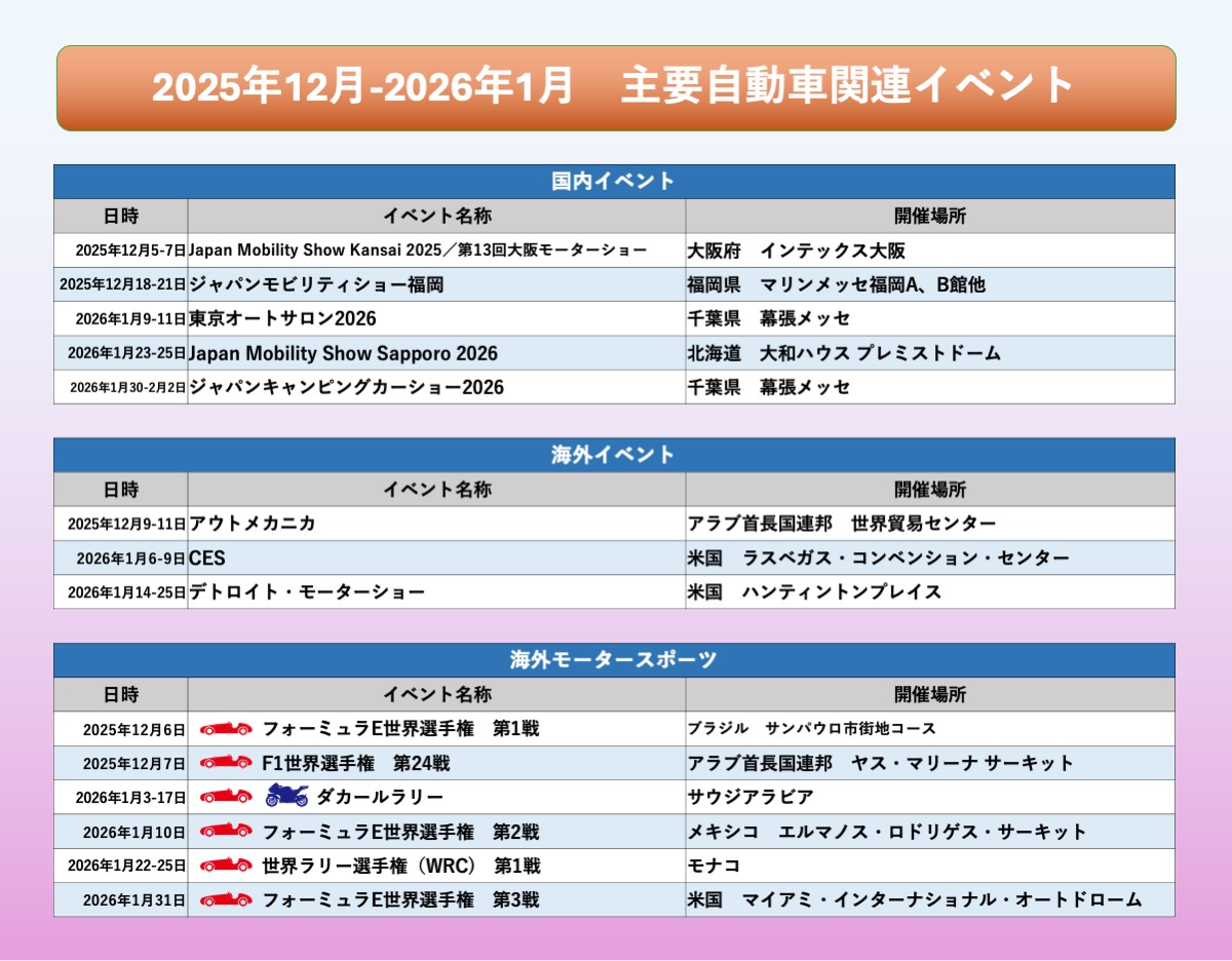 | 2025年12月-2026年1月 主要自動車関連イベント | ||