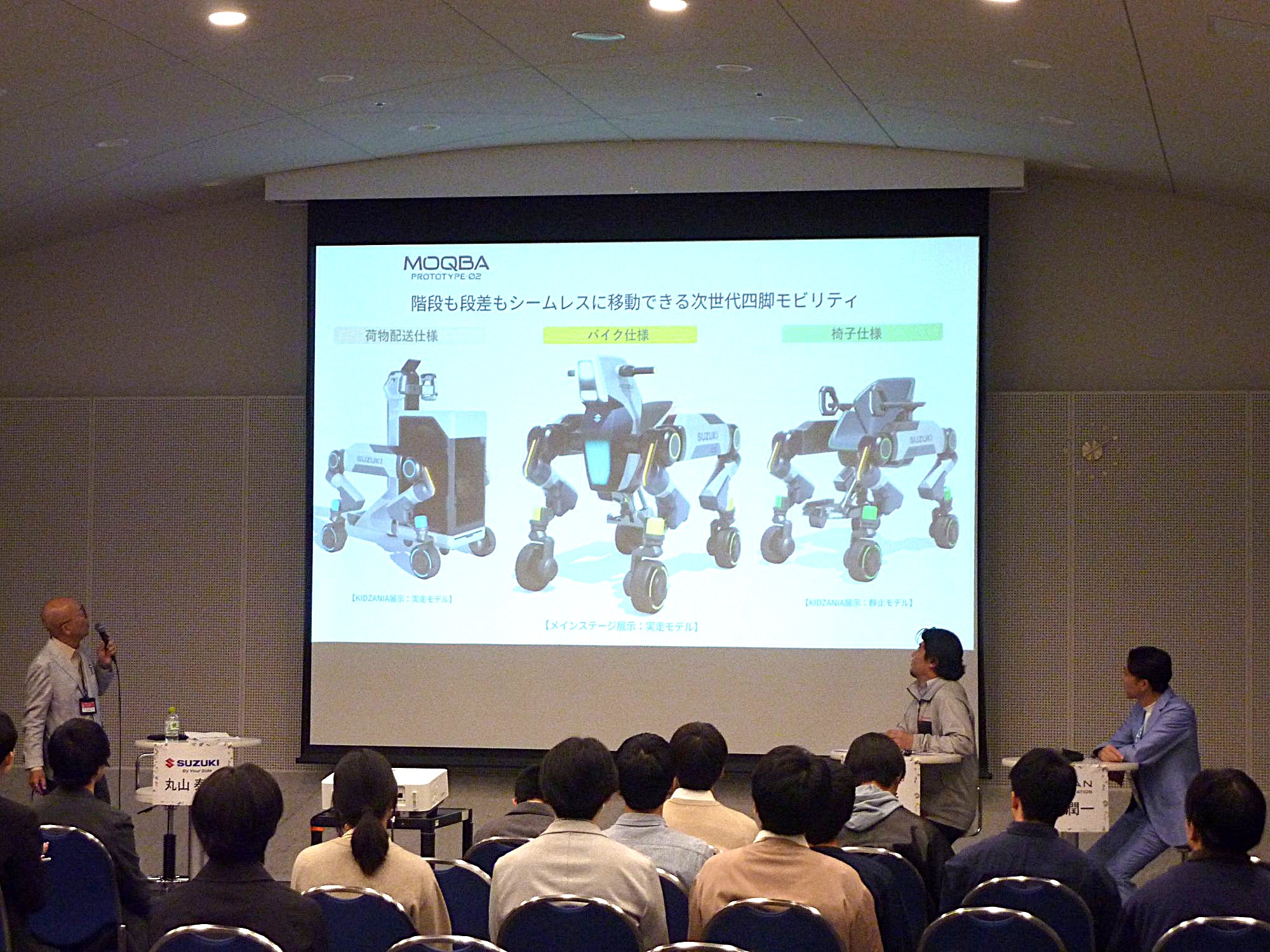 ヤマハ発動機の篠原功次さんは、自立システムを搭載した次世代二輪車「MOTOROiD2」を取り上げ、「動物や生物のように寝た状態から起き上がったりします。バランスコントロール機能と画像認証AI機能を備え、人とモビリティの関係性を変えることにチャレンジしており、二輪の転倒リスクなど複雑な動作や走行の環境に適応できるような技術開発を進めていきたいと思っています」と紹介しました。