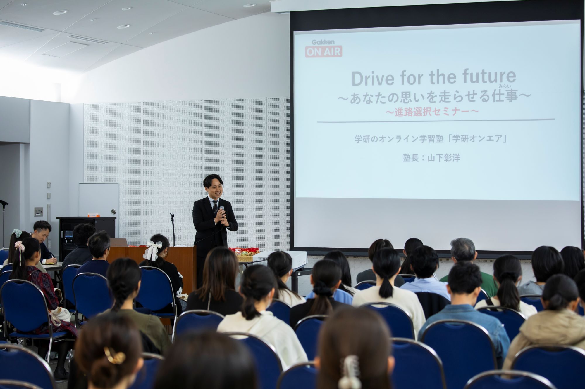 イベントでは、最初にGakken塾講師が今後の進路に悩む中学生に向けて「夢を見つけるには、まずは自分自身に問いかけましょう。ドキドキ・ワクワクできる道を選べば、自分を動かすエンジンになります」と高校・大学選びには何が必要か、理系進学で意識すべきポイントは何かなど、自分だけの未来地図を描くよう呼び掛けました。