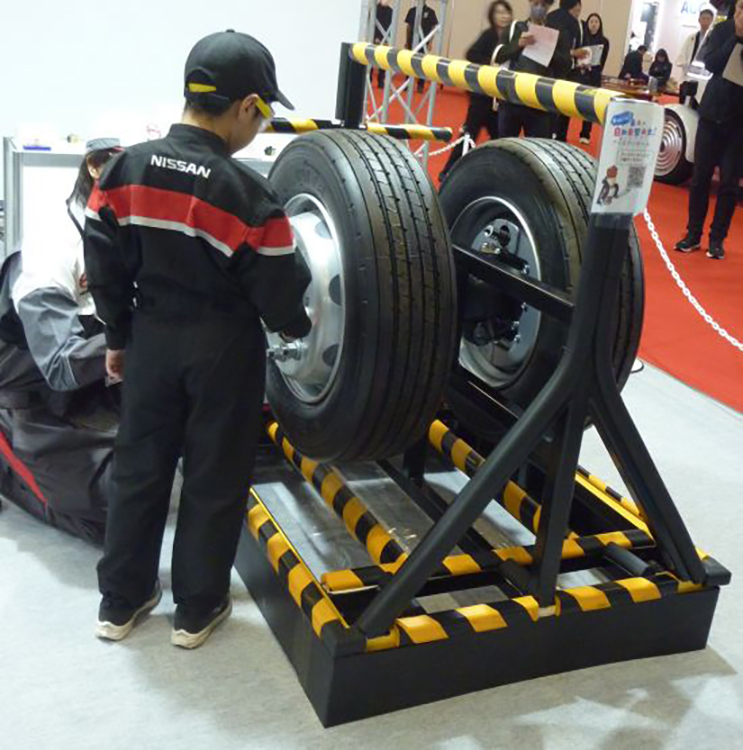 ブースでは、①車の点検・整備の体験、②エンジン分解・組み立て体験、③大型ホイールナットの緩み点検体験、④ボルト・ネジの締め付け体験といった本格的なプログラムを実施。