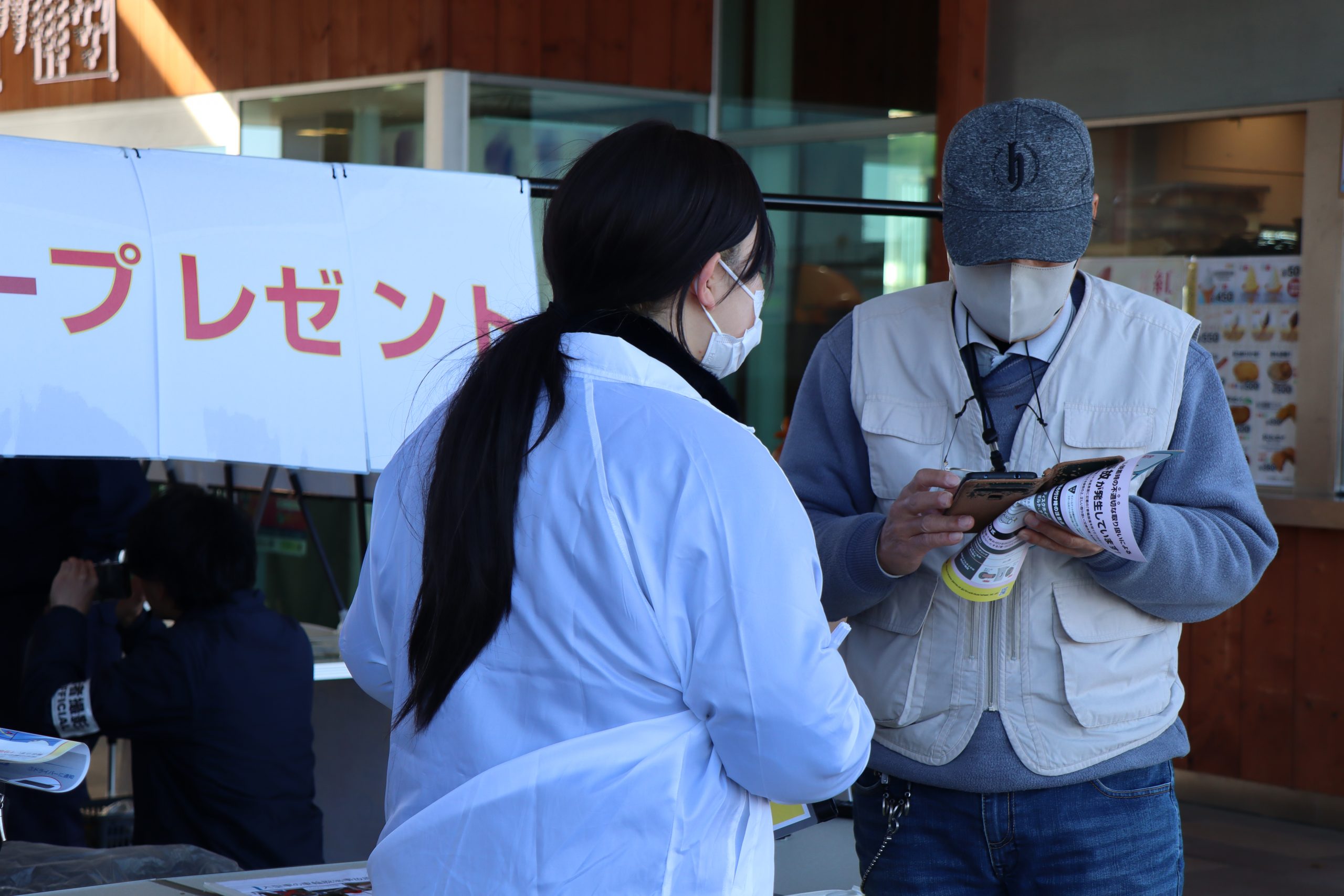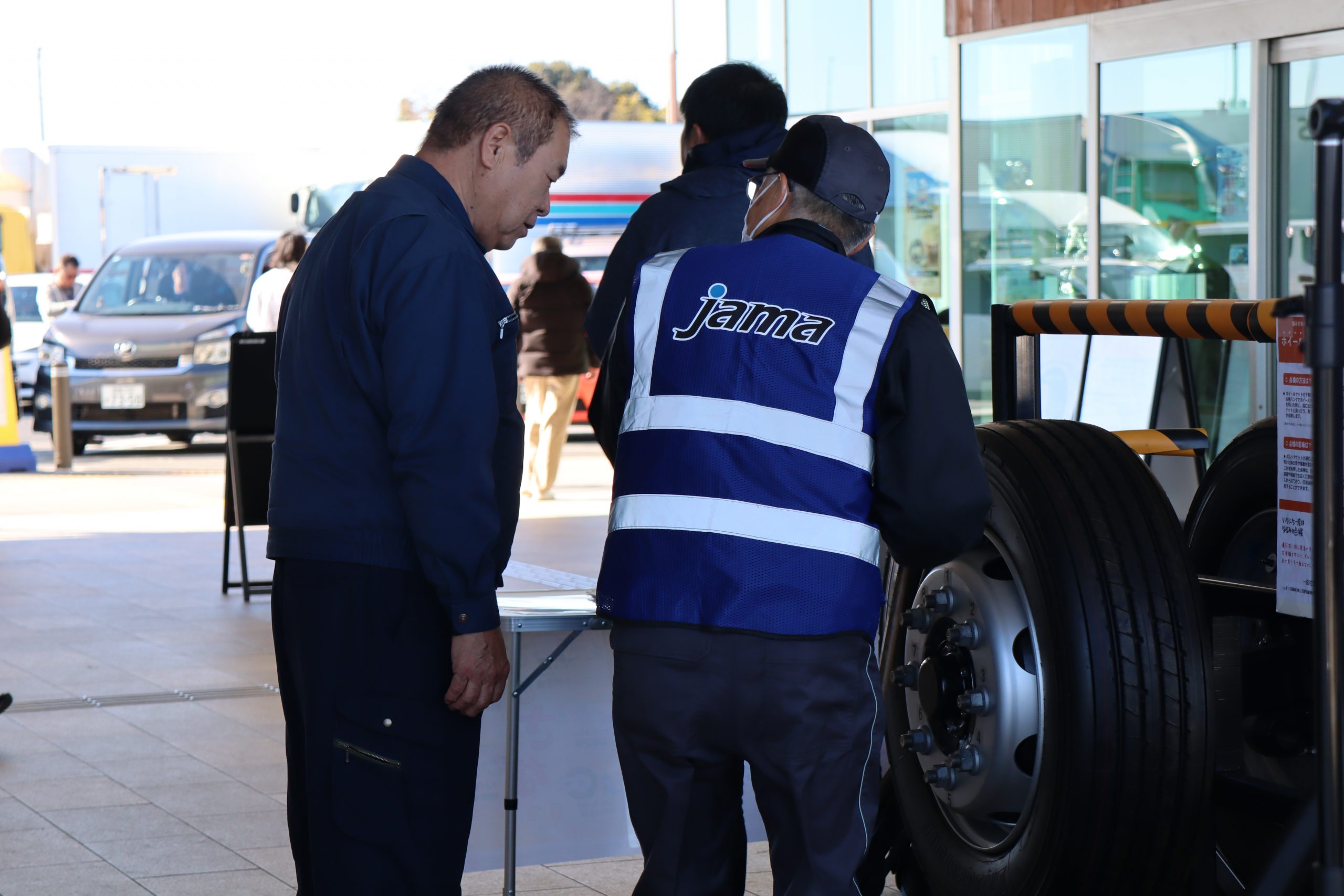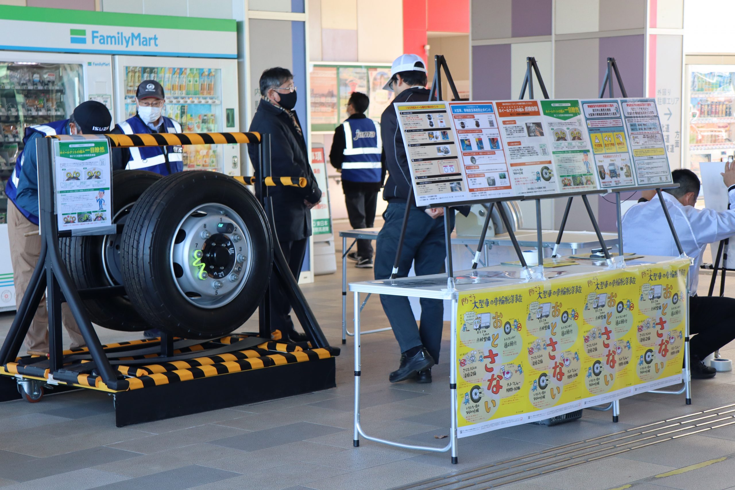 昨年に引き続き、自工会 大型車企画部会傘下の大型車車輪脱落事故防止分科会は12月18日、圏央道 菖蒲SAにて、大型車輪脱落事故防止標語「おとさない」の啓発活動および大型車ユーザーを対象としたアンケートを実施しました。