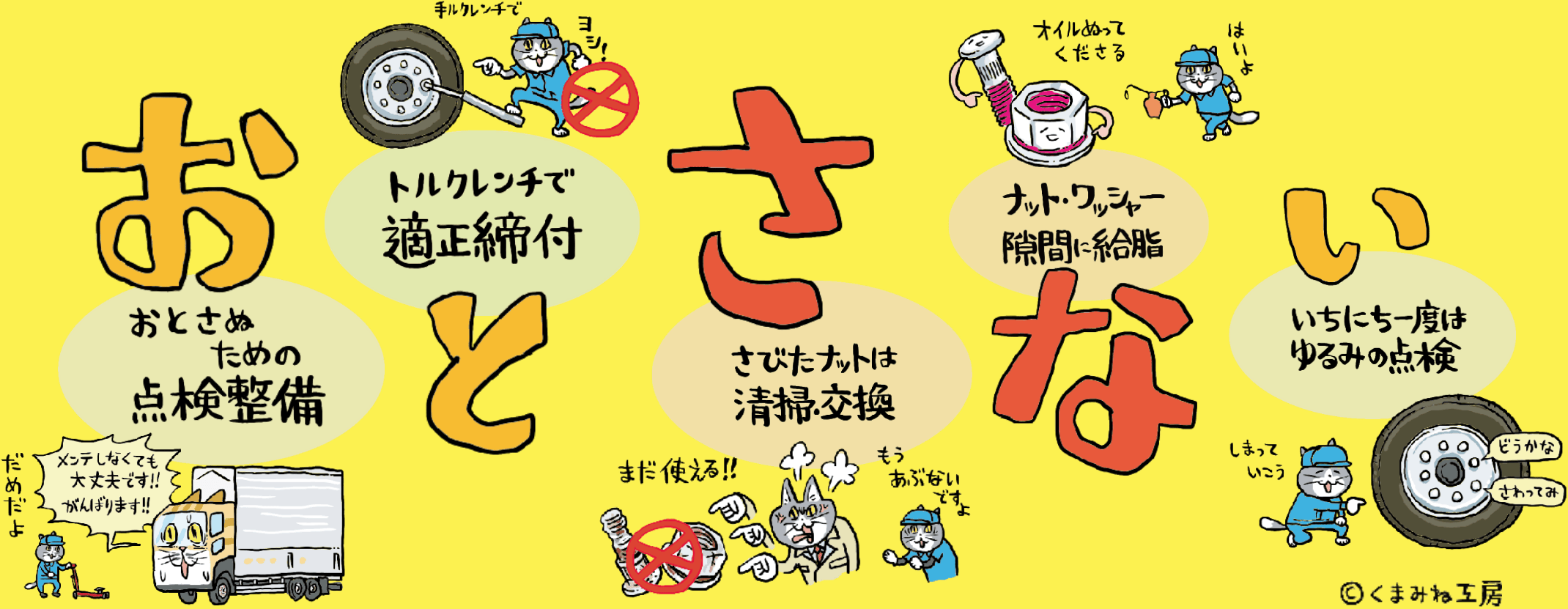 車輪脱落事故は防げる事故です。是非とも大型車に乗っているドライバーの方々、またタイヤの点検整備に携わる方々。ご自身の正しい作業の徹底、また日頃の点検をきちんと行なっていただきたいと思います。ご協力よろしくお願いいたします。