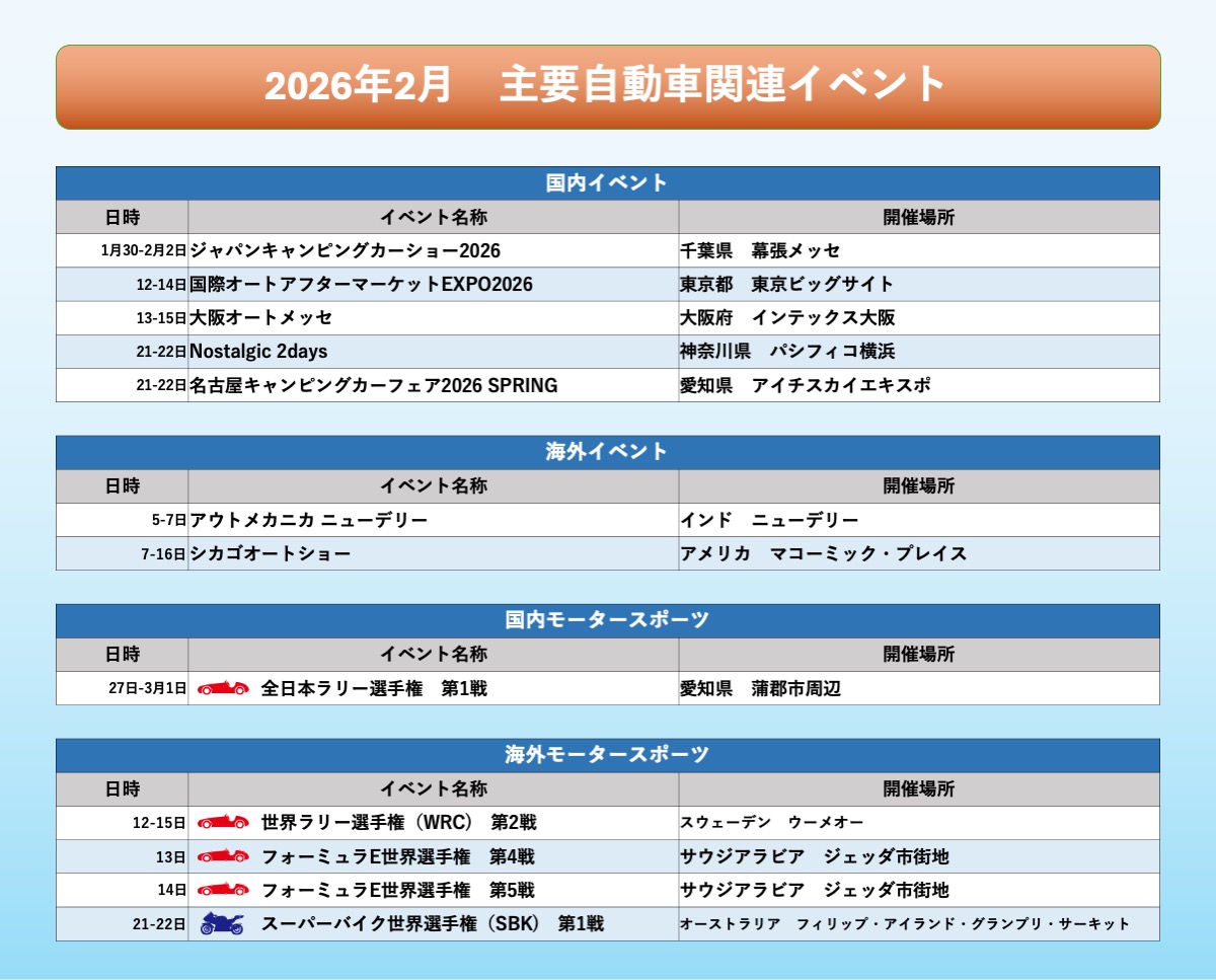 【イベント】2026年2月 主要自動車関連イベントカレンダー