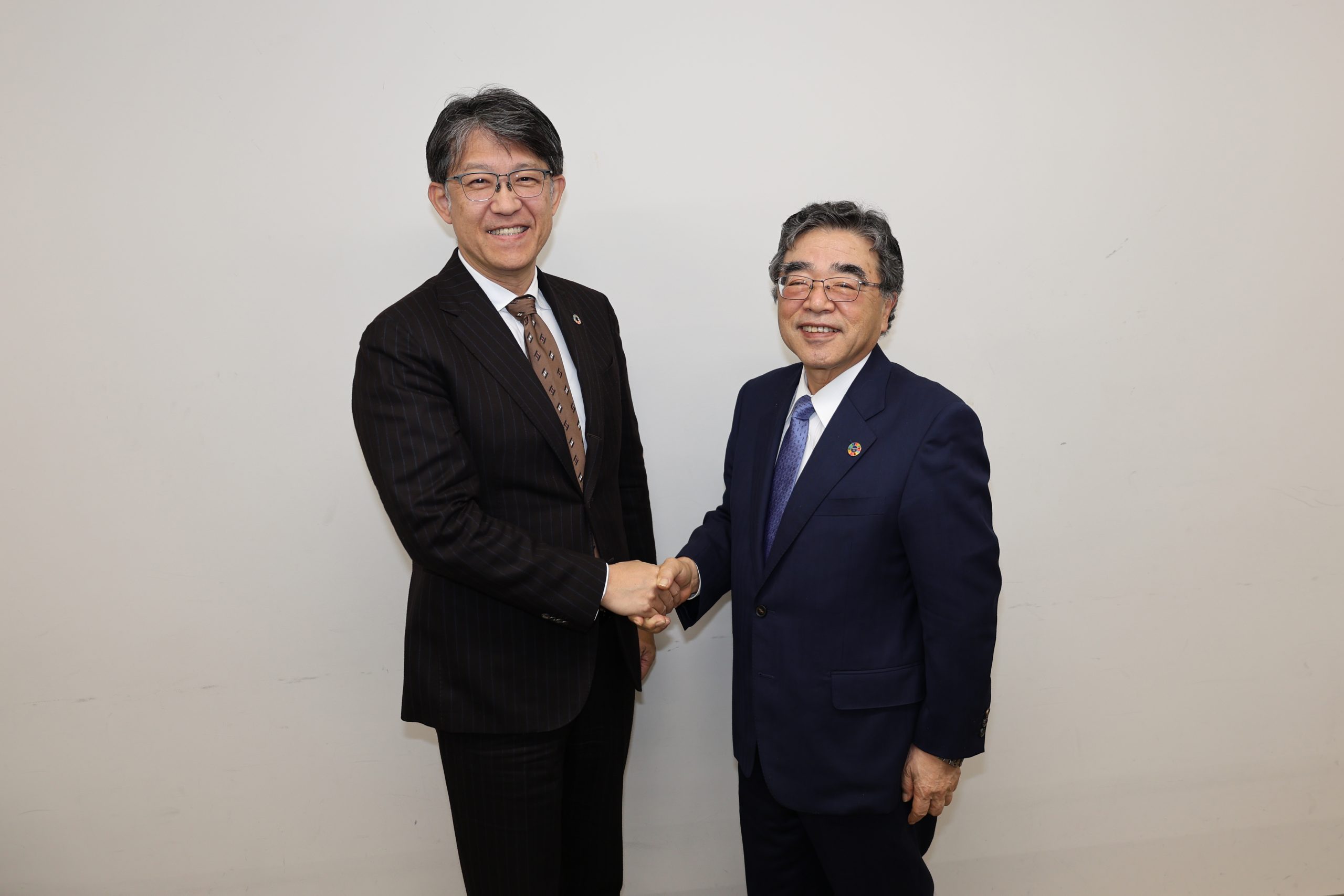 - 左:自工会会長 佐藤恒治(トヨタ自動車(株)代表取締役社長) 右:部工会 茅本隆司会長(日本発条(株)代表取締役会長)