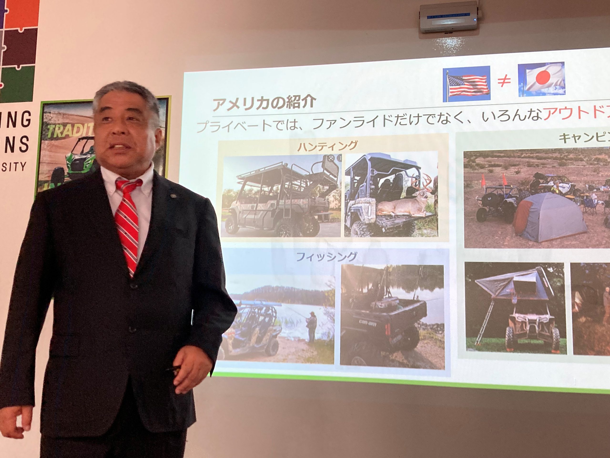 メインマーケットである米国については「オフロード四輪車市場のさらなる拡大には、カワサキのパワーユニットの開発・生産技術を活かしたモデルの投入が欠かせない」と説明。米国人が大切にする「力強さ」や「誇り」といった価値観にふさわしいアグレッシブさを特徴とする、「RIDGE(リッジ)」や「TERYX(テリックス)」シリーズなどを投入することで、米国市場だけでなく世界市場でもナンバーワンの地位を獲得する決意を示しました。最後に「オフロード四輪車でナンバーワンブランドとなることで、『伝説』をつくりたい」と新たな夢を語りました。