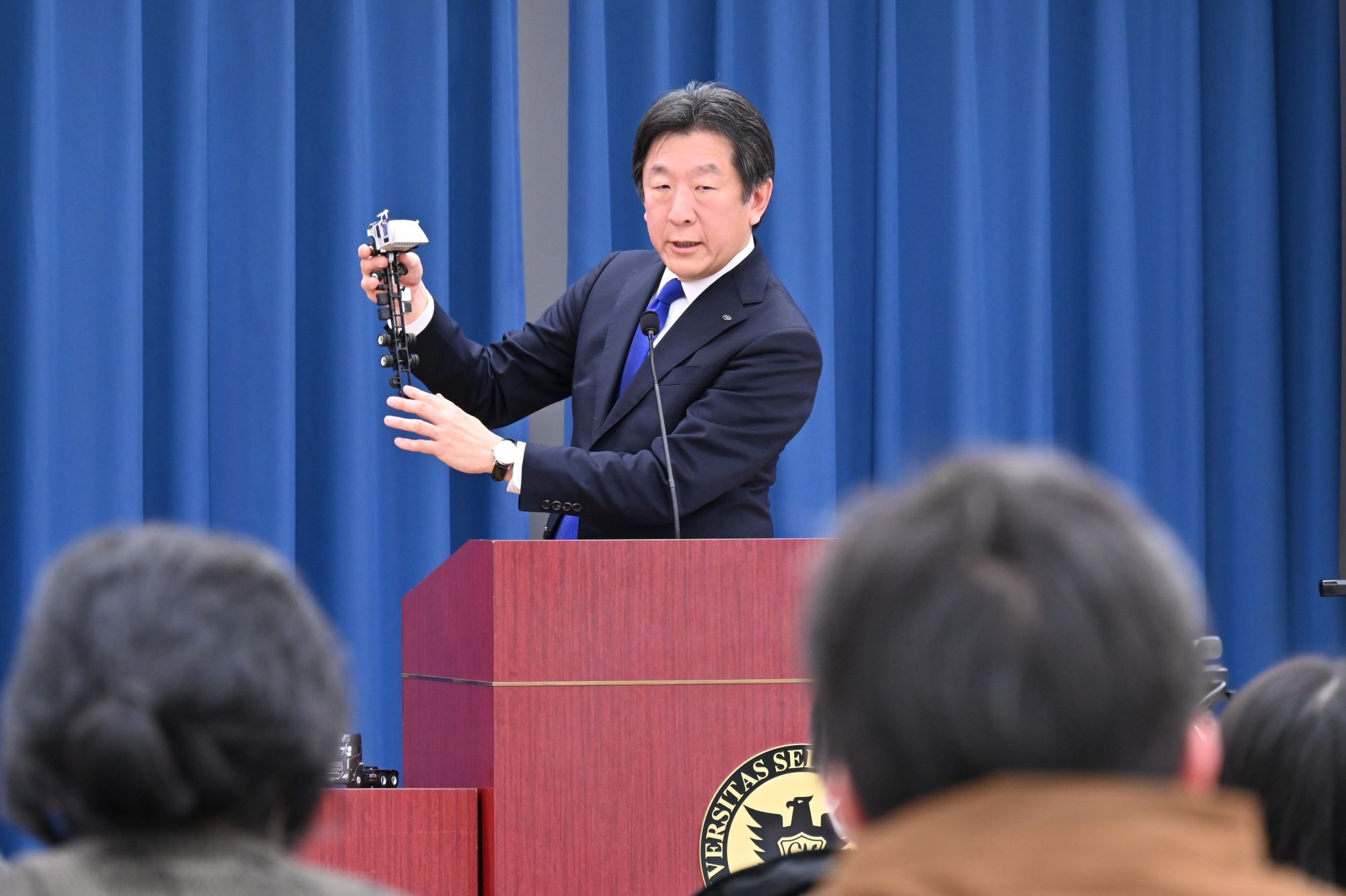 SUBARUの大崎篤社長は12月10日、東京理科大学葛飾キャンパス(東京都葛飾区)で「答えは現場にある~学生のみなさまに今つたえたいこと~」をテーマに講演し、自身のキャリアを交えつつ、スバルの最新の取り組みを説明。車両開発では機械工学だけでなく、電子・電気分野も重要性を増しており、「研究の成果を追求するプロセスは自動車業界に必ず役立つ。一緒に未来をつくれたらうれしい」と学生に呼び掛けました。
