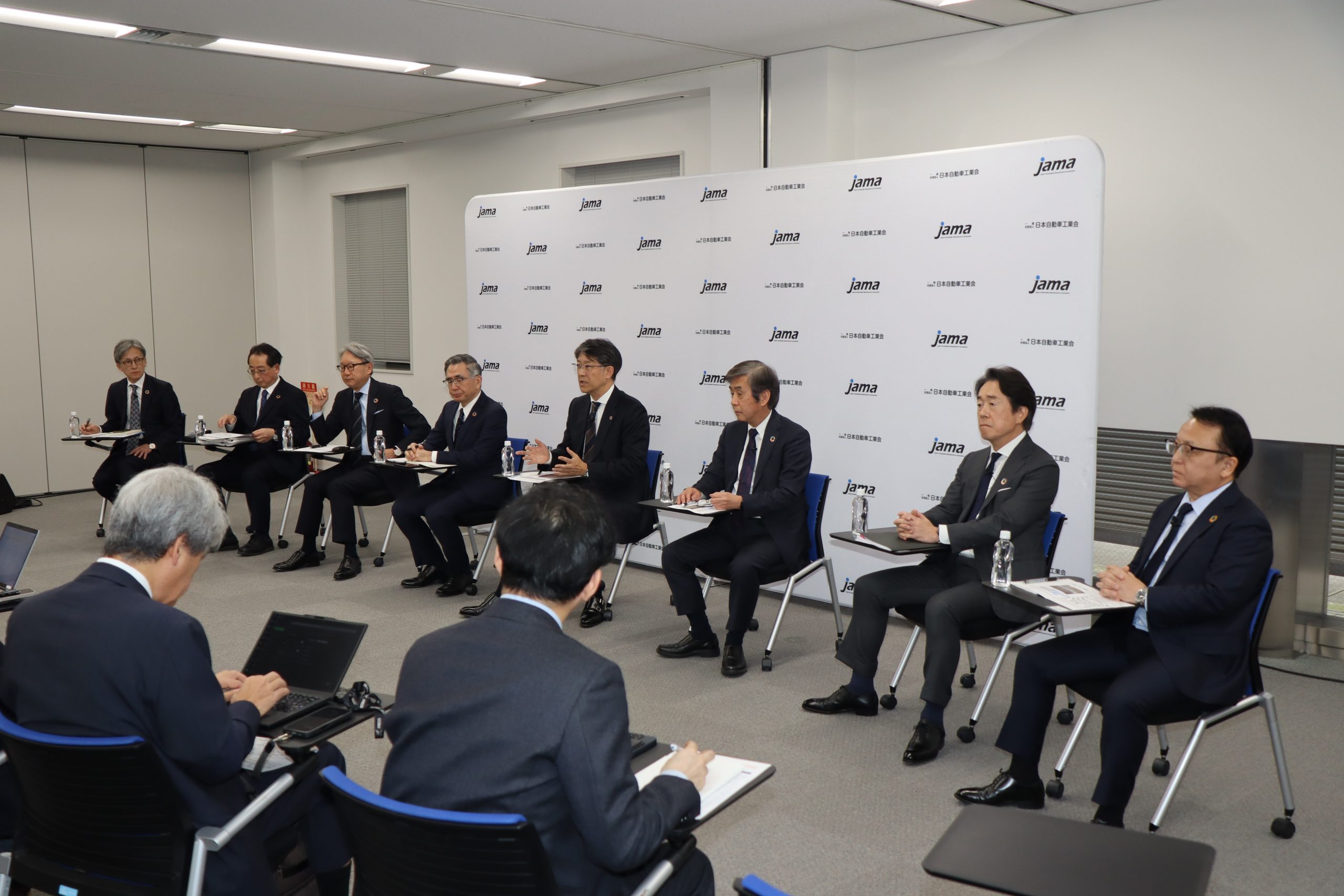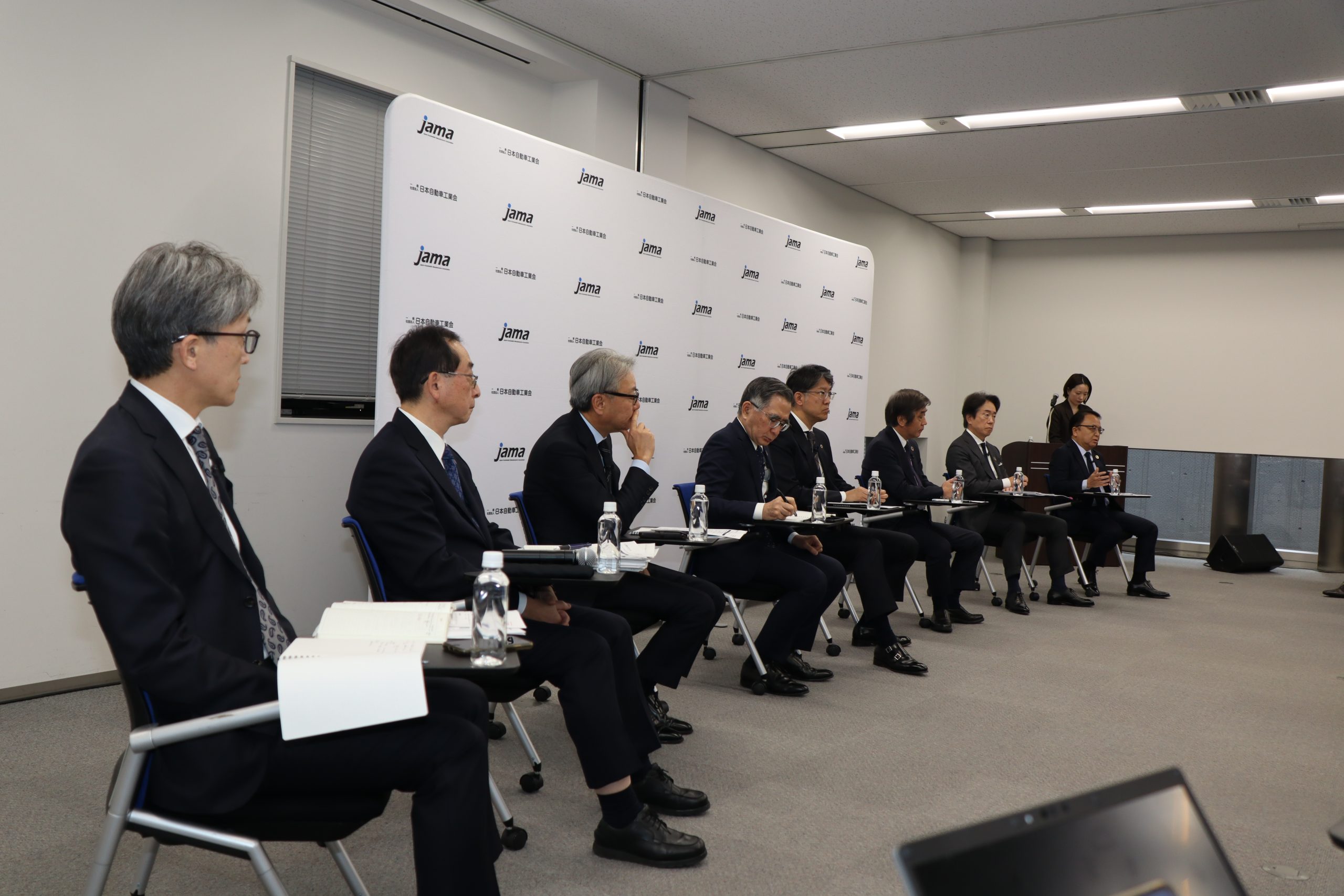 本日もお集まりいただきましてありがとうございます。大変嬉しく思います。本日は自工会として、集まり色々な話し合いを行いました。今回は、全理事に加えまして、実際の具体を作っていく中心になる総合政策委員会のメンバーにも参加いただき、「新7つの課題」の深掘りを行いました。新7つの課題を進めていくにあたって、議論を進める中で、特に我々が感じたのは、やはり根幹にある危機感を共有して、具体の話に入っていかないと、たどり着くゴールが変わってしまうという新たな危機感を持ちました。例えば、ご記憶かもしれませんが、部品共通化の話で鈴木副会長から事例が挙げられました。協業で共通化をしようと話し合ったものの、最後にできた共通化部品は灰皿1個だったという。まさにそれが起きかねないという危機感を新たに感じました。
