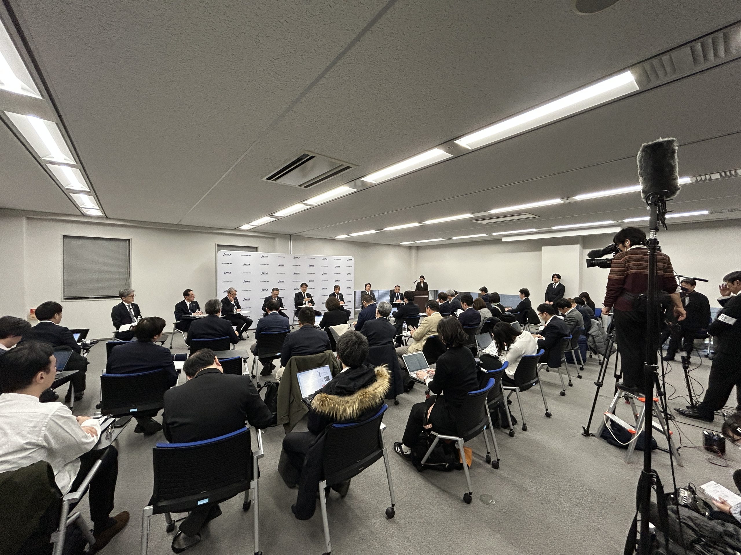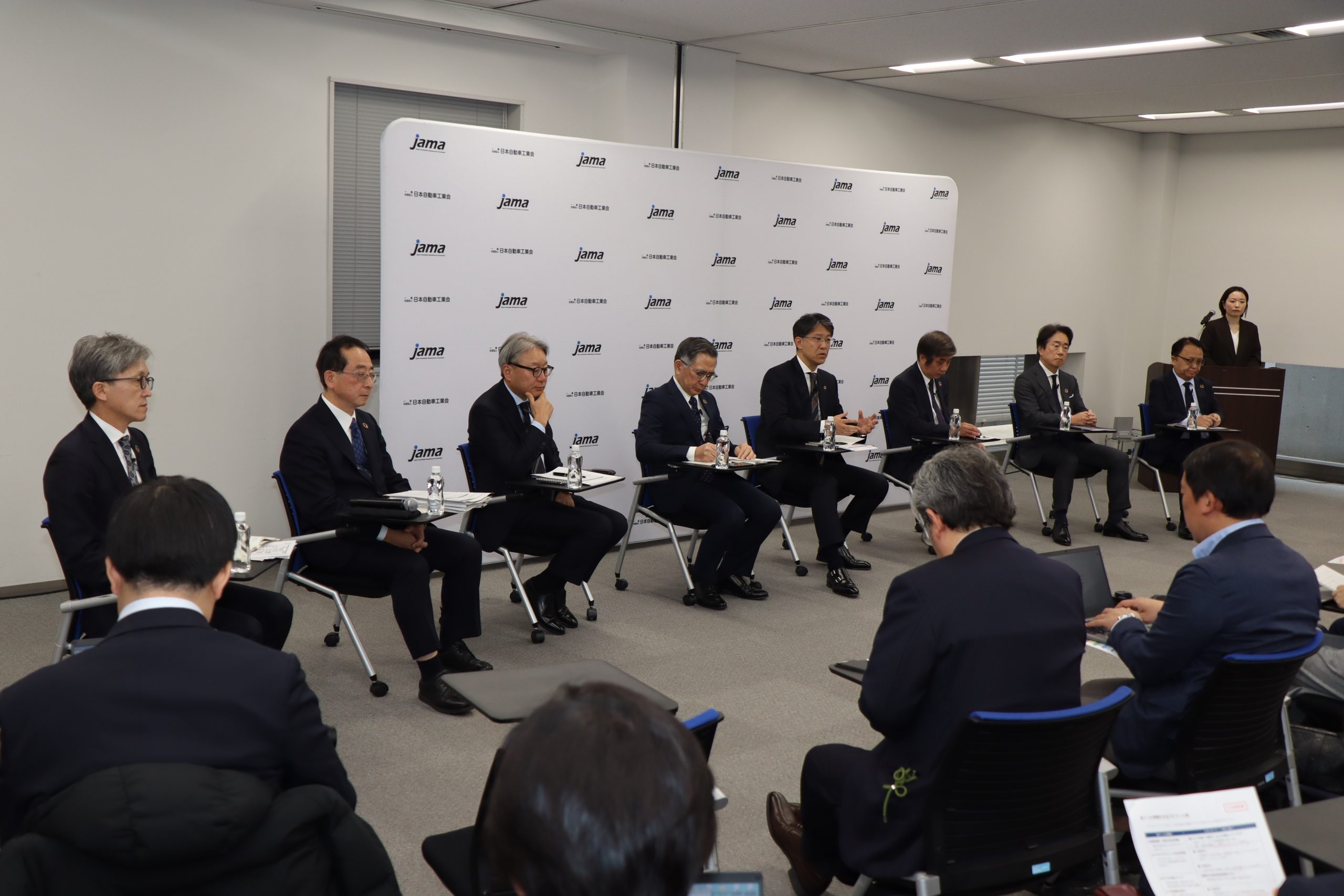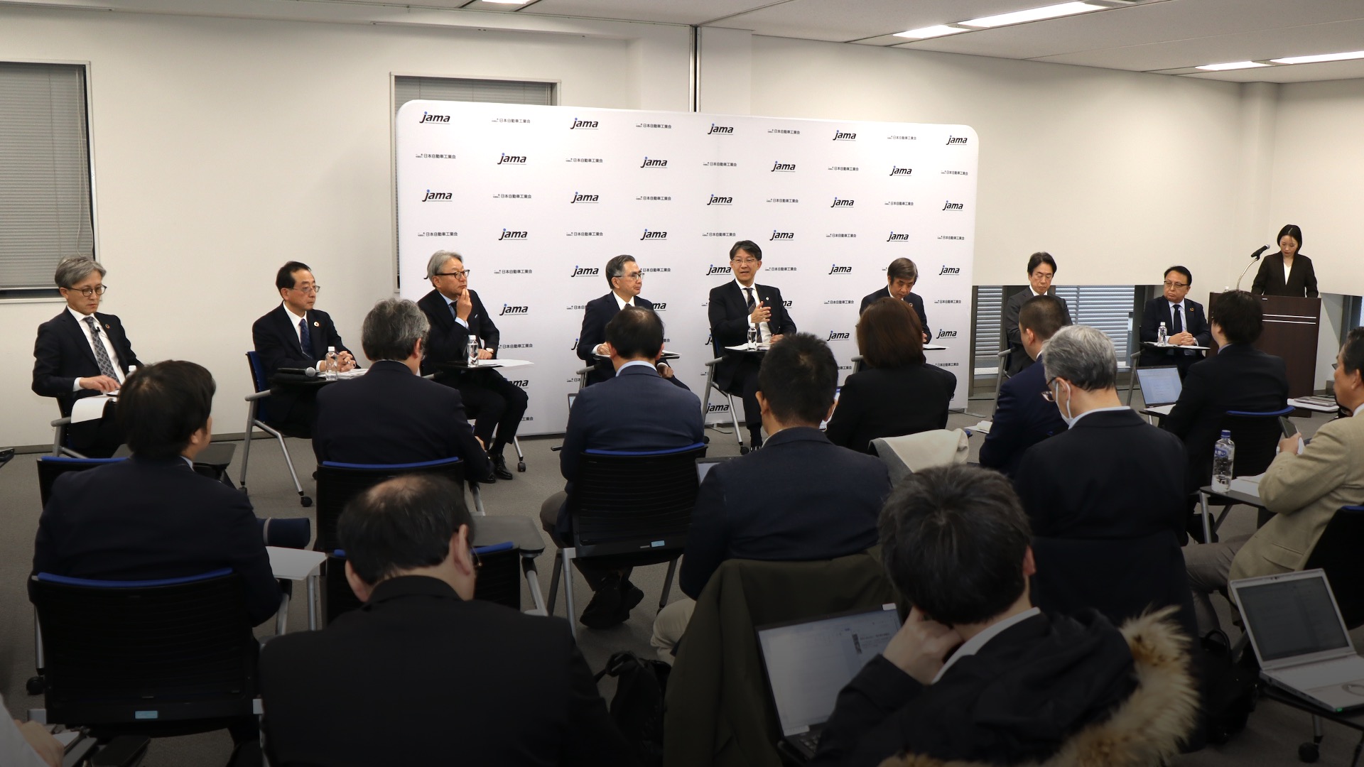2/18、自工会は自動車産業担当の報道陣を対象に「新7つの課題」をはじめとした活動の進捗に関する説明会を開催しました。本イベントでは、まず会長の佐藤から当日朝行われた理事ミーティングの議論について説明があったほか、理事の毛籠勝弘から理事ミーティングでも共有があった、新7つの課題へ対応するにあたって根底ともなる日本の自動車業界が持つべき危機感について説明がありました。参加したメディアからも国内外のモビリティ業界の課題について質問が出るなど、活発な意見交換が行われました。