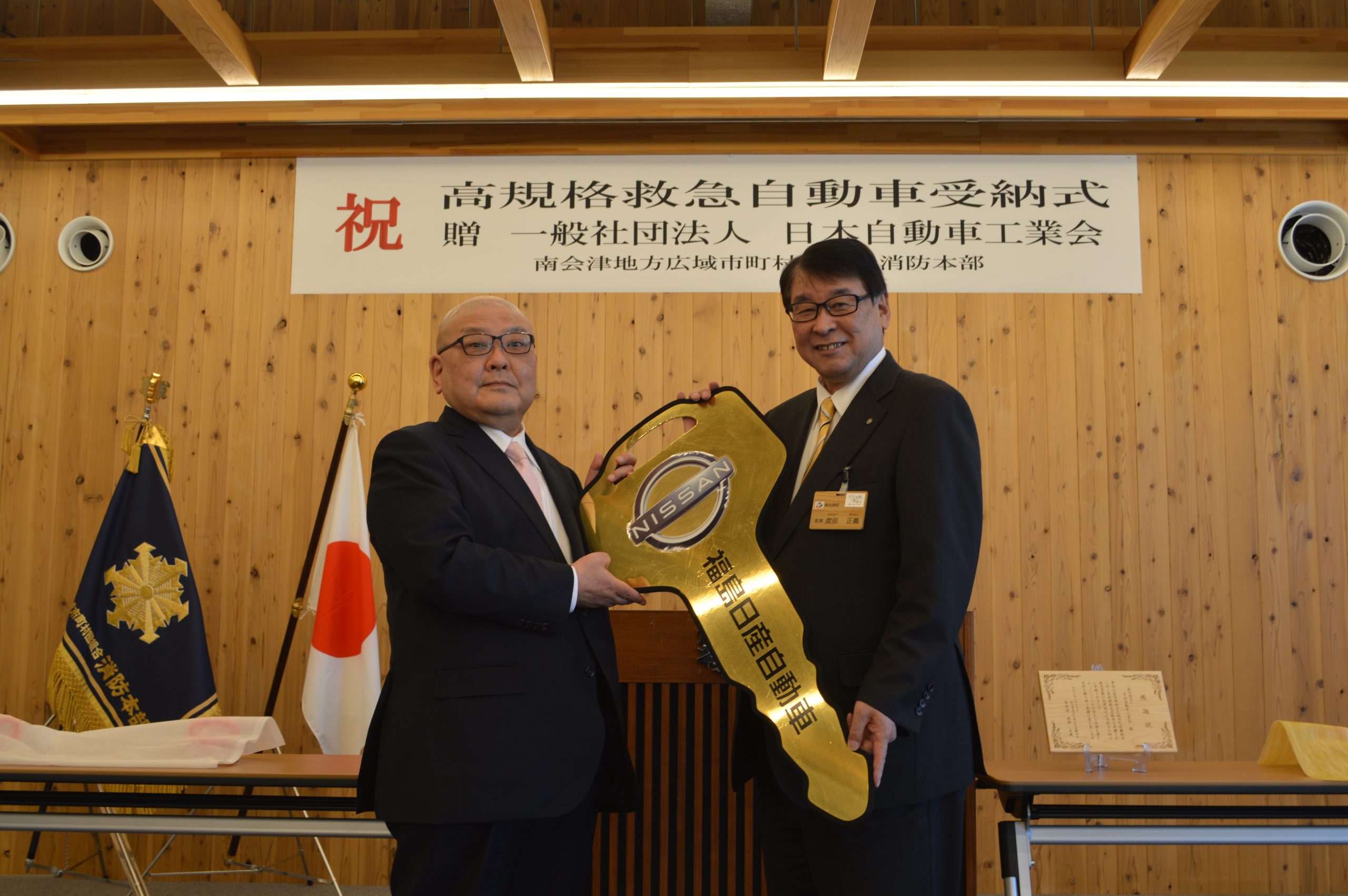 福島県南会津地方広域市町村圏組合消防本部での受納式の様子