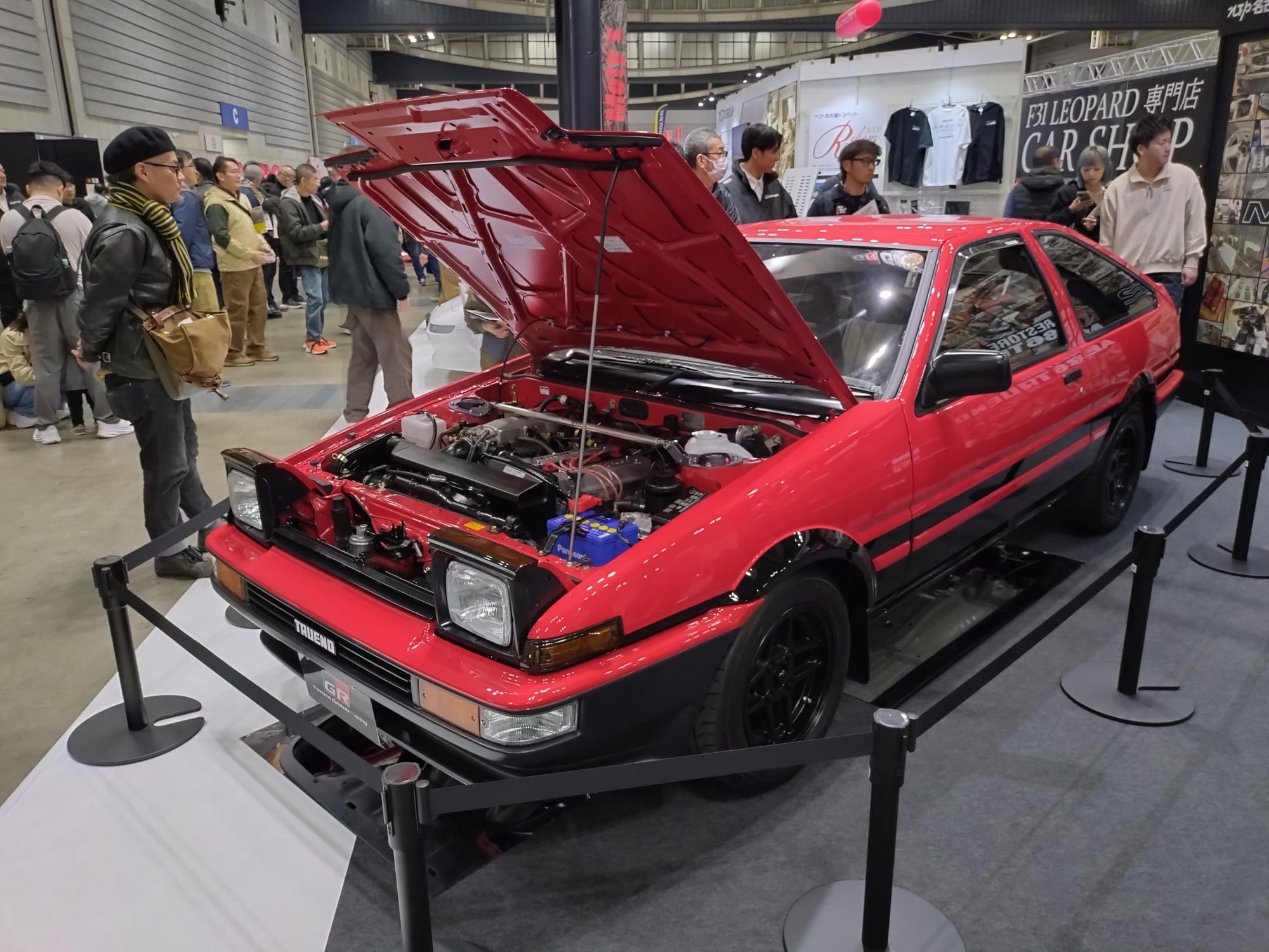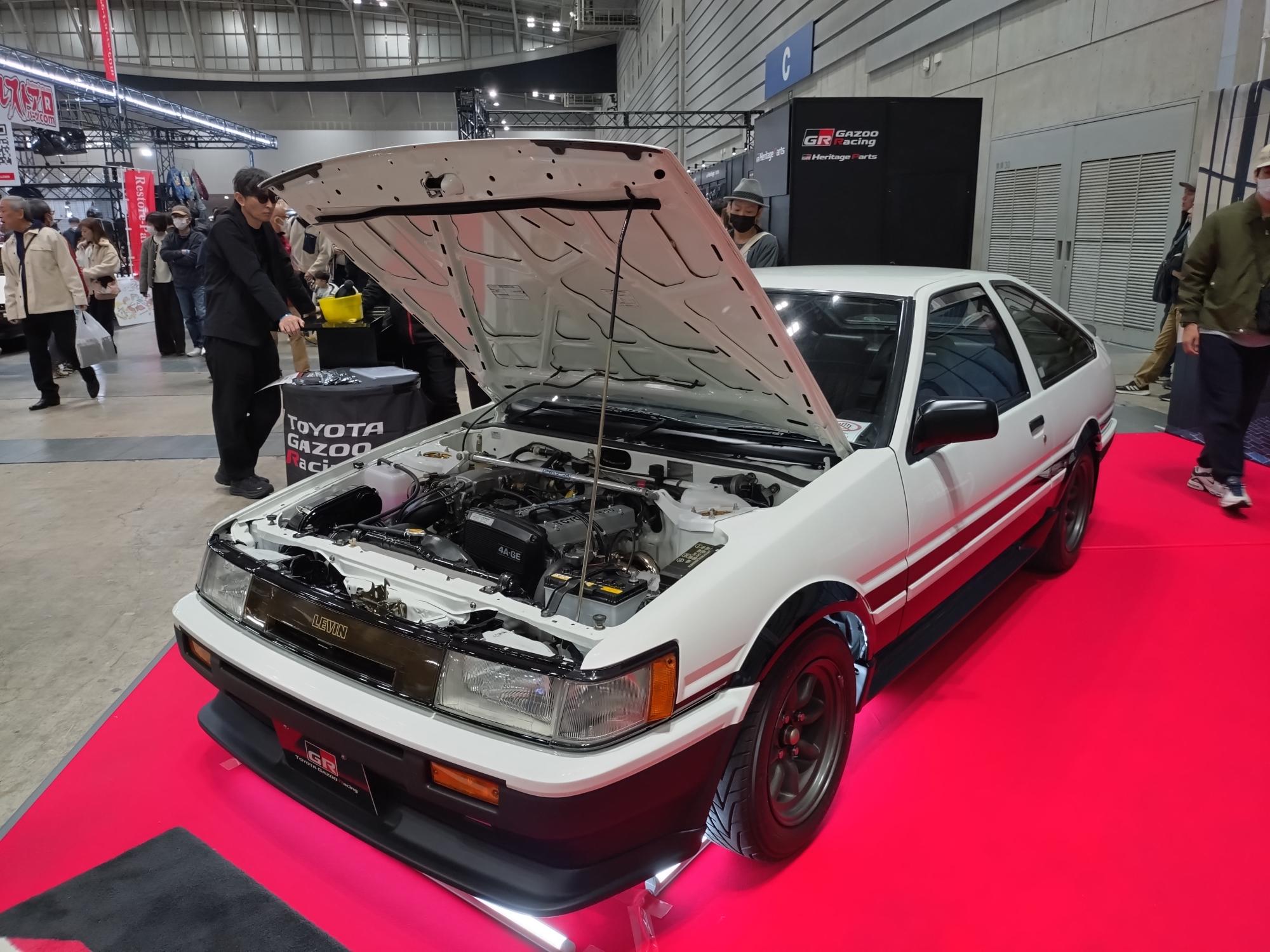 今回のイメージカーはトヨタ自動車の「カローラ110デラックス」。カローラは1966年誕生し、日本にモータリゼーションをもたらした大衆車で、今年は生誕60周年記念です。GAZOO Racingブースには、部品を復刻して販売、供給する「GRヘリテージパーツ」を使用してレストアを施した「スプリンタートレノ」「カローラレビン」なども並び、部品業界関係者がブース担当者と話し合う場面も見られました。