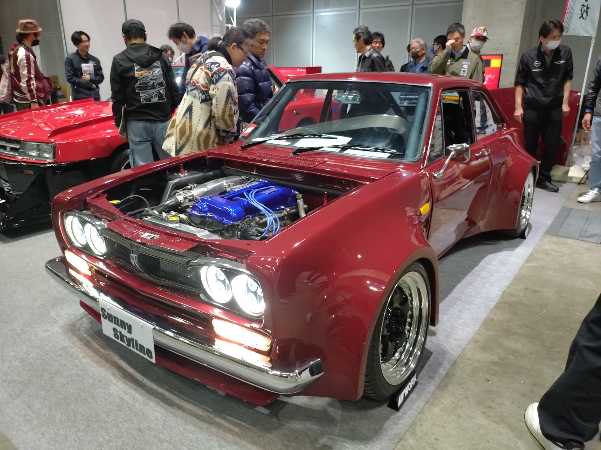 日産自動車グループの日産モータースポーツ & カスタマイズは、「フェアレディZ(S30) 」「GT-R (R34) Z-tune」などを展示。自動車整備士を育成している日産・自動車大学校は「サニー スカイライン」を手掛け、サニーに通称ハコスカのフロントパーツを組み合わせました。