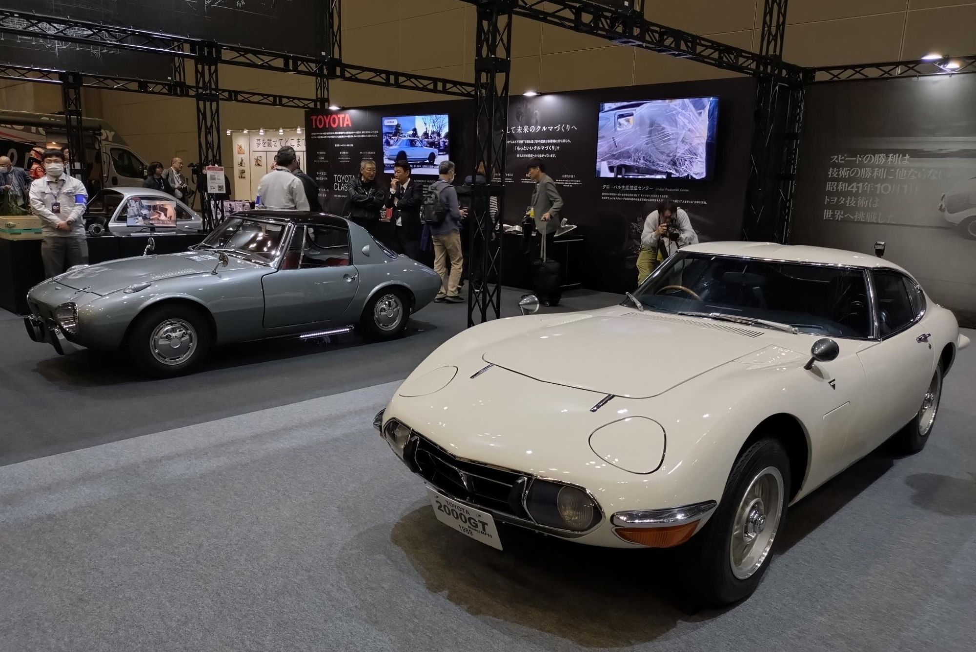 トヨタ自動車は、〝スポーツカーの歩み〟を表現。「2000GT」「パブリカスポーツ」に加え、レストアされた「スポーツ800」を展示。パブリカスポーツは1962年、全日本自動車ショー(現ジャパンモビリティショー)に出展されたプロトタイプで、航空機技術を使ってトヨタが最初に開発したスポーツカー。隣のGAZOO Racingブースでも、「GRヘリテージパーツ」を組み付けた「スプリンタートレノ」「スープラ」などを並べました。