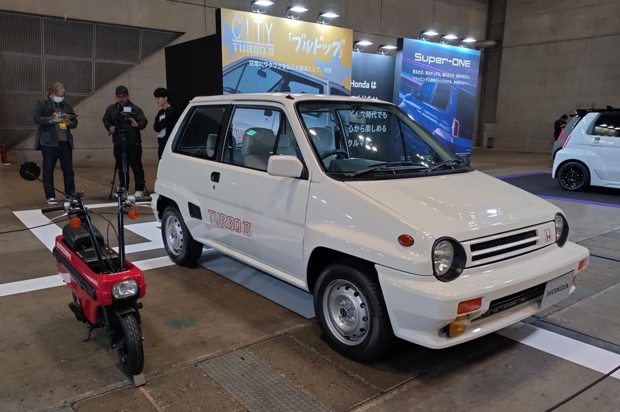 ホンダは、1980年代に「ブルドッグ」の愛称で人気を集めた「シティターボII」などを出展。 旧型モデル向けに一部パーツを復刻して供給するヘリテージサービス「ホンダ・ヘリテージワークス」で手掛けた初代スポーツカー「NSX」も置かれ、真っ赤なボディーカラーに注目が集まっていました。